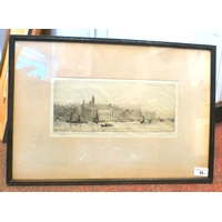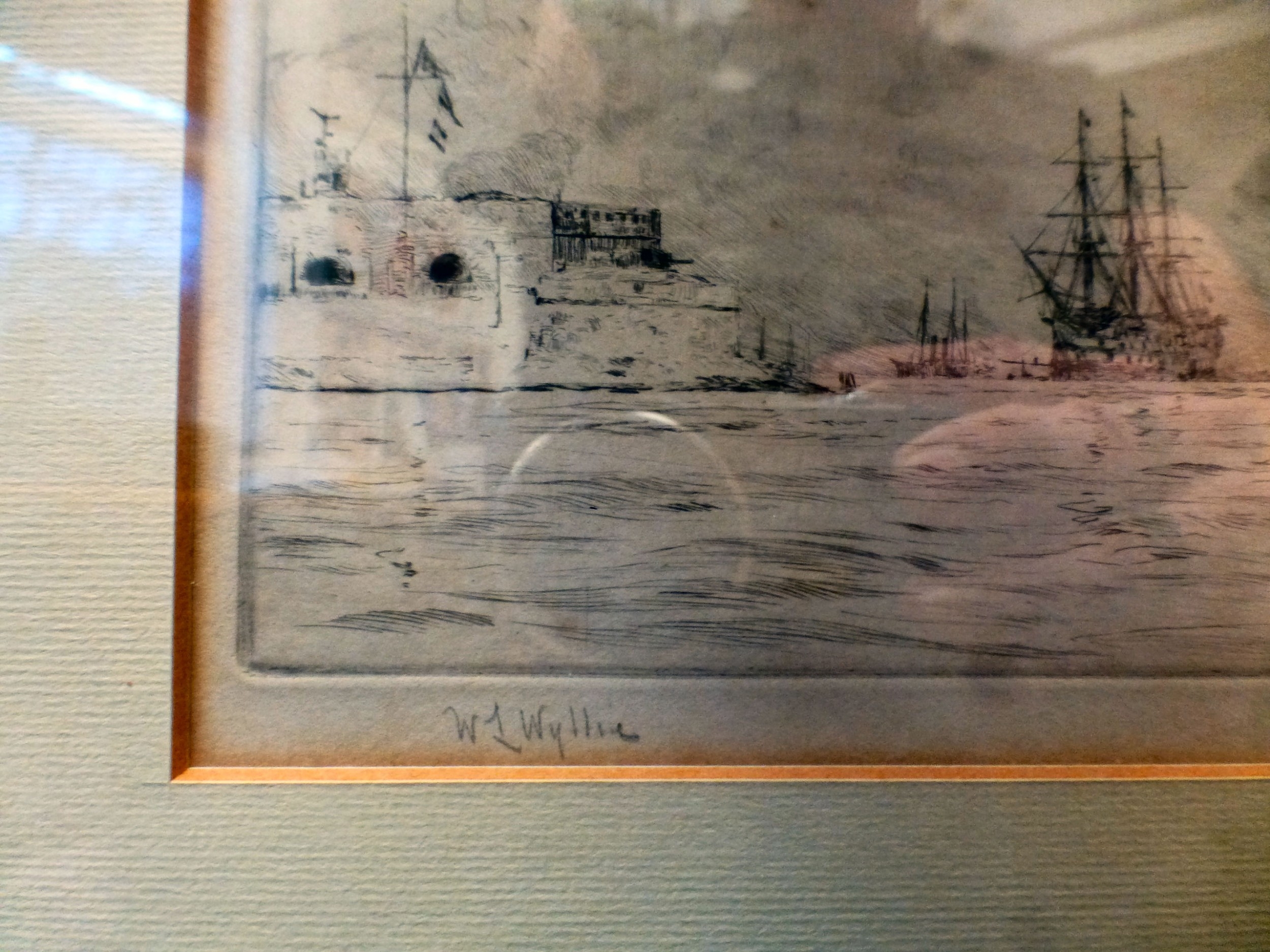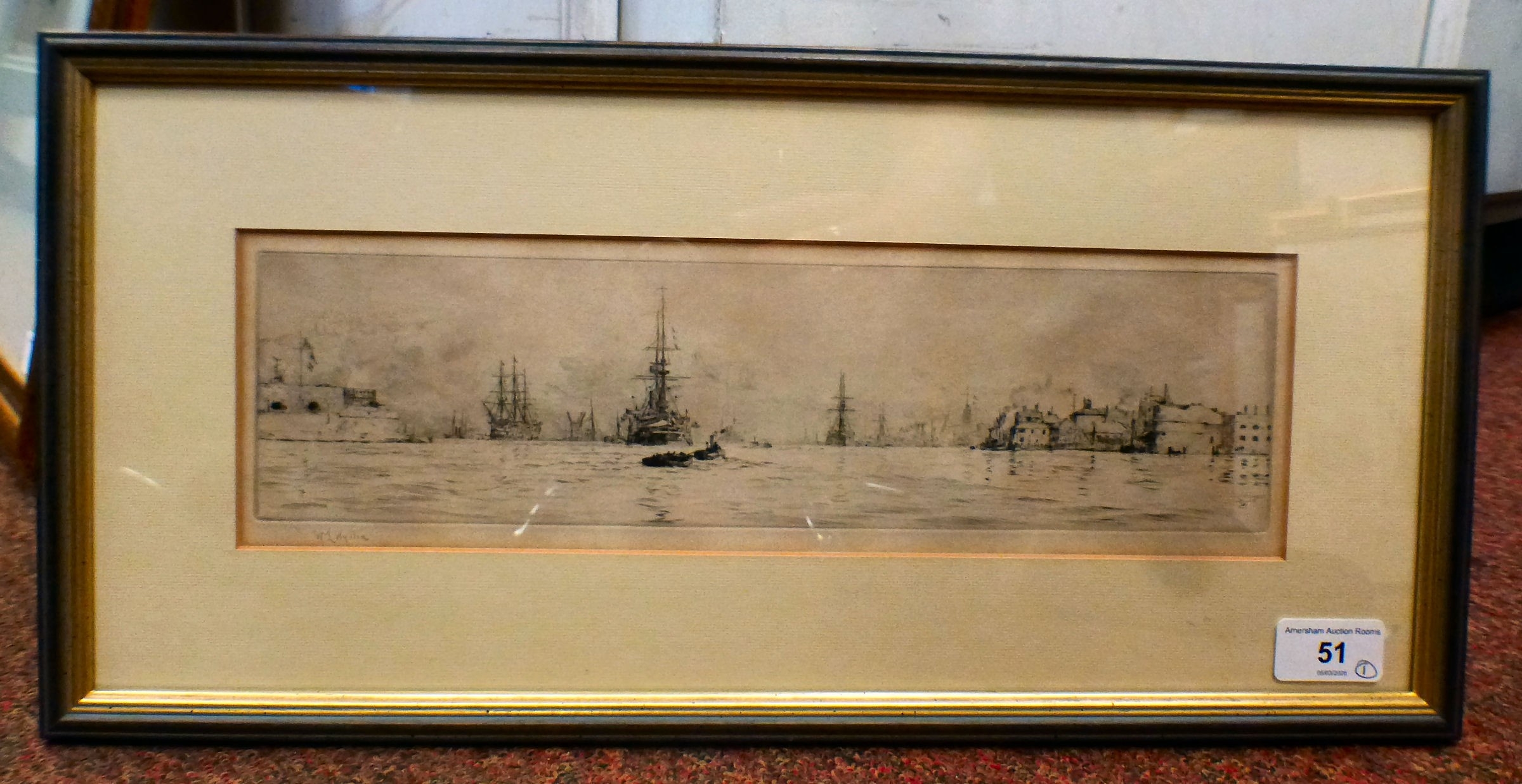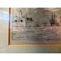 After William Lionel Wyllie - 'War Ships in Portsmouth Harbour' print bears a pencil signature 4" x 14" framed