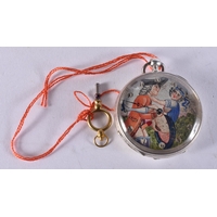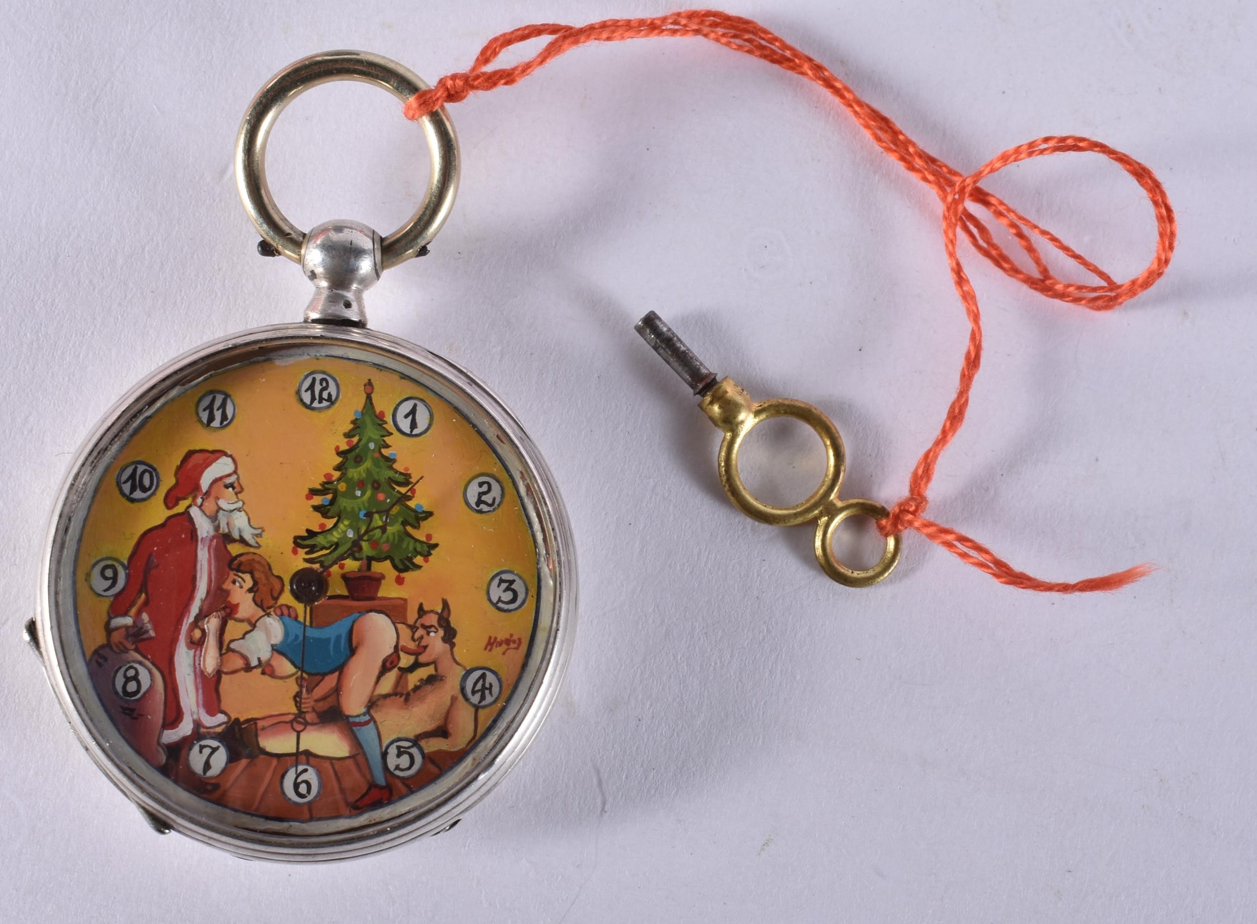 An Erotic Pocket Watch with a Christmas Themed Dial, with Key. Working, Key Wind. 4.8cm diameter