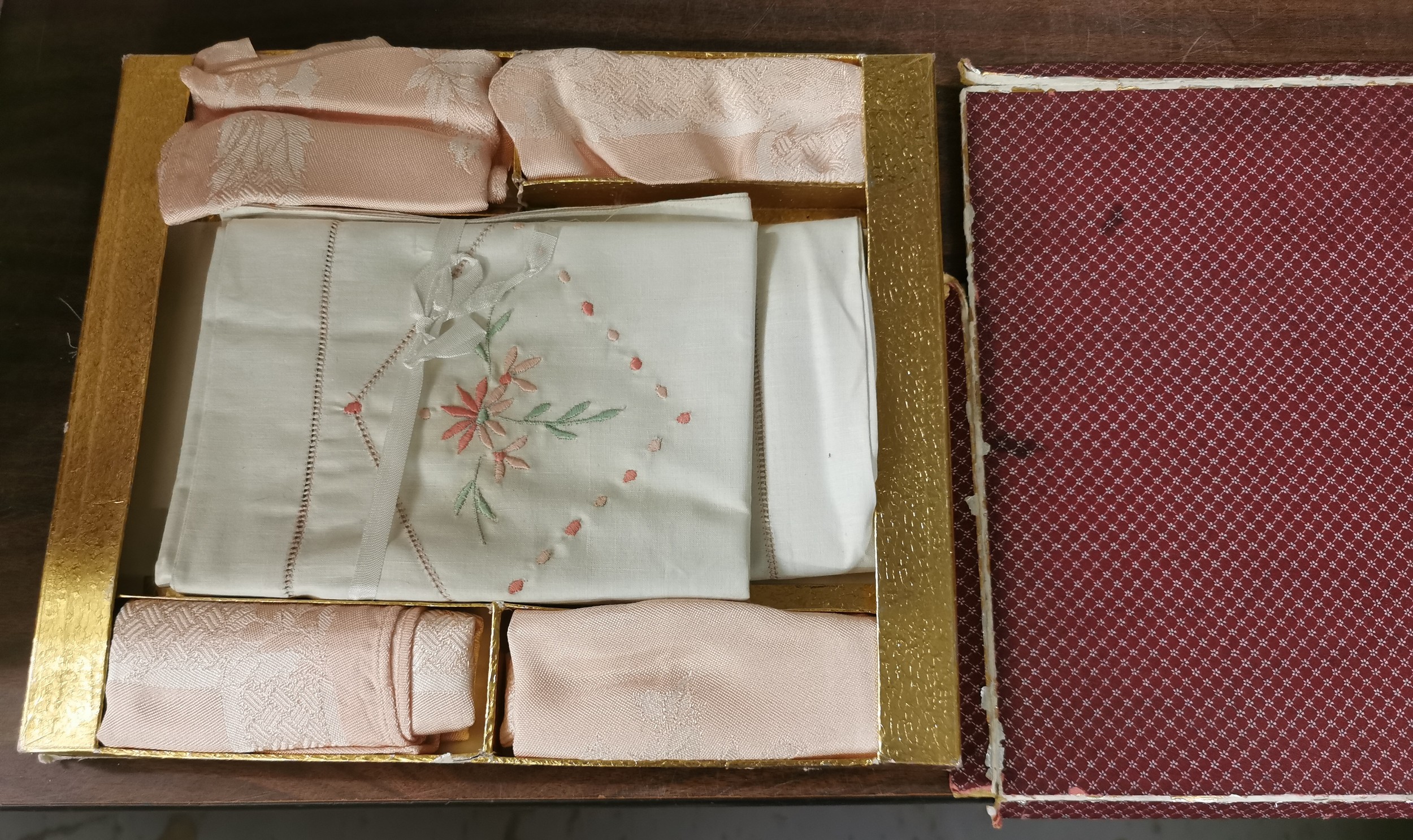 Boxed vintage cotton tablecloth and placemat set