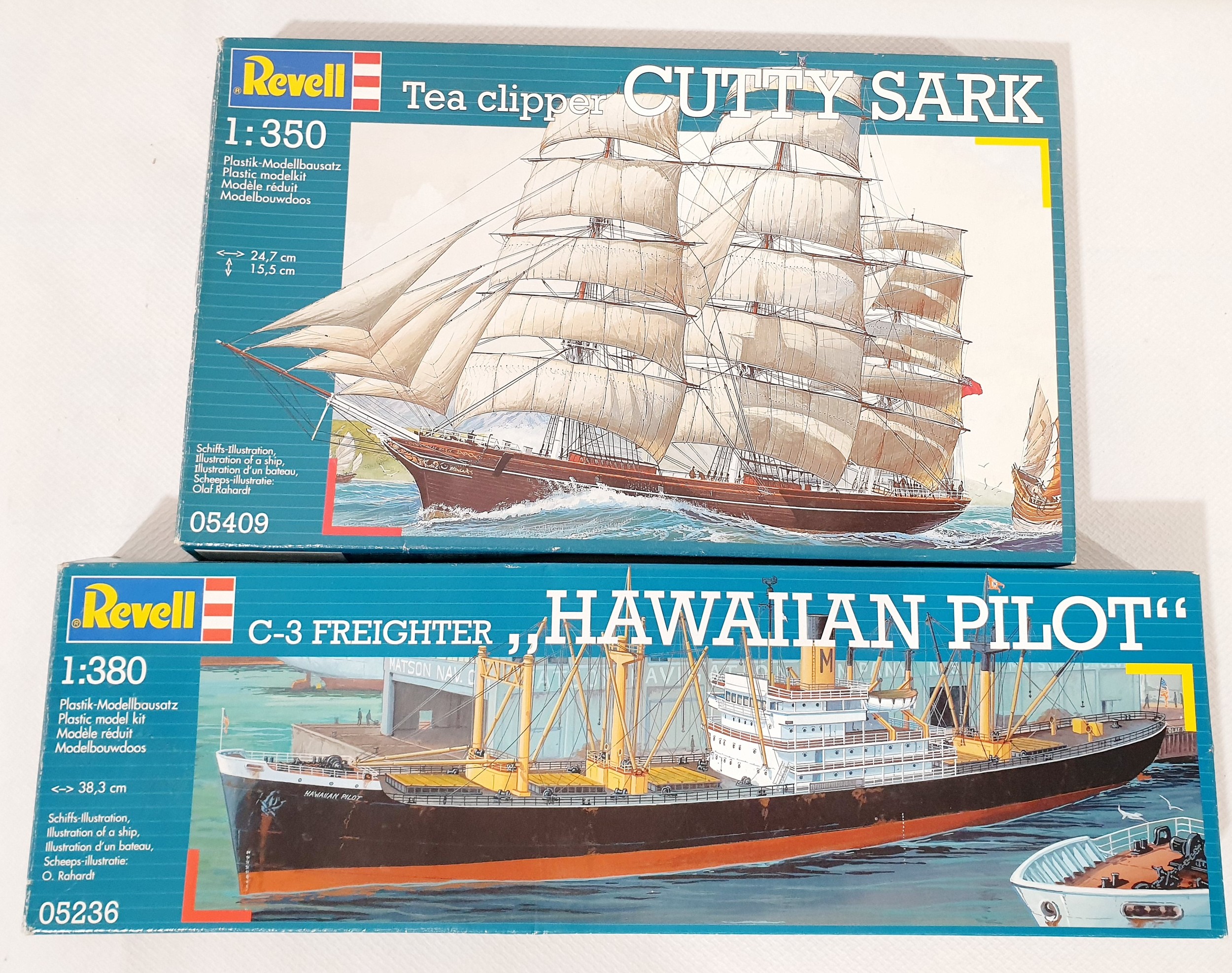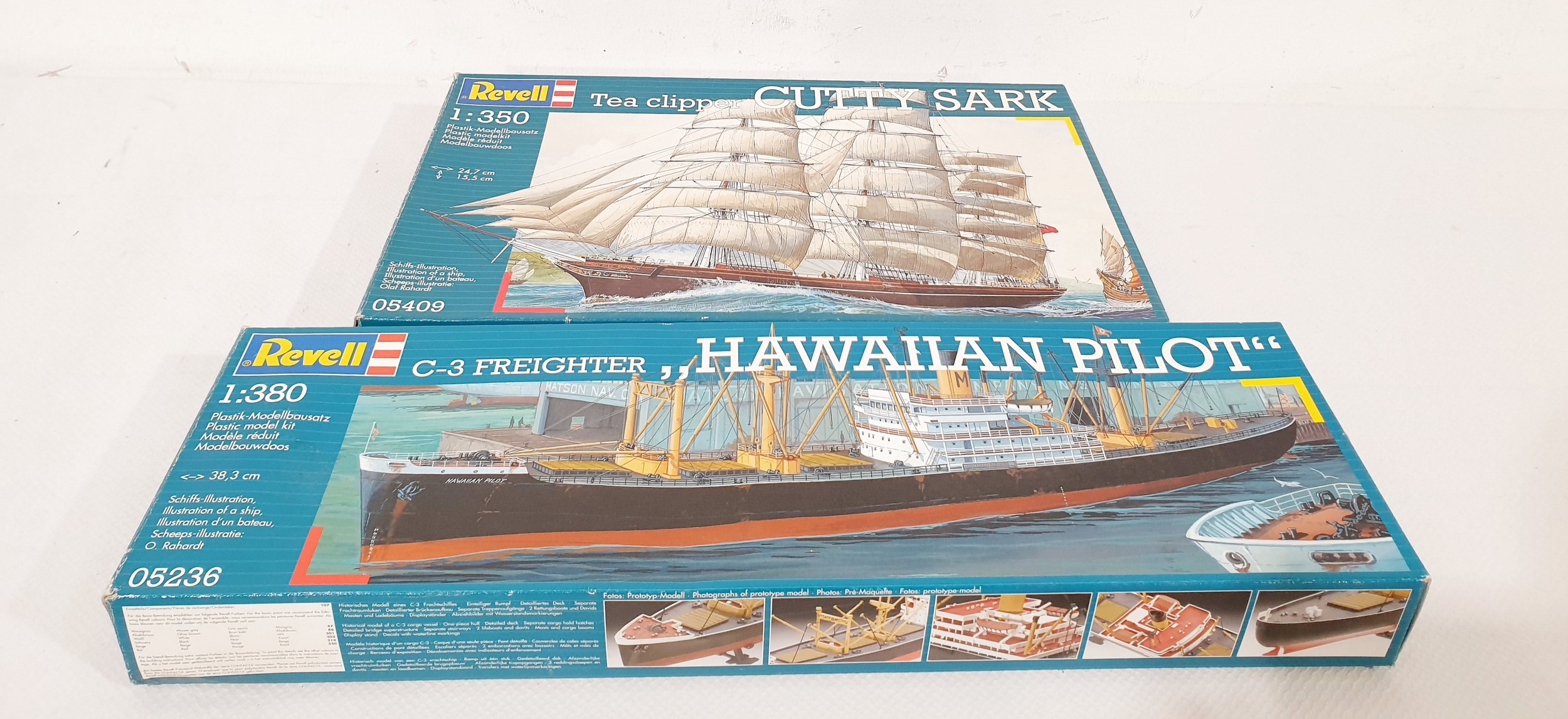 Revell 1:380 scale model kit C-3 Freighter 'Hawaiian Pilot' & a Revell 1:350 scale model kit tea clipper 'Cutty Sark'.