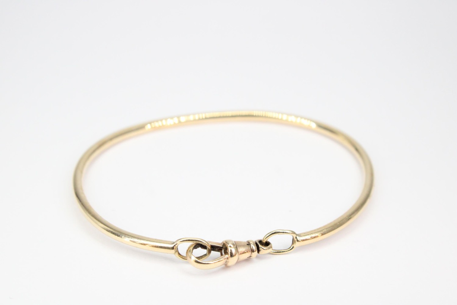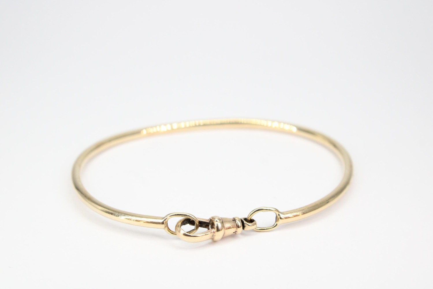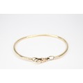 A bangle with toggle clasp. Tests 9ct. Weight 10.10 grams, approx 6cm internal diameter
