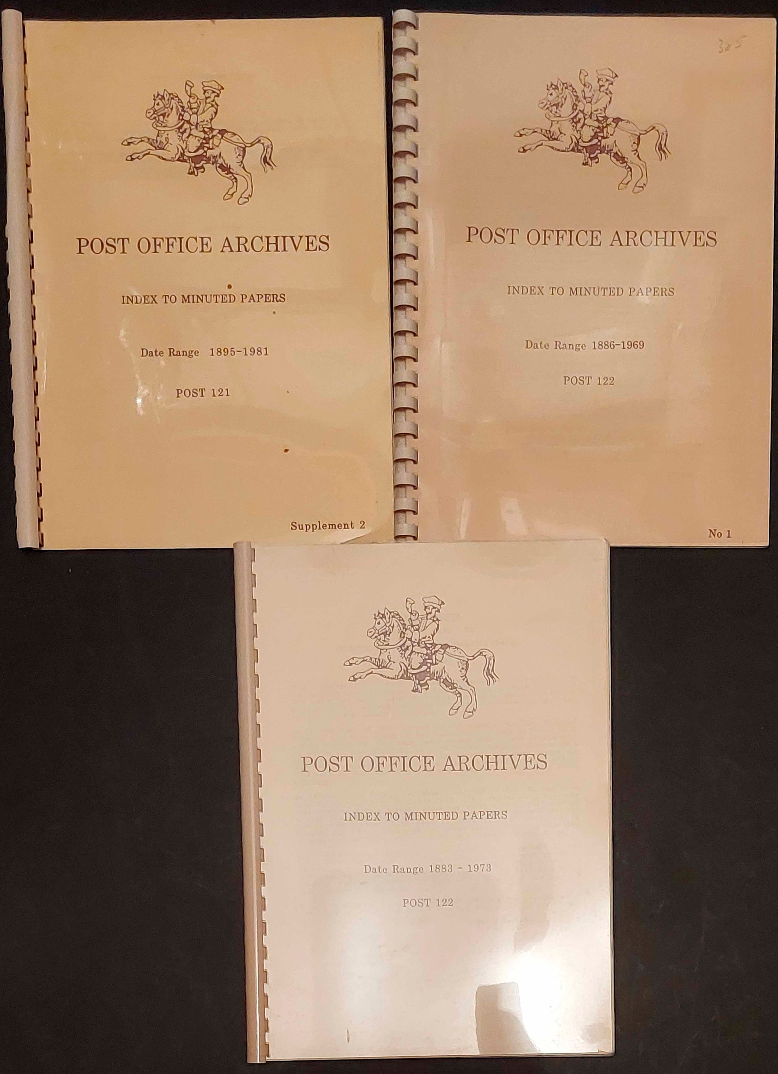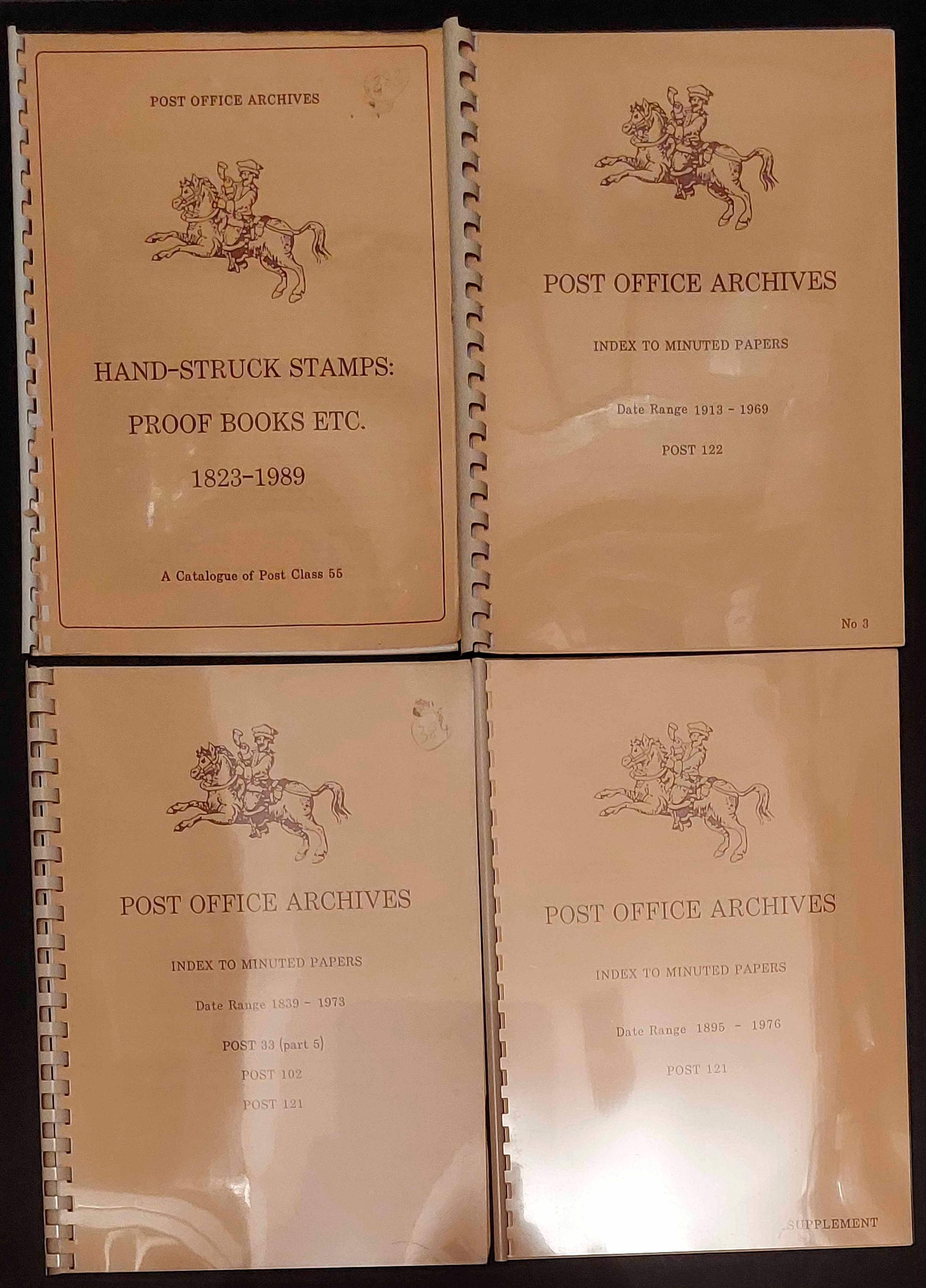 POST OFFICE ARCHIVES INDEXES: Covering proof books, hand-struck stamps, and minuted papers. A very useful resource for the researcher. (7)