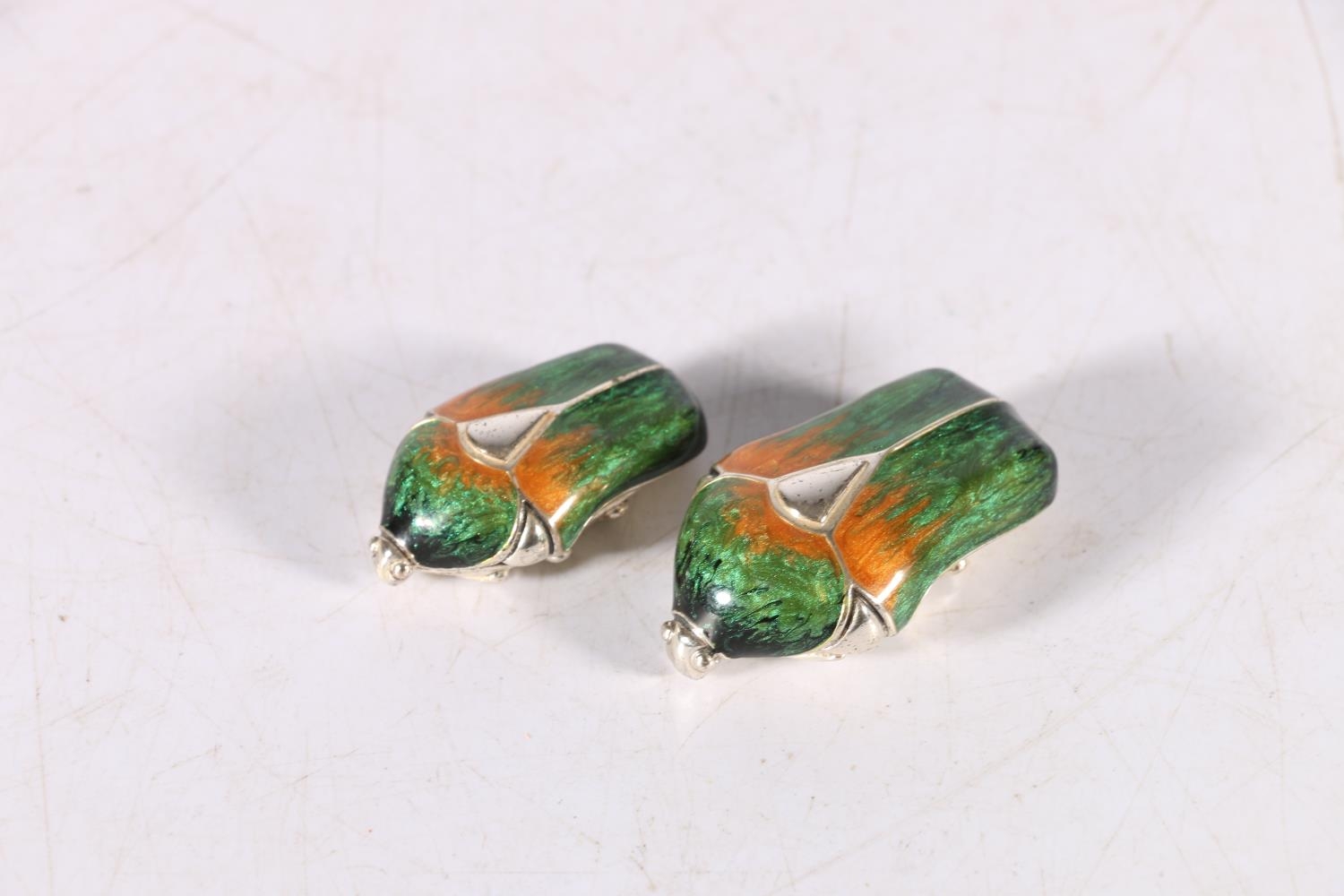 Silver and enamel scarab beetle buttons, both stamped to the reverse '925', 4cm and 3.5cm