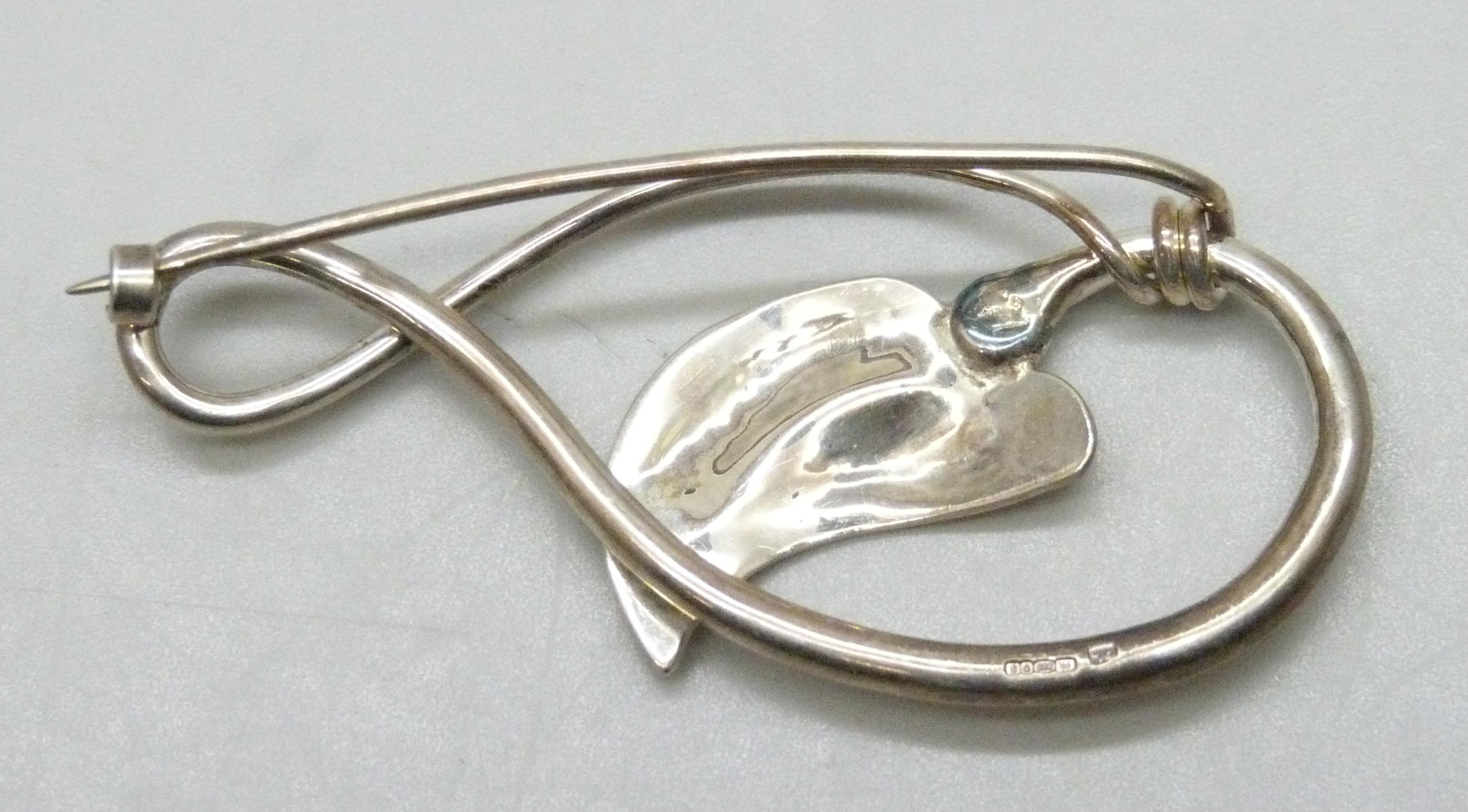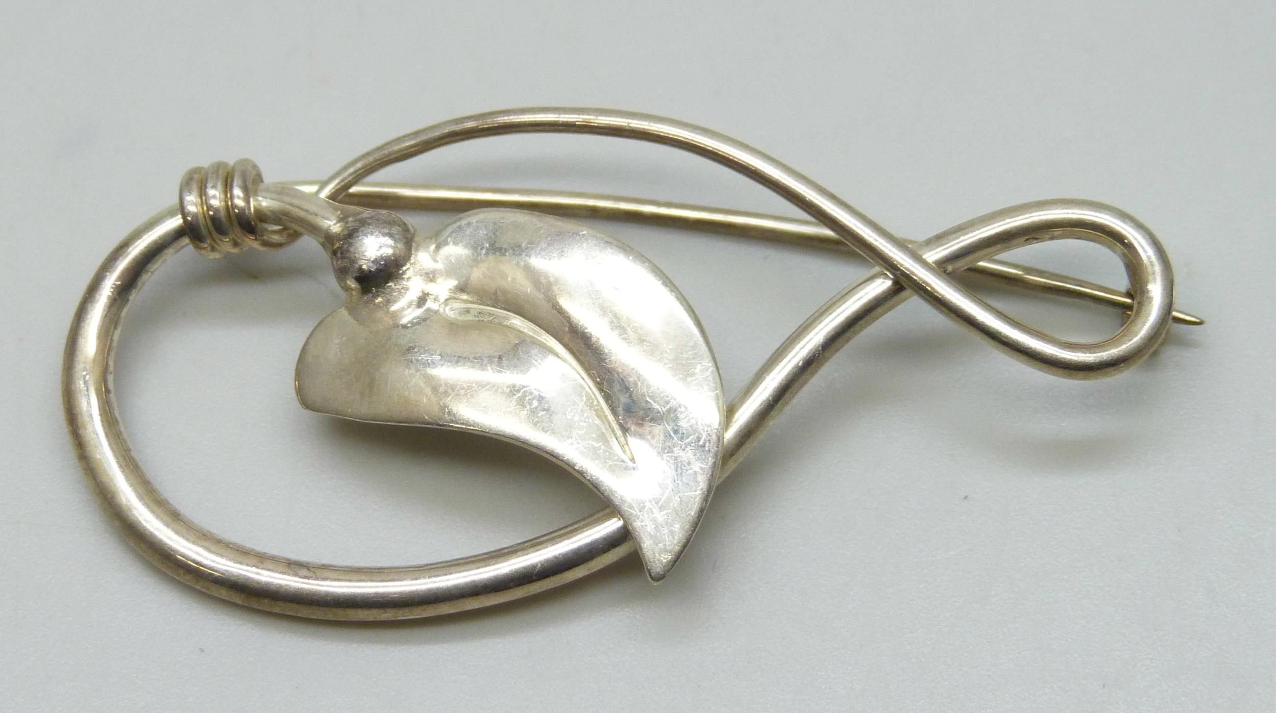 A silver Scandinavian style brooch with leaf design, hallmarked DL, London, 5.7cm