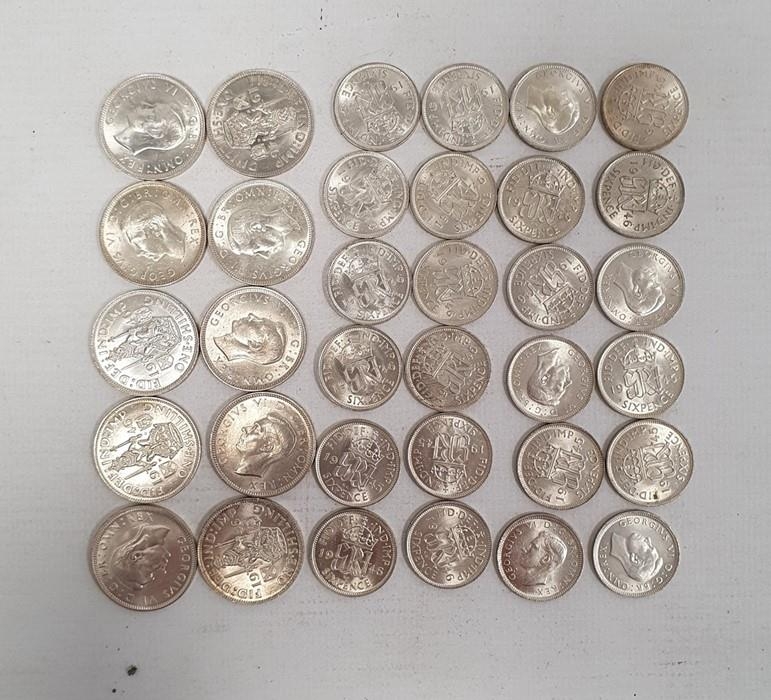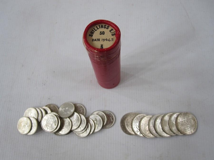 Tube of uncirculated or near-so shillings and sixpences, (24 sixpences and 10 shillings)