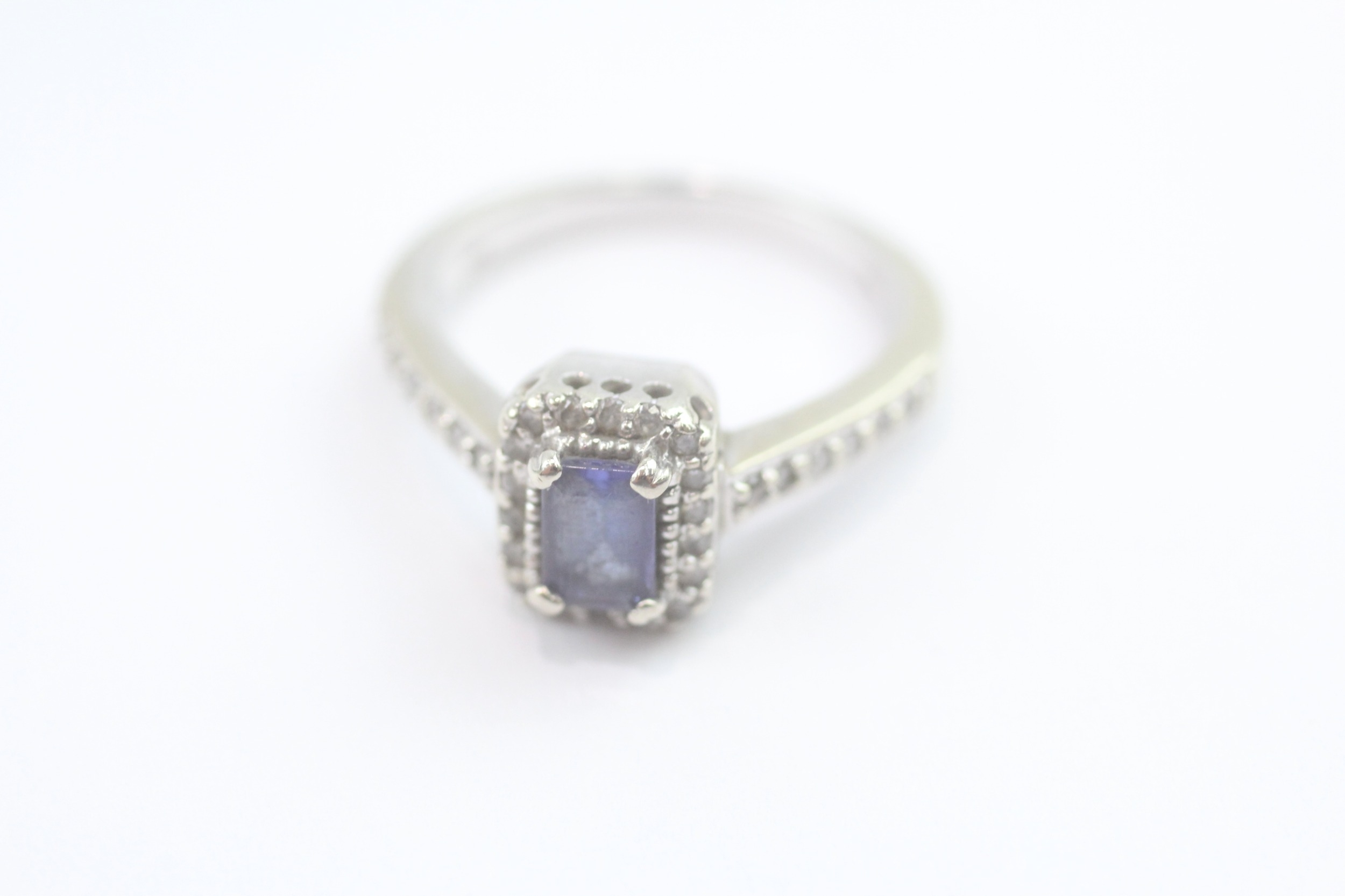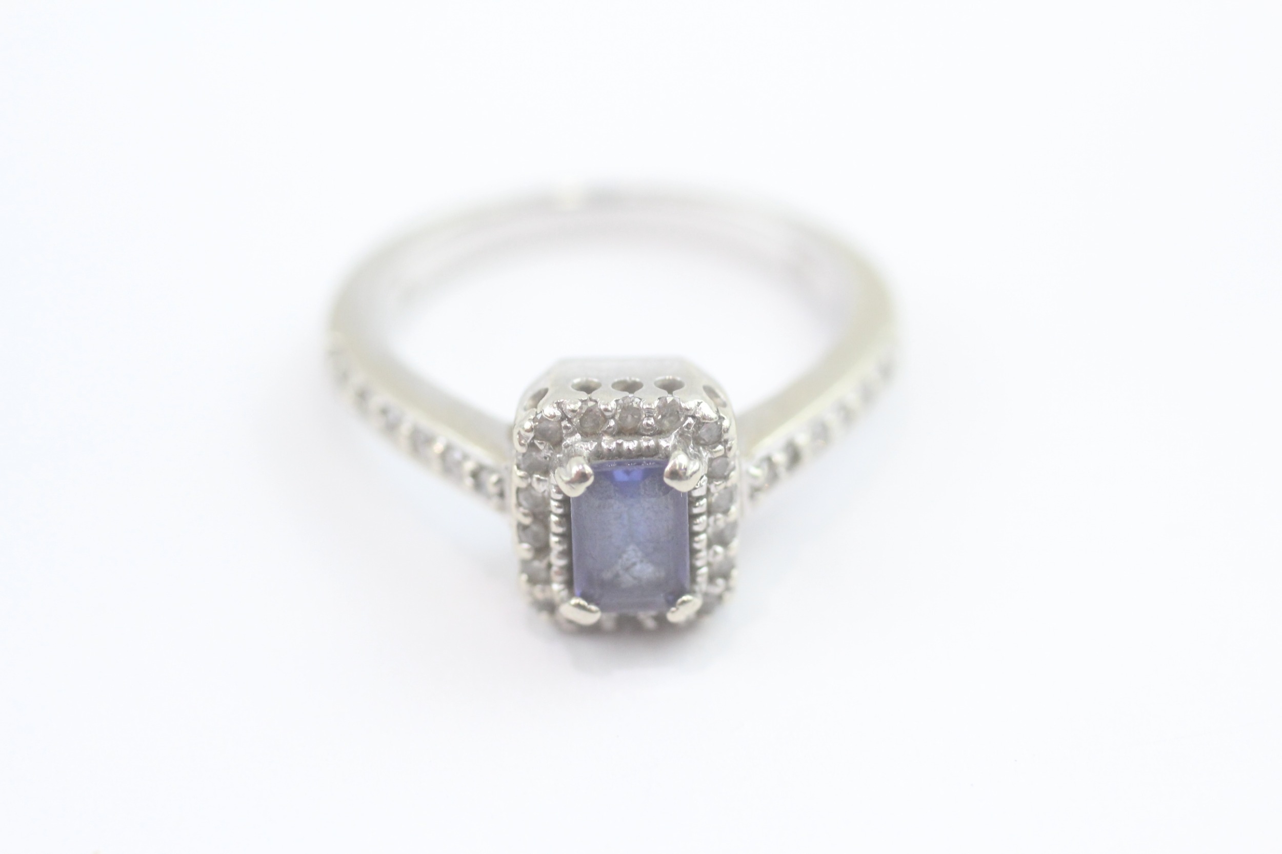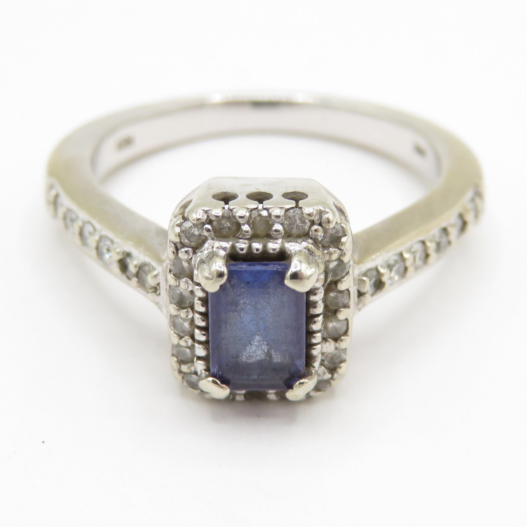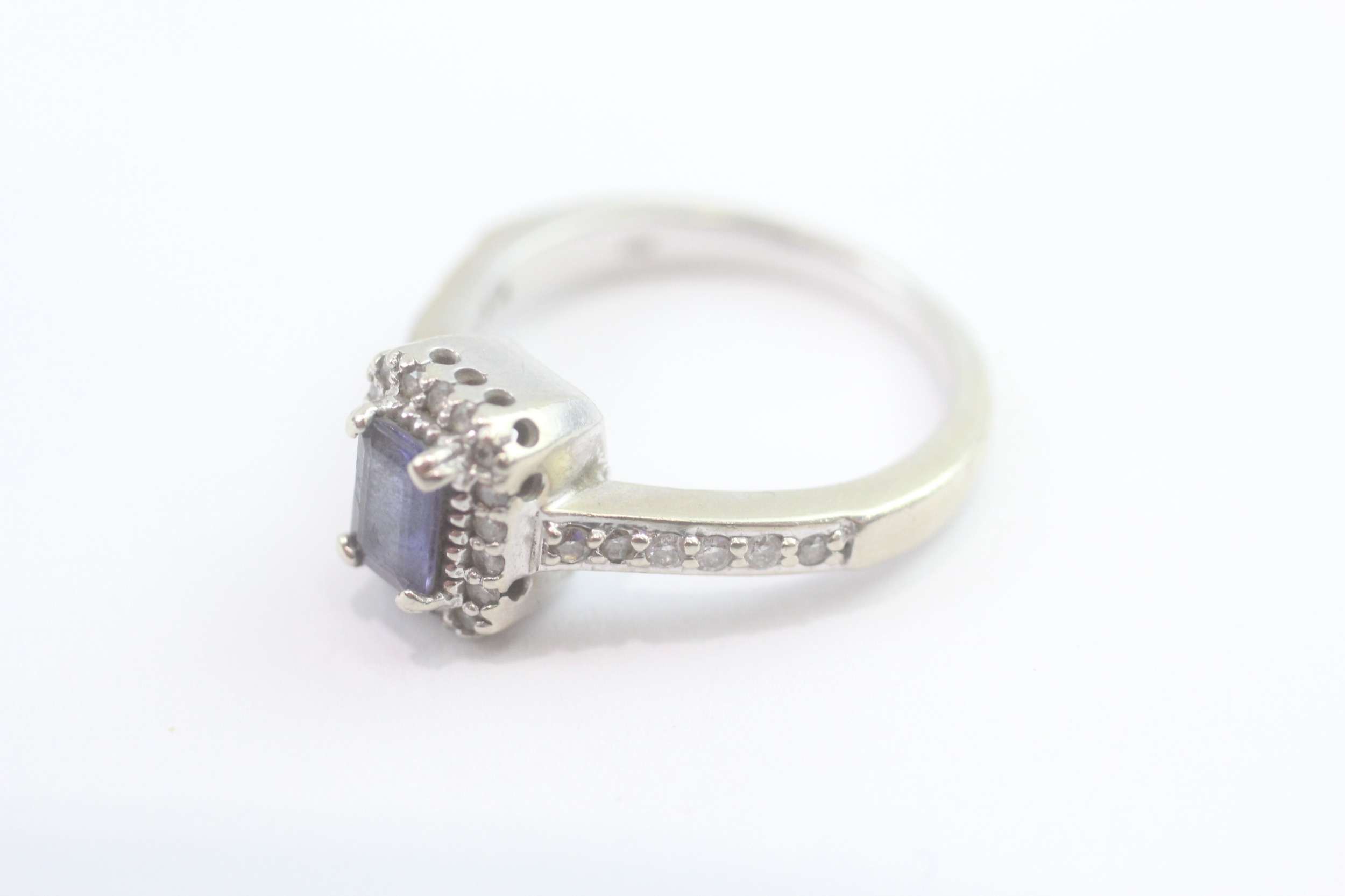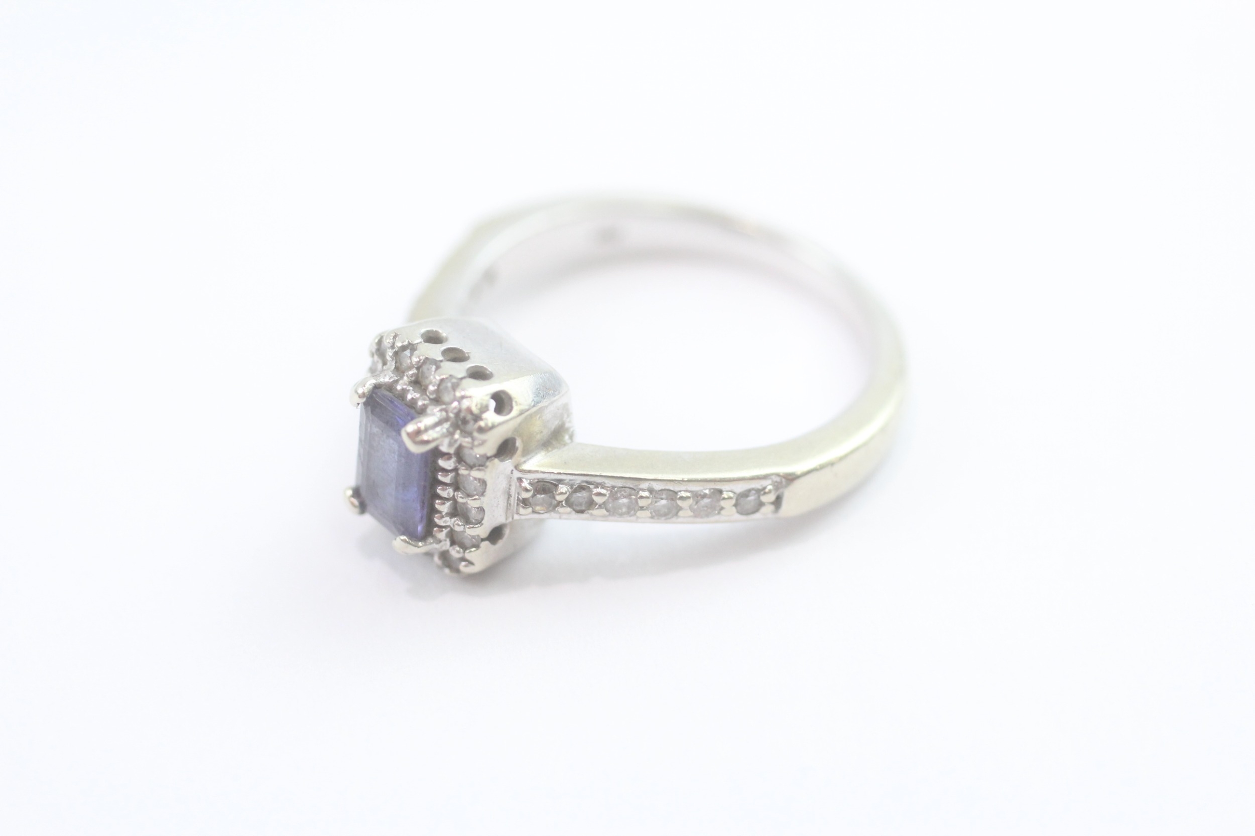 14ct white gold diamond and tanzanite dress ring (5.2g) Size N