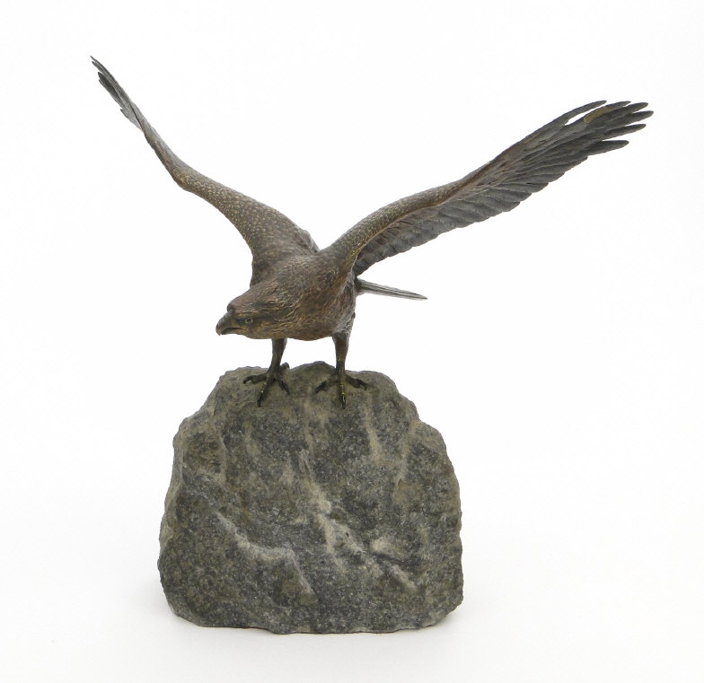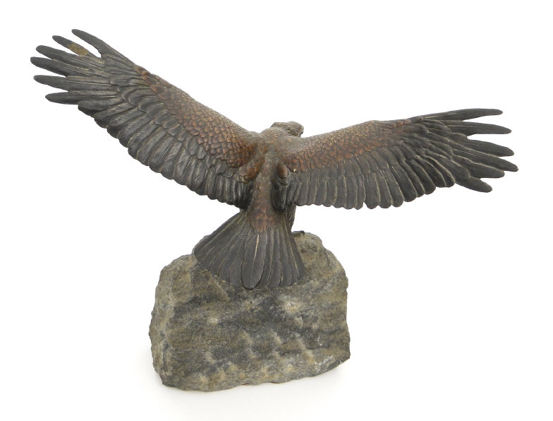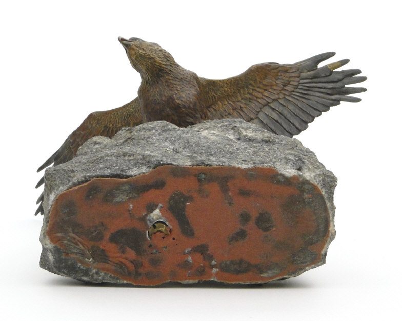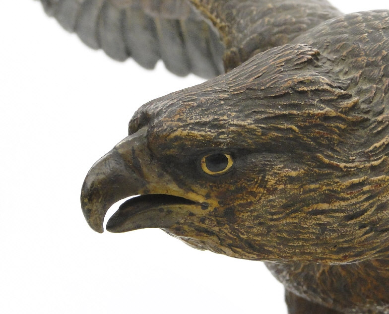 Large Austrian cold painted bronze study of an eagle raised on a rocky outcrop, factory marked to the underside, 36cm high