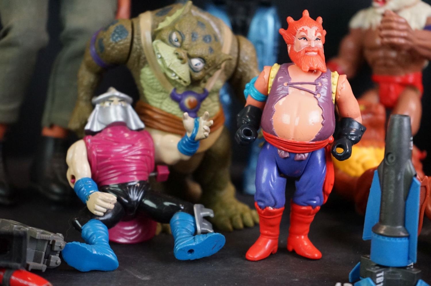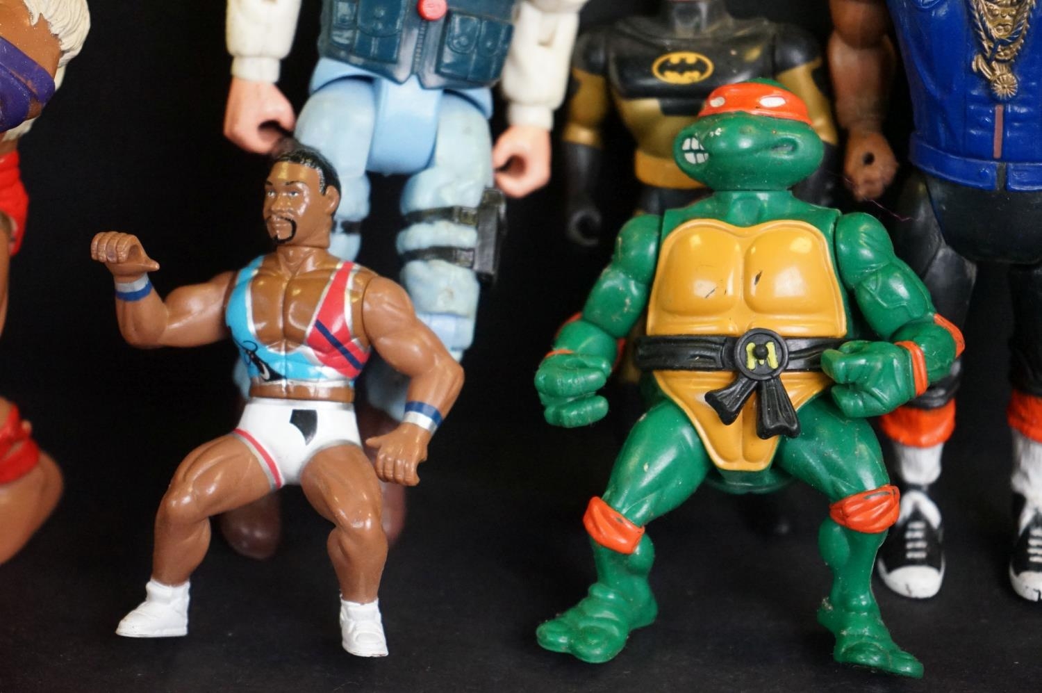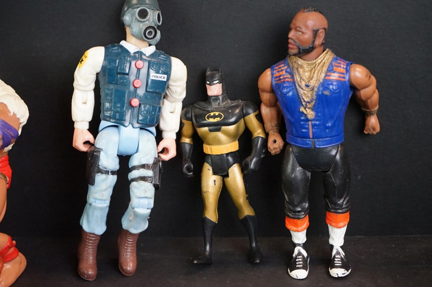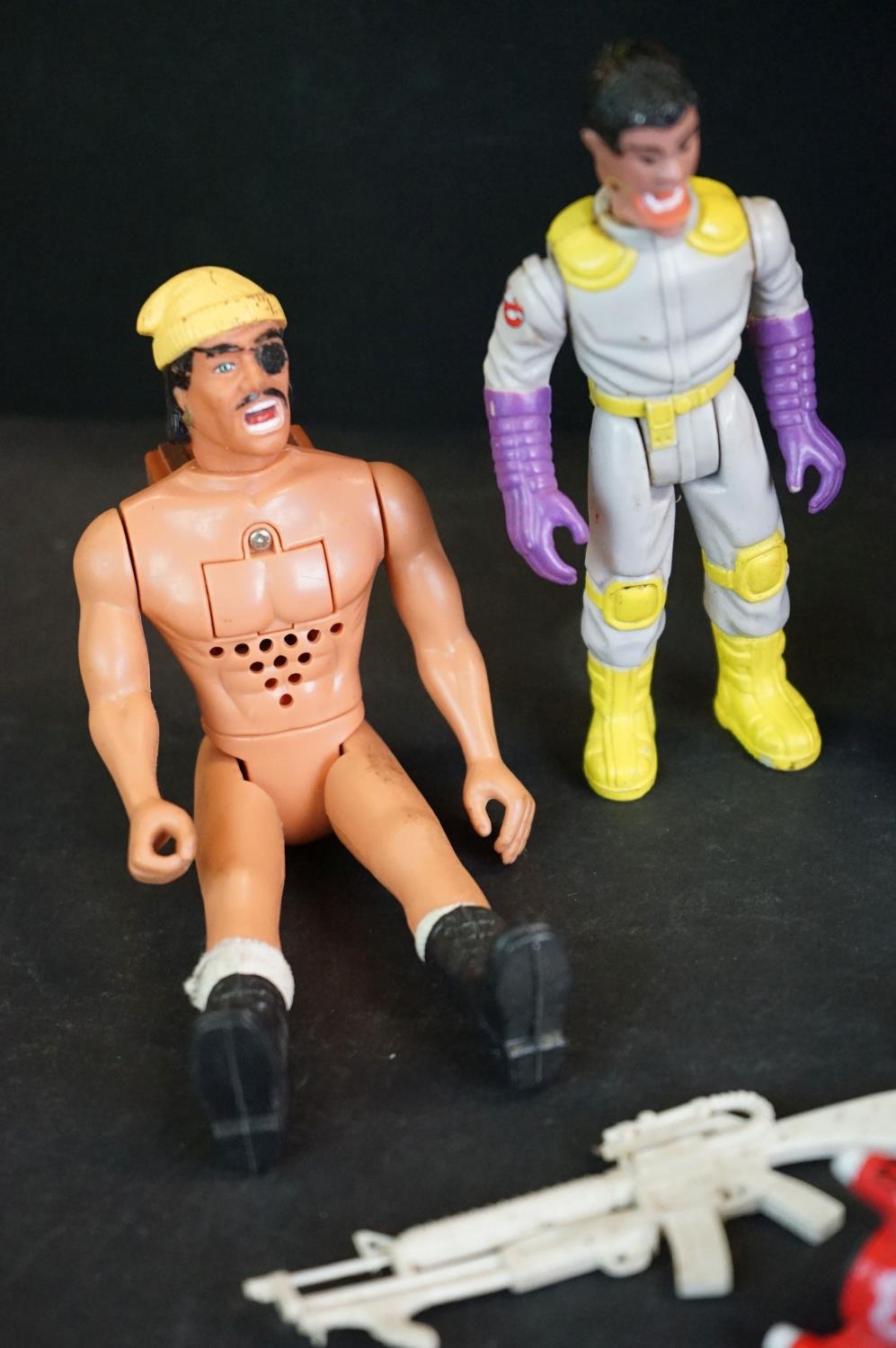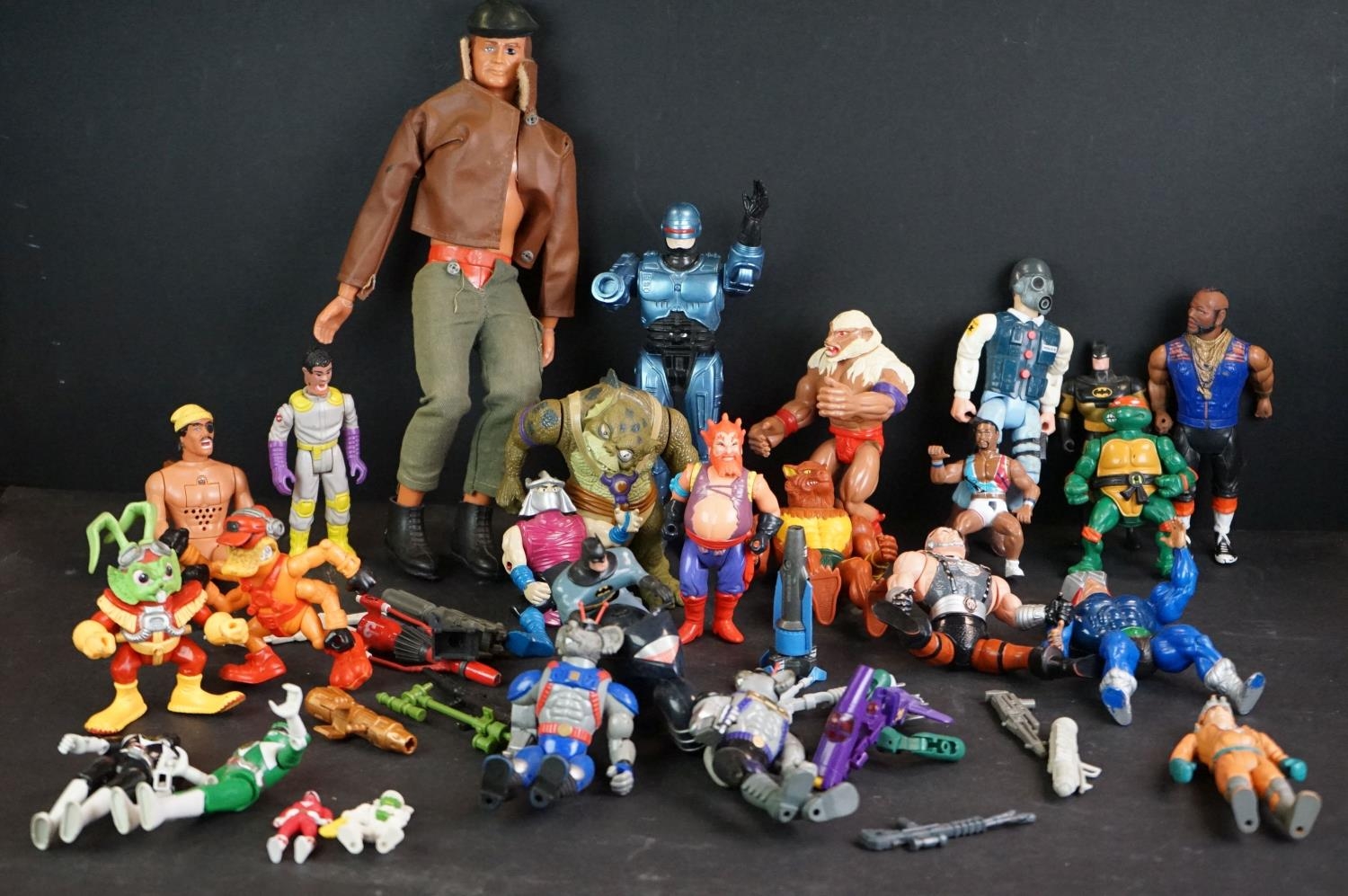Collection of 25 x 1970/80/90s action figures to include Six Million Doller Man, LJN Thundercats, Kenner The Real Ghostbusers, Galoob A Team, RoboCop, Masters of the Universe, Batman etc