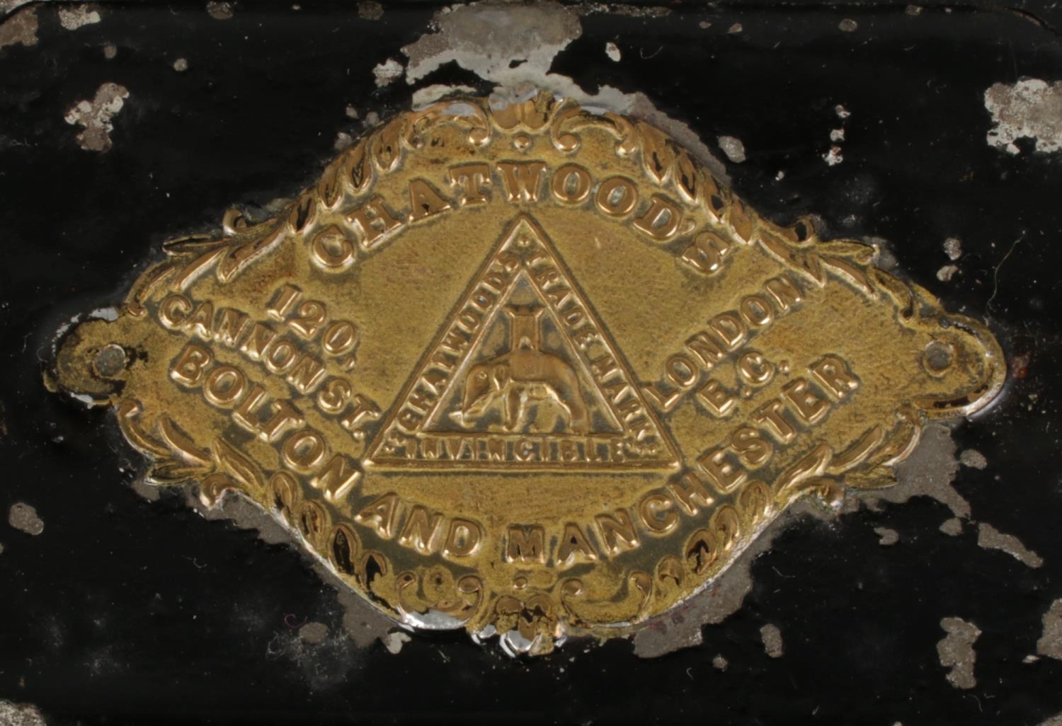 Two cashier/money boxes, to include Victorian Chatwood's example, bearing plaque to inside for London, Bolton and Manchester.