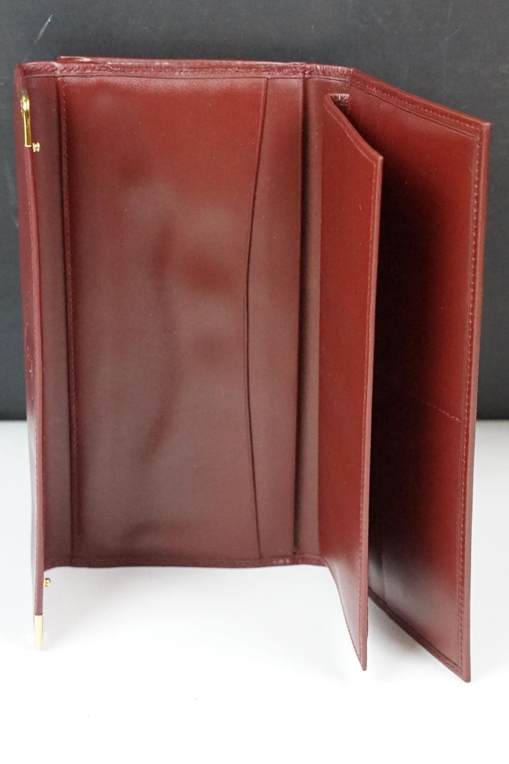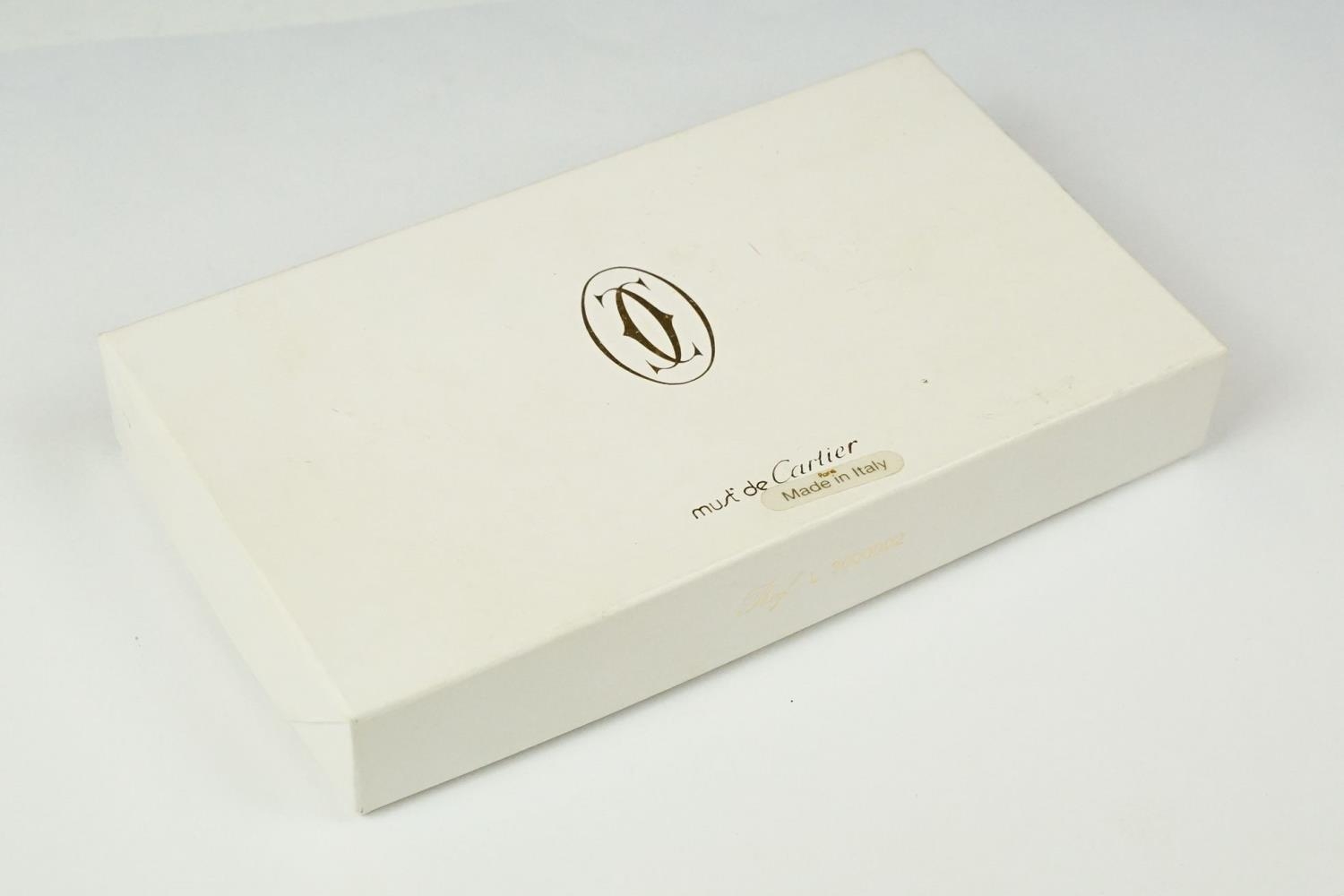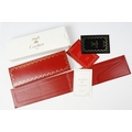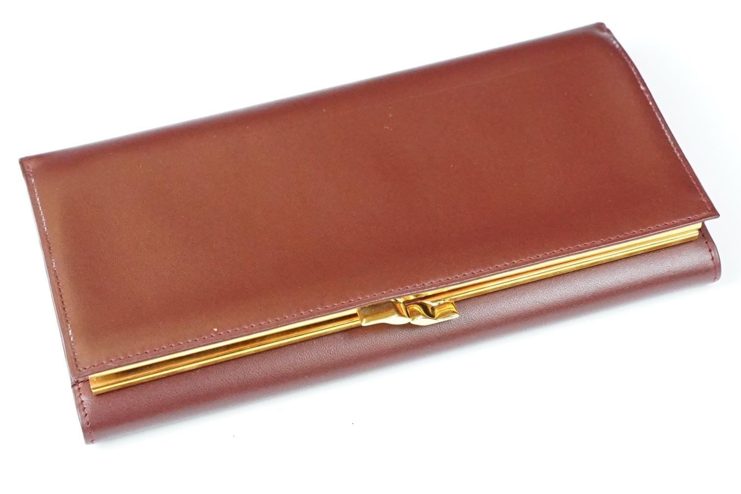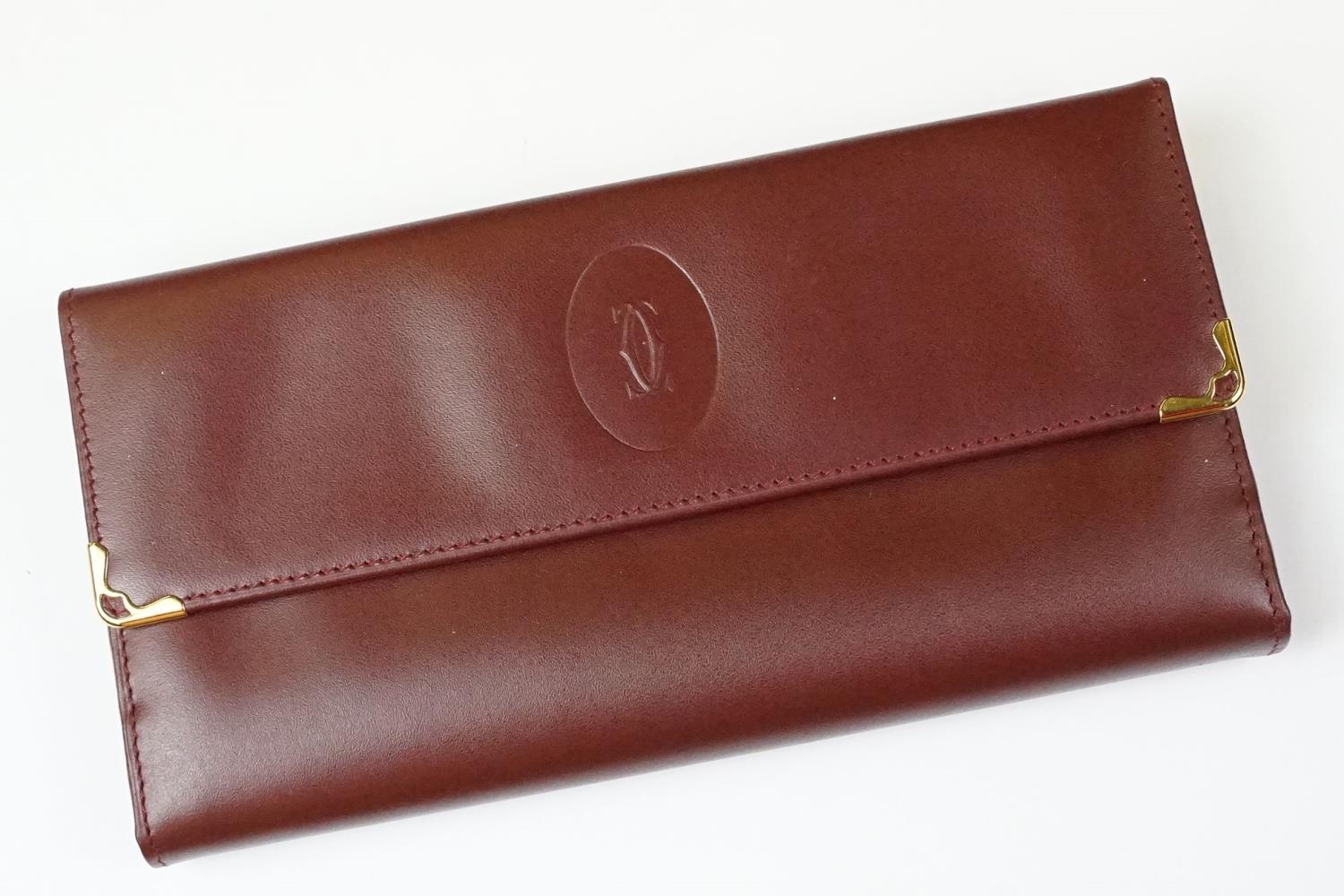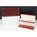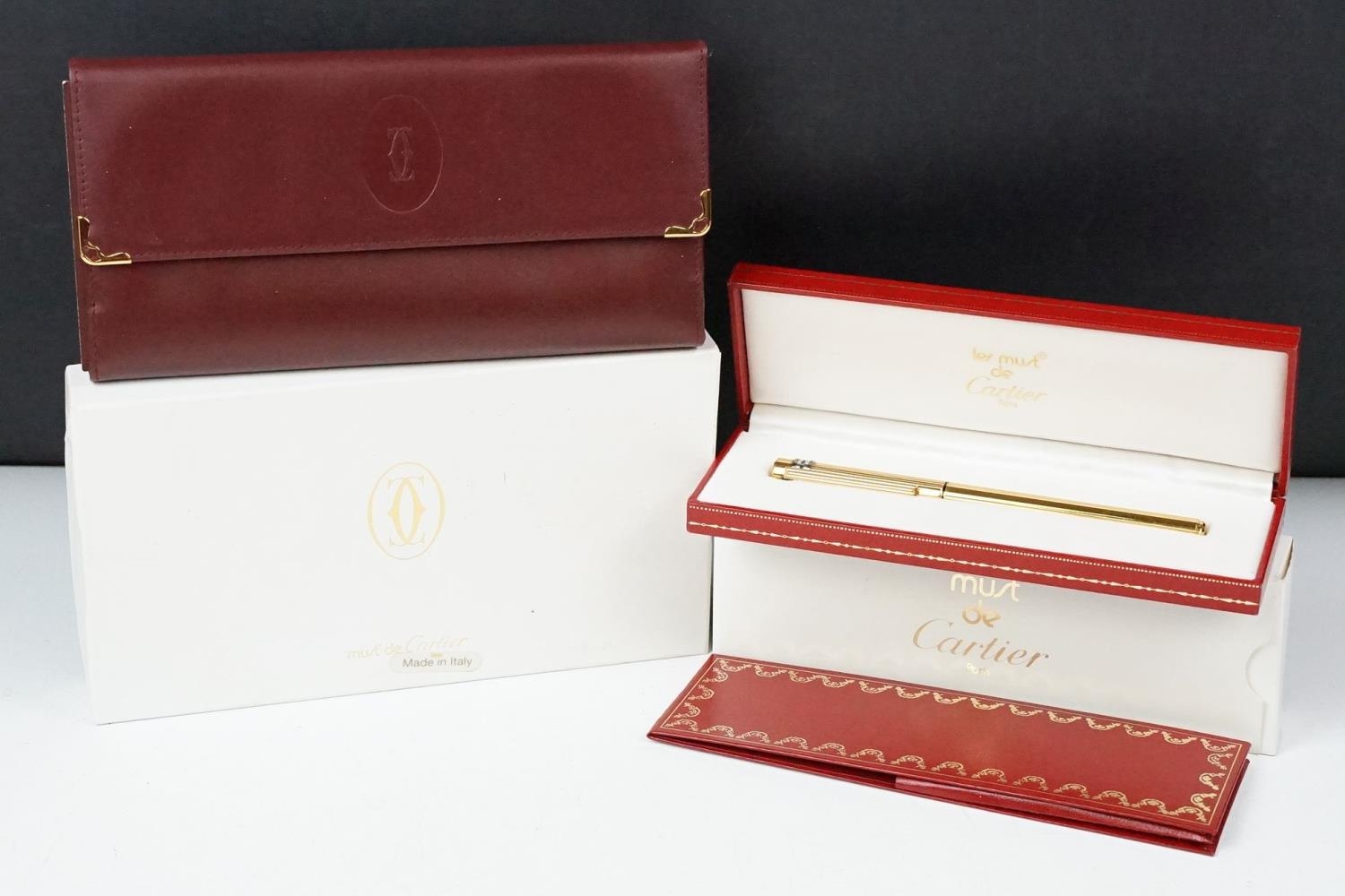 A boxed Cartier leather purse together with a boxed Cartier pen, both with original display boxes.