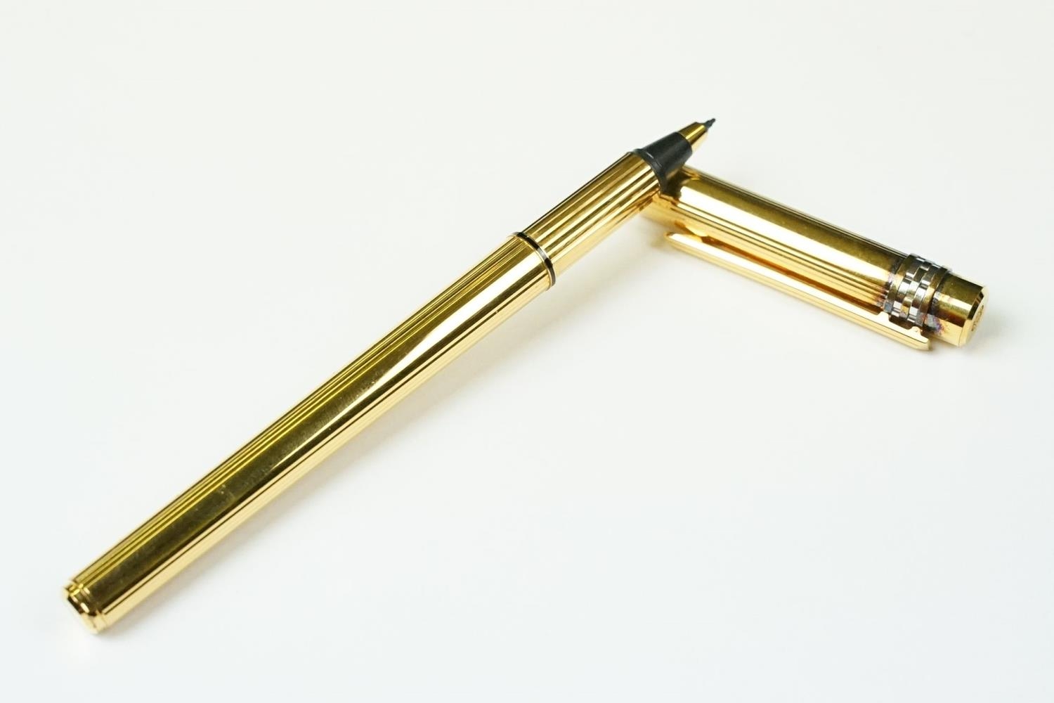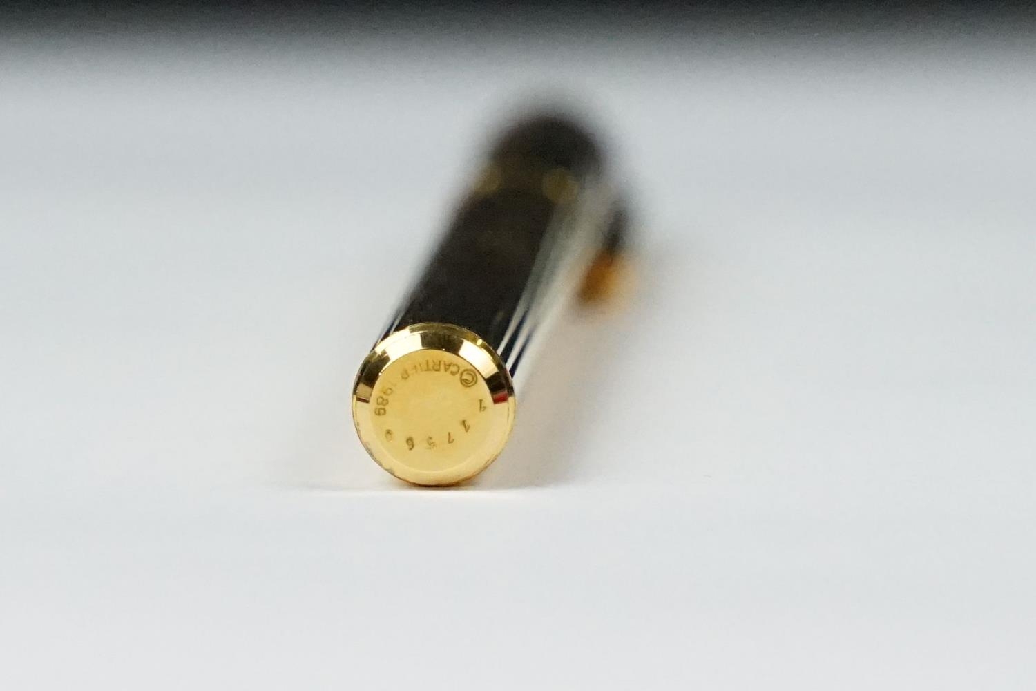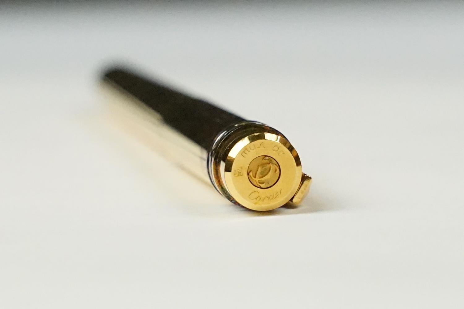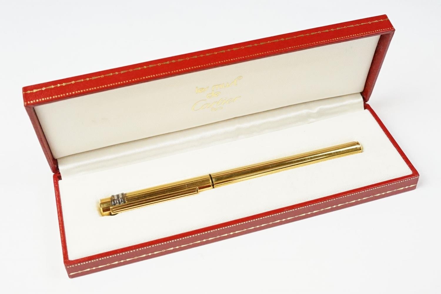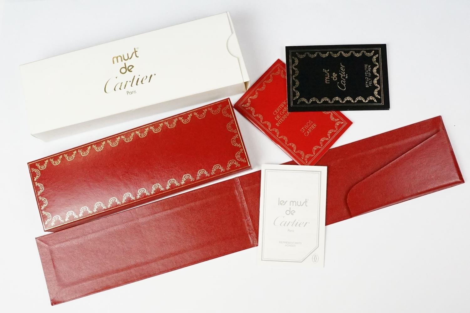 A boxed Cartier leather purse together with a boxed Cartier pen, both with original display boxes.