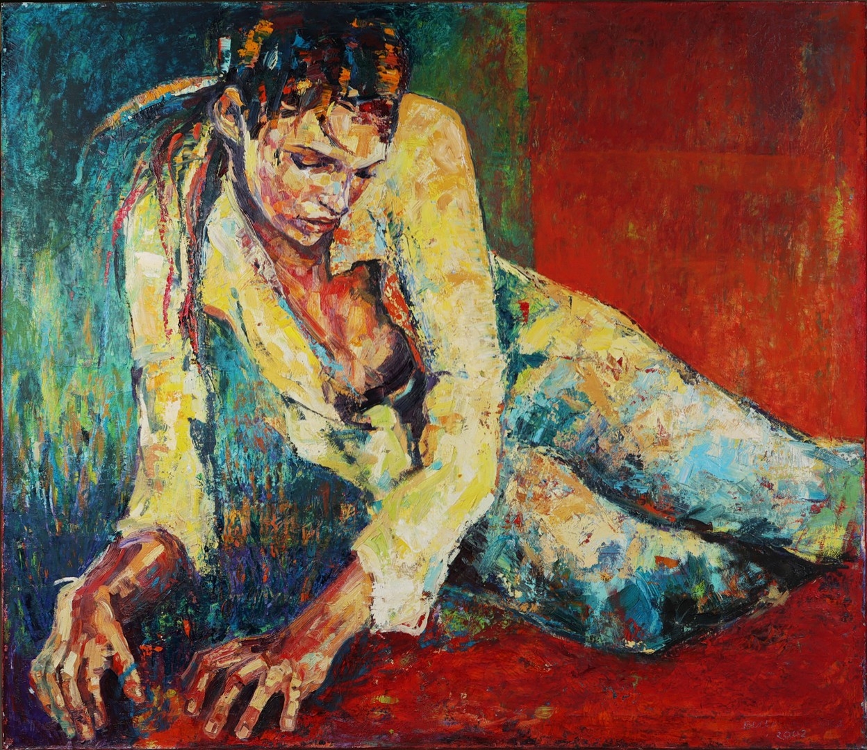 ANNA BOCEK (POLISH, B. 1973). RED WINE. oil on canvas, 130cm x 150cm.