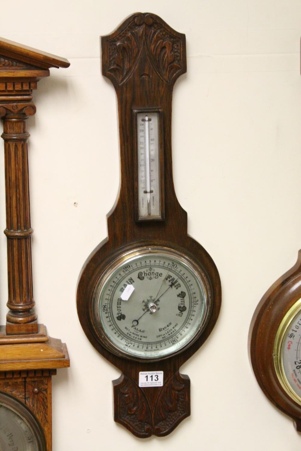 An oak cased mid century banjo barometer.
