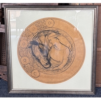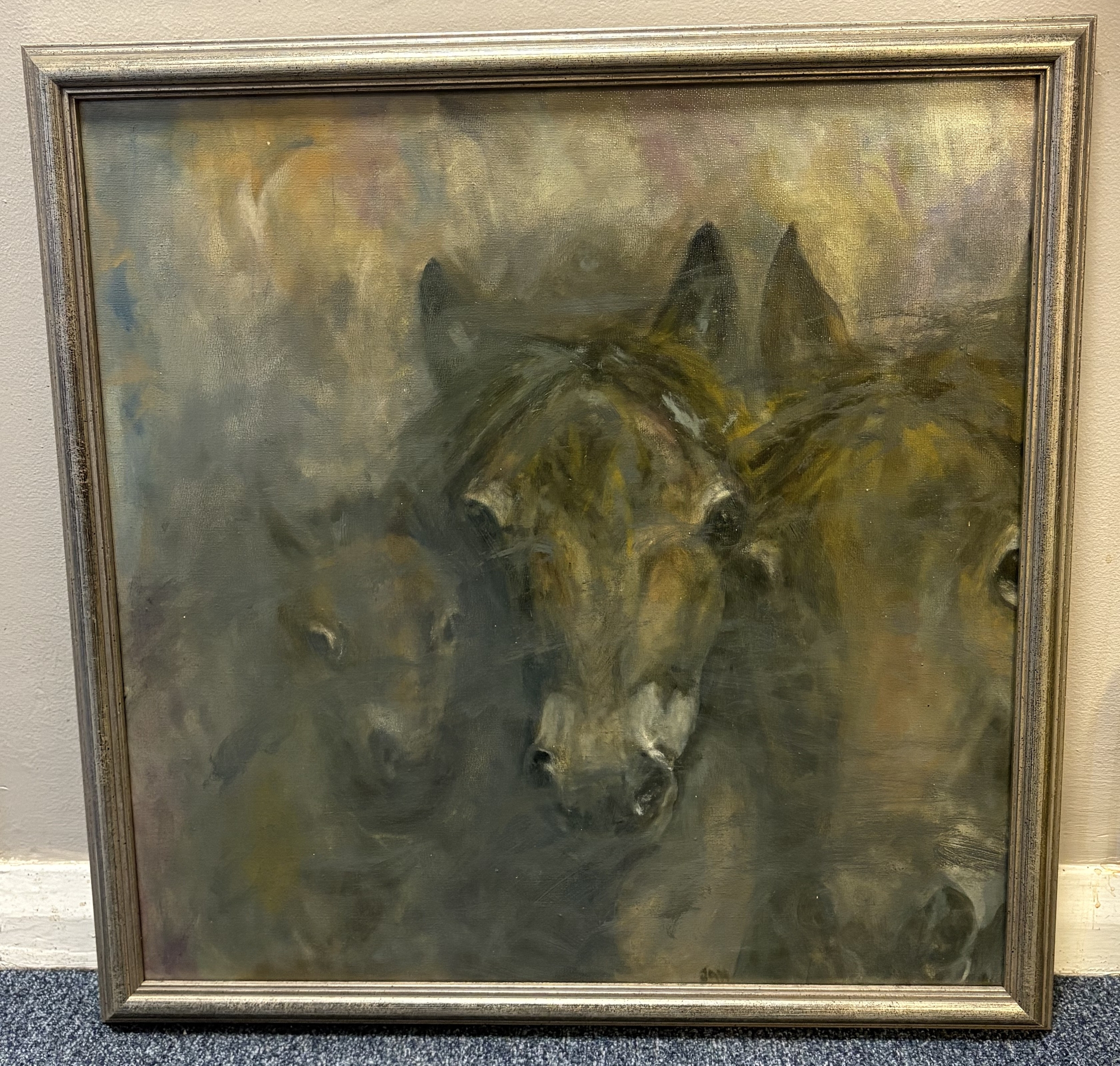 A framed acrylic on canvas depicting ponies. Apparently unsigned. Approx. 48.5 cm x 48.5 cm (ss). Est. £20 - £30.