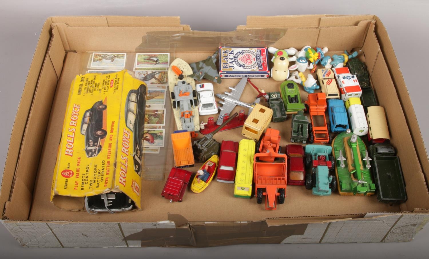 A tray of mostly diecast vehicles to include matchbox, large Rolls Royce etc.