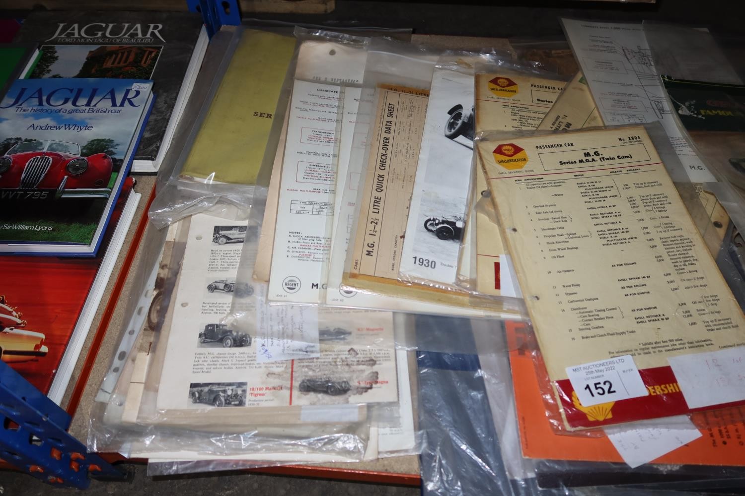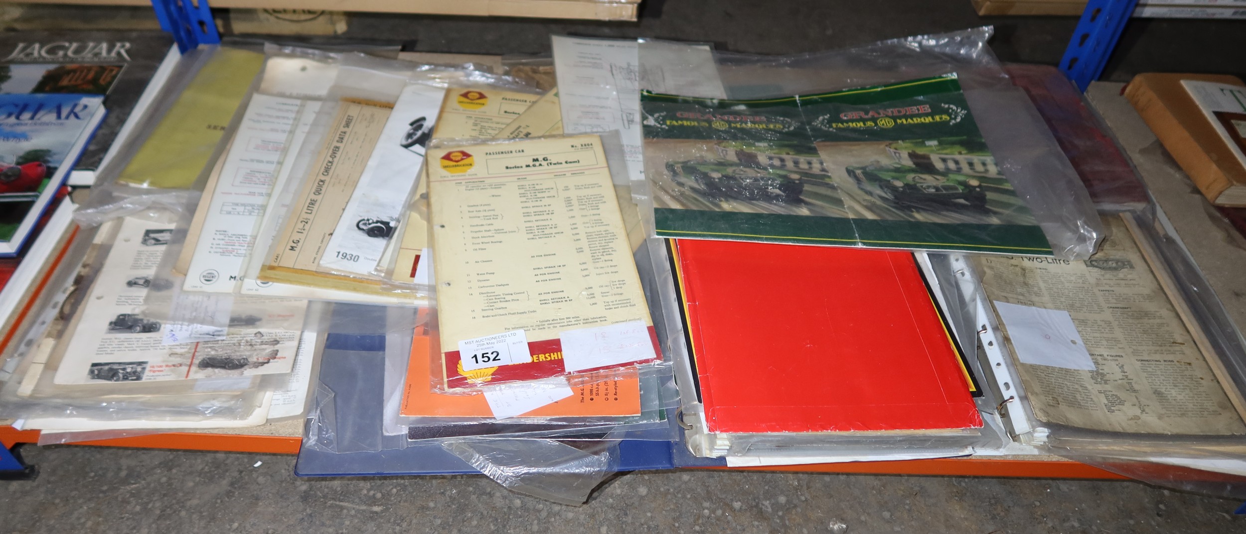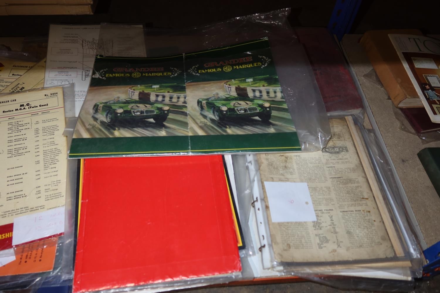 A quantity of various MG vintage lubrication charts, data sheets etc. Contents of 1 shelf