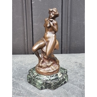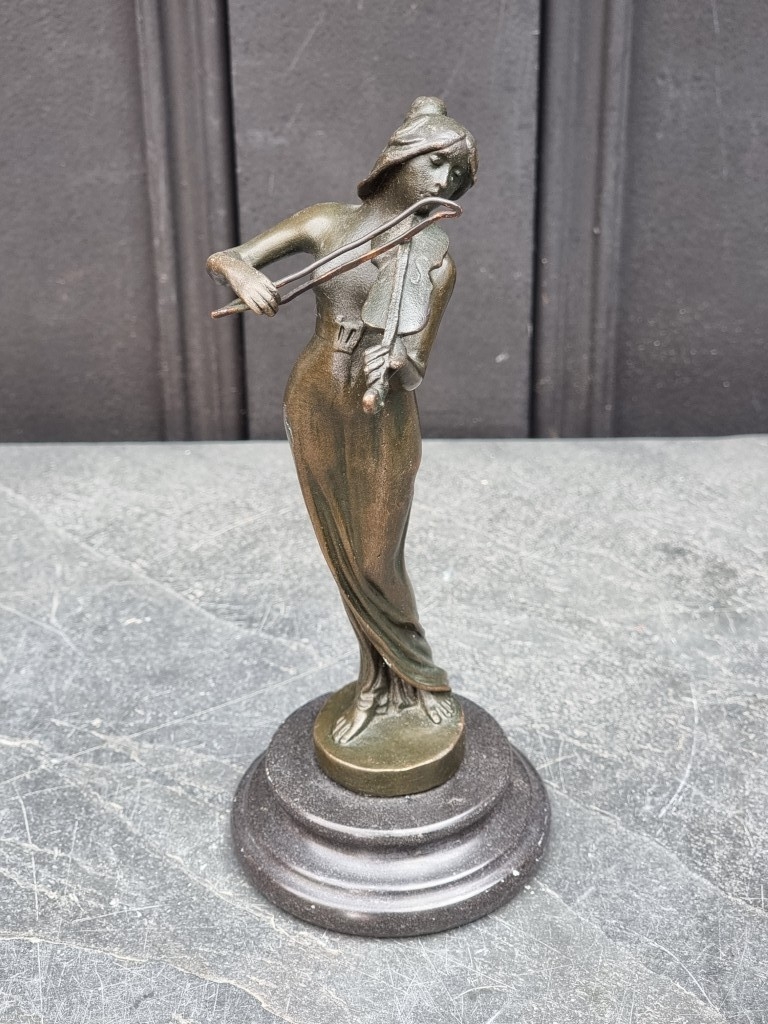 An Art Nouveau style bronze fiddler, on marble base, 18.5cm high.