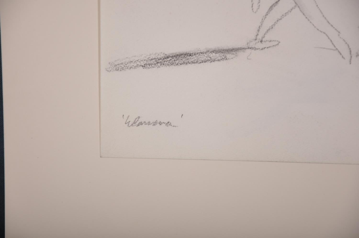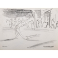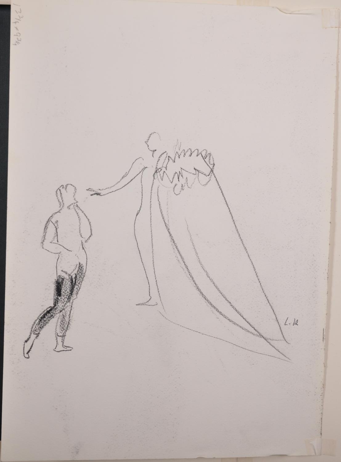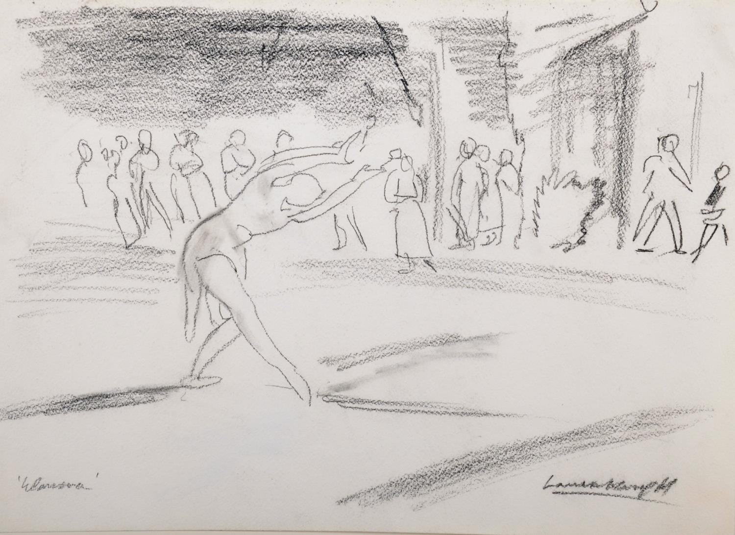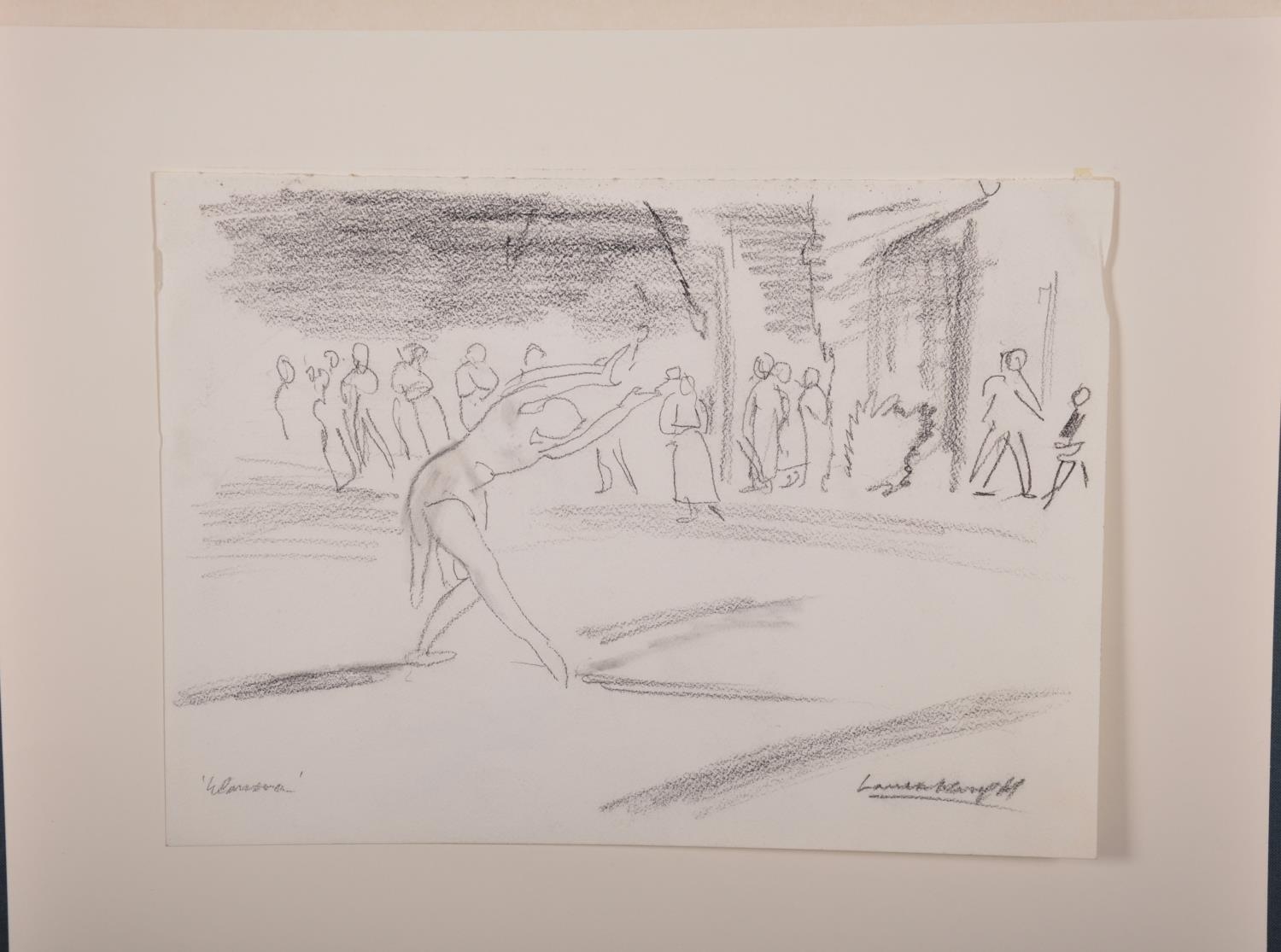 Laura Knight (1877-1970) British. ‘A Ballet Dancer’ with Figures behind, Charcoal, Signed and Indistinctly Inscribed, with a Sketch of two figures on the reverse, Unframed, 10” x 14” (25.4 x 35.5cm)