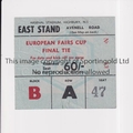 1970 FAIRS CUP FINAL / ARSENAL V ANDERLECHT Ticket for the 2nd Leg at Arsenal 28/4/1970, slightly creased. Generally good
