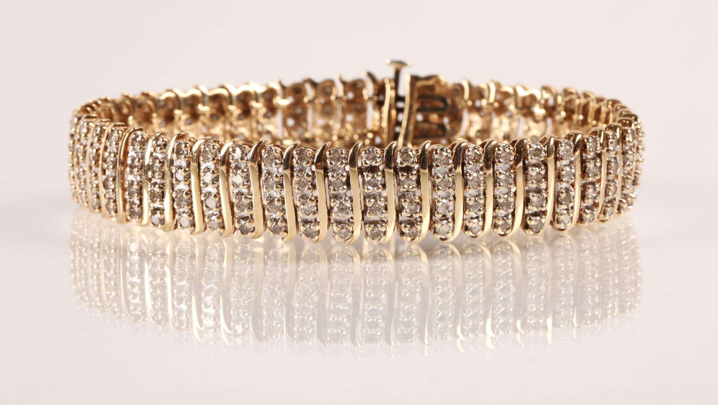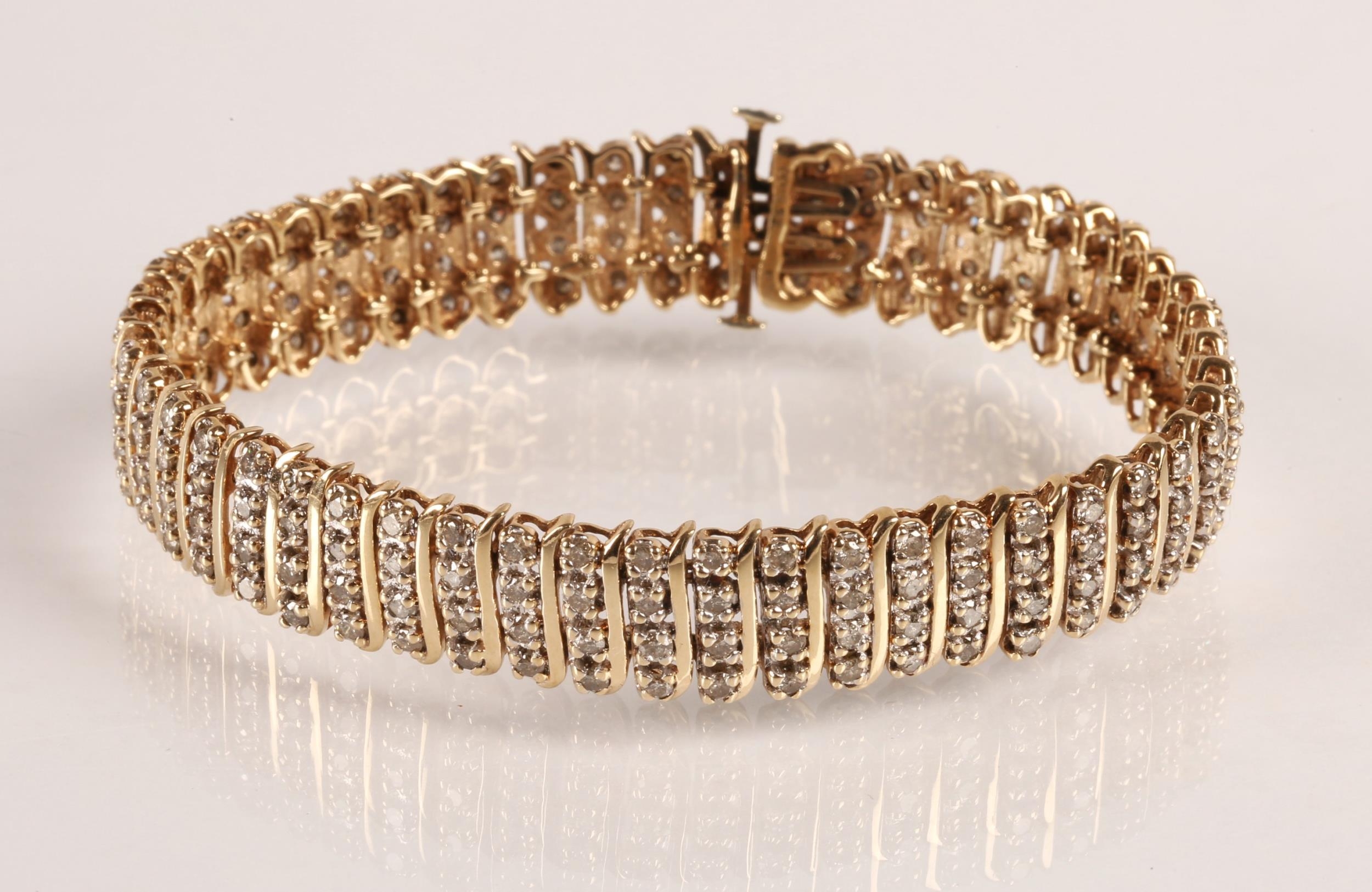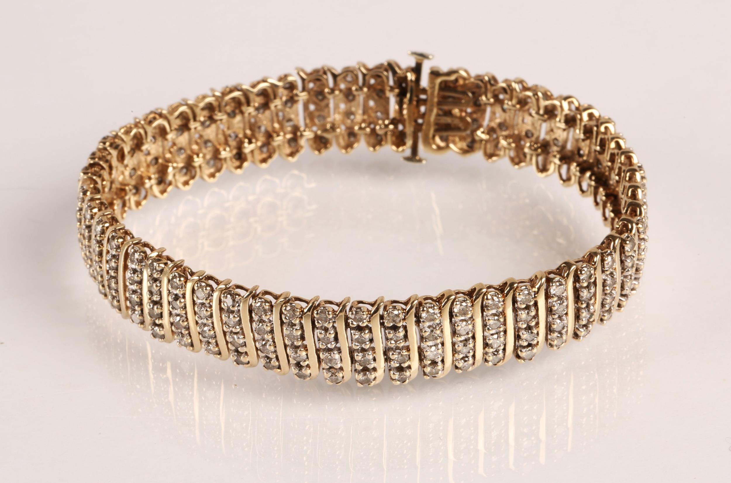 Ladies 9ct yellow gold Diamond encrusted bracelet, each link set with four small diamonds, 196 small diamonds, 18cm long, gross weight 22 grams