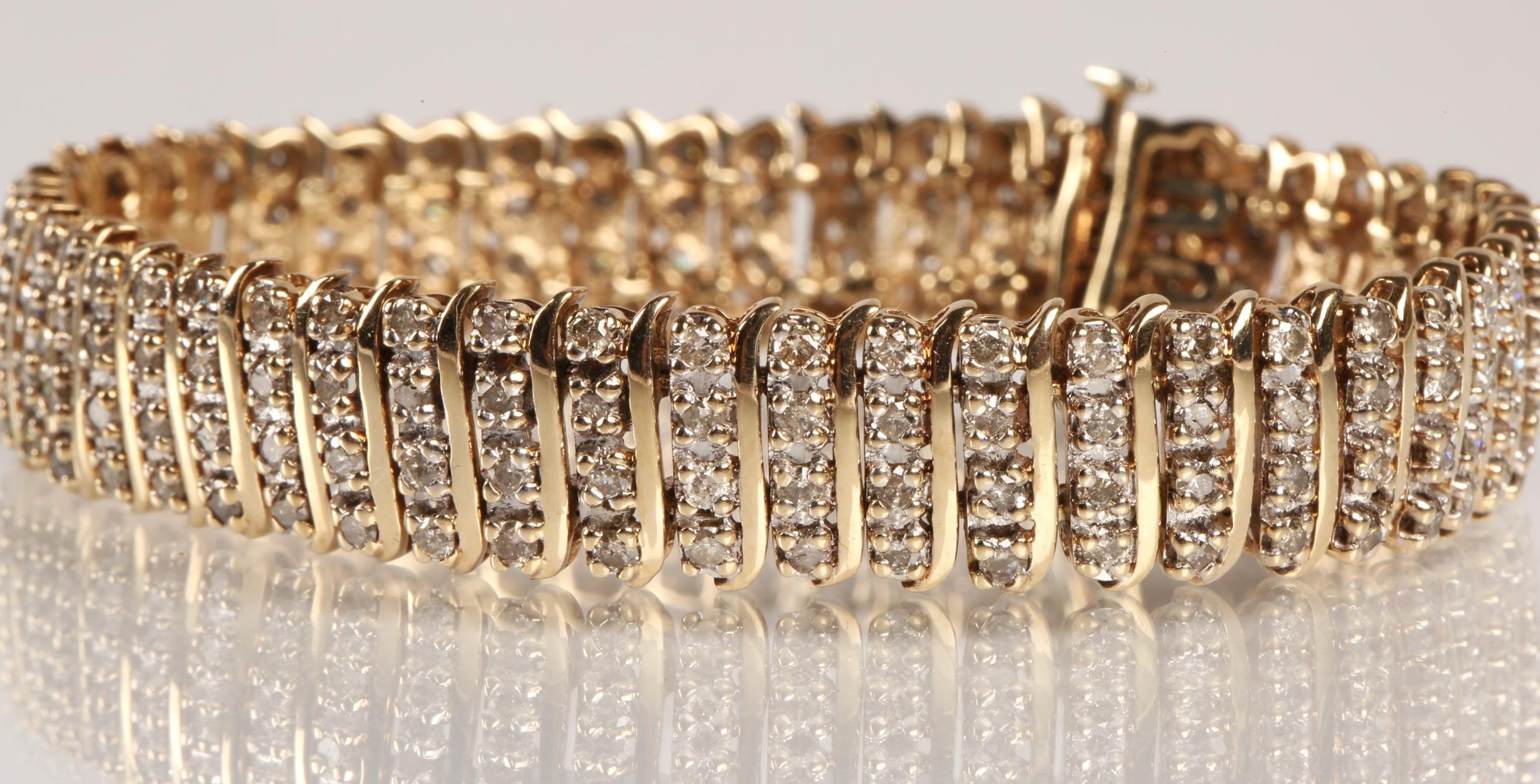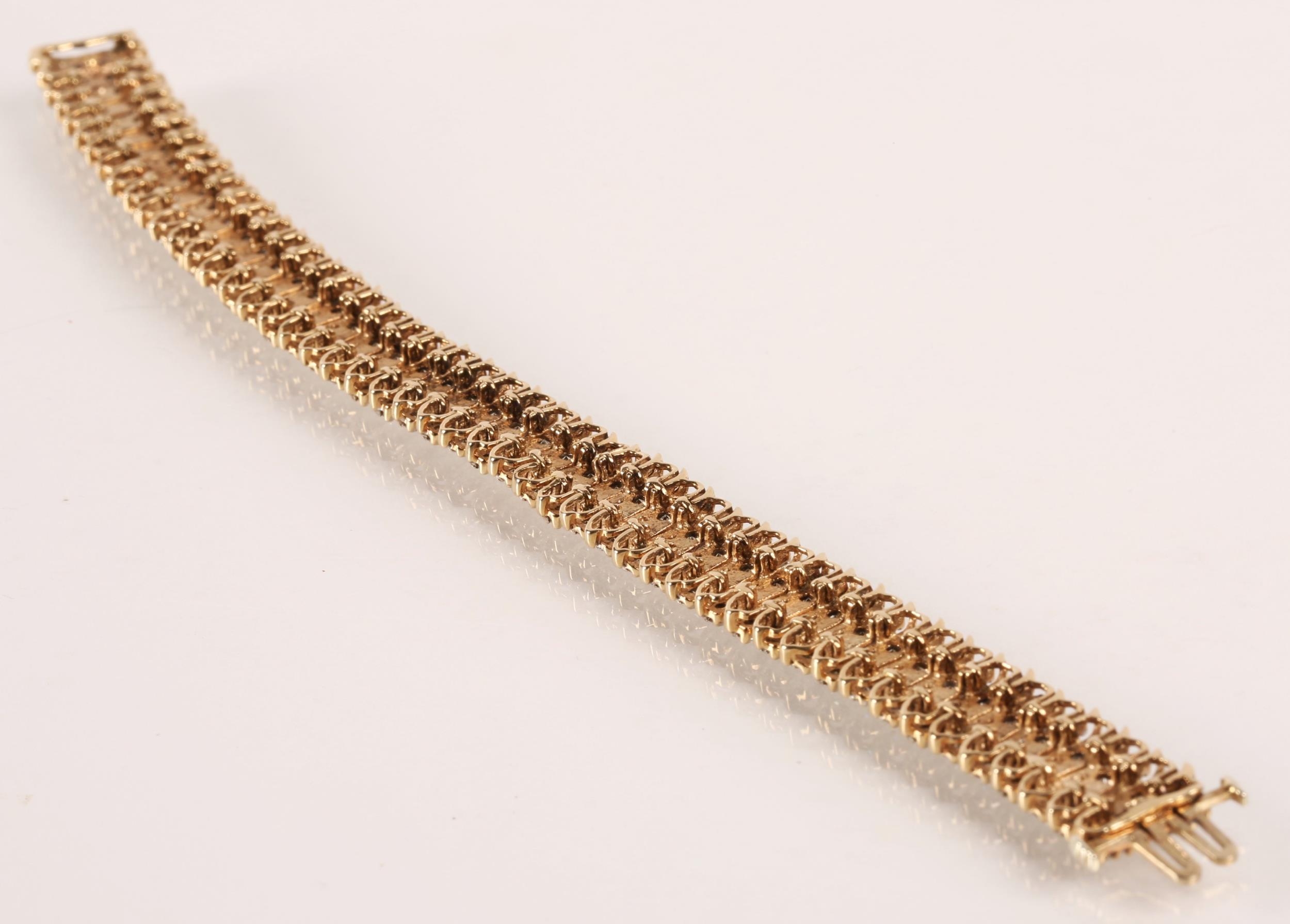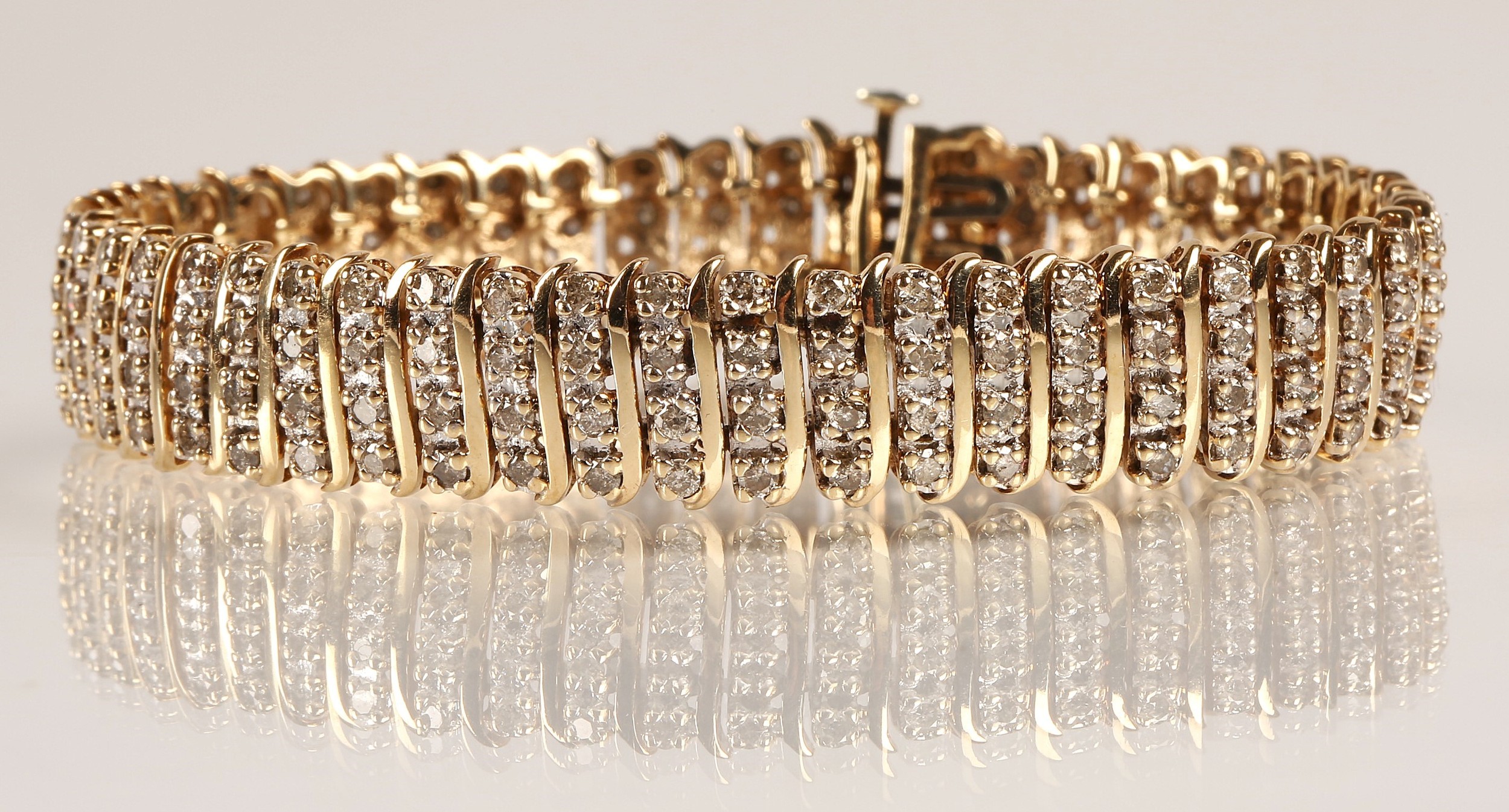 Ladies 9ct yellow gold Diamond encrusted bracelet, each link set with four small diamonds, 196 small diamonds, 18cm long, gross weight 22 grams
