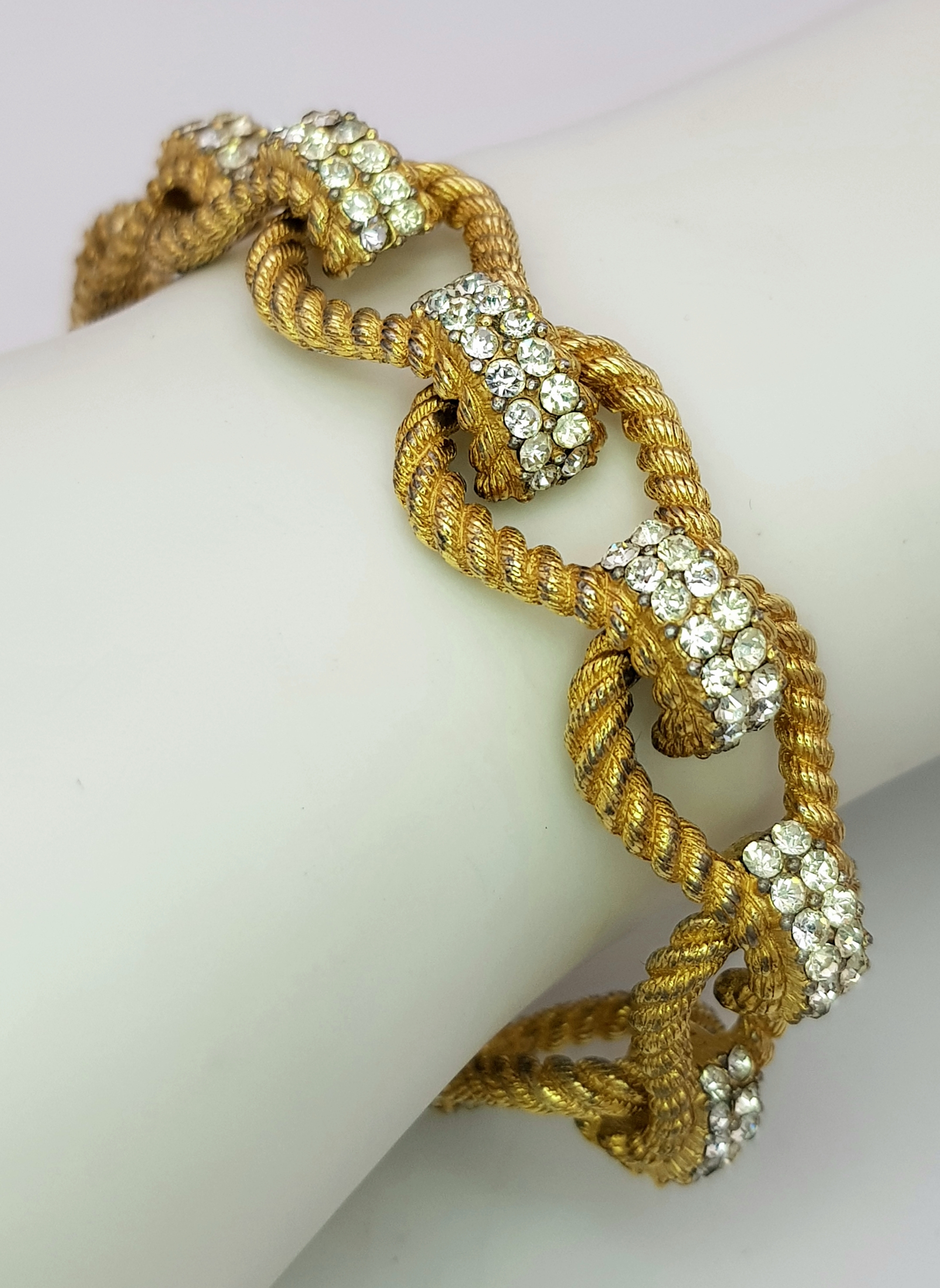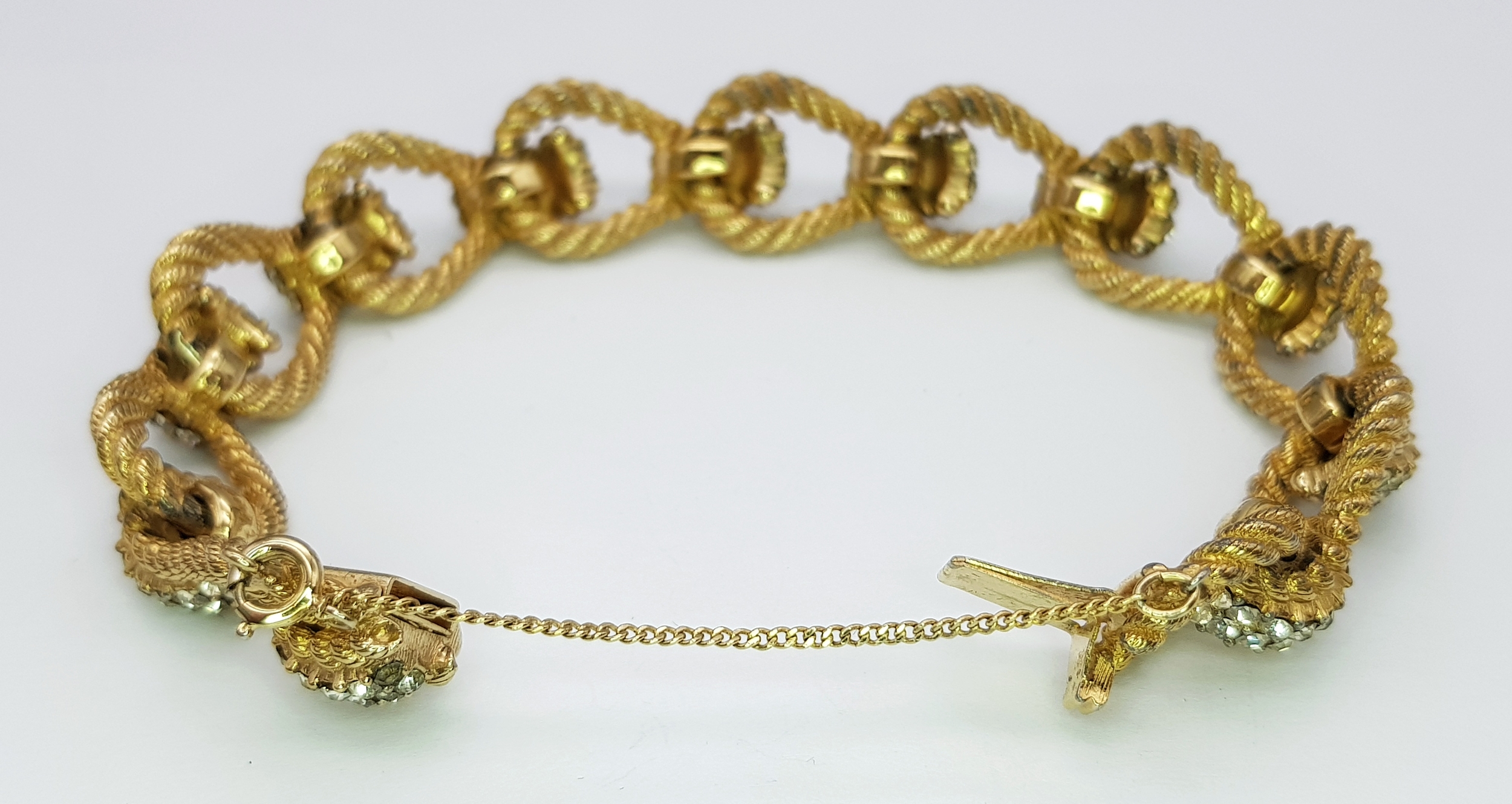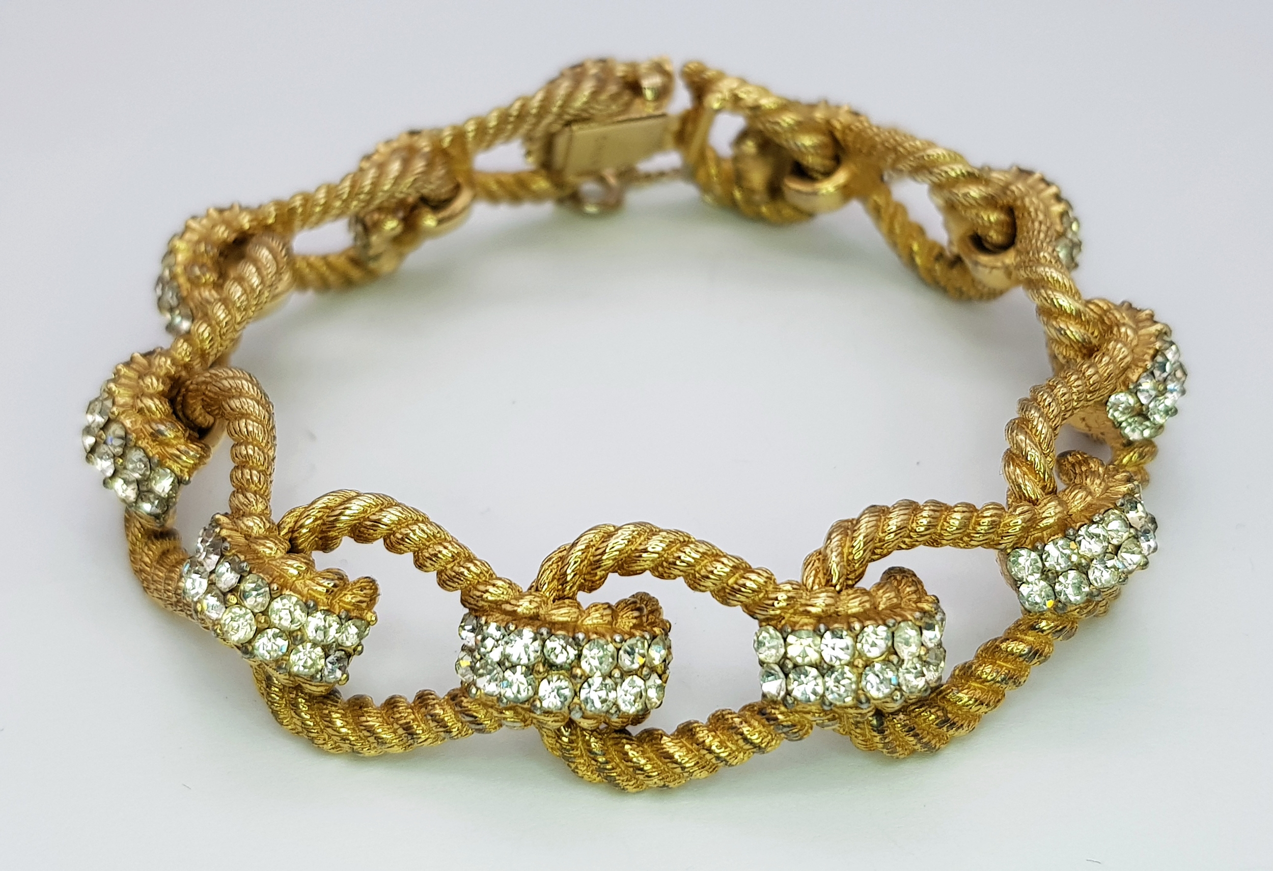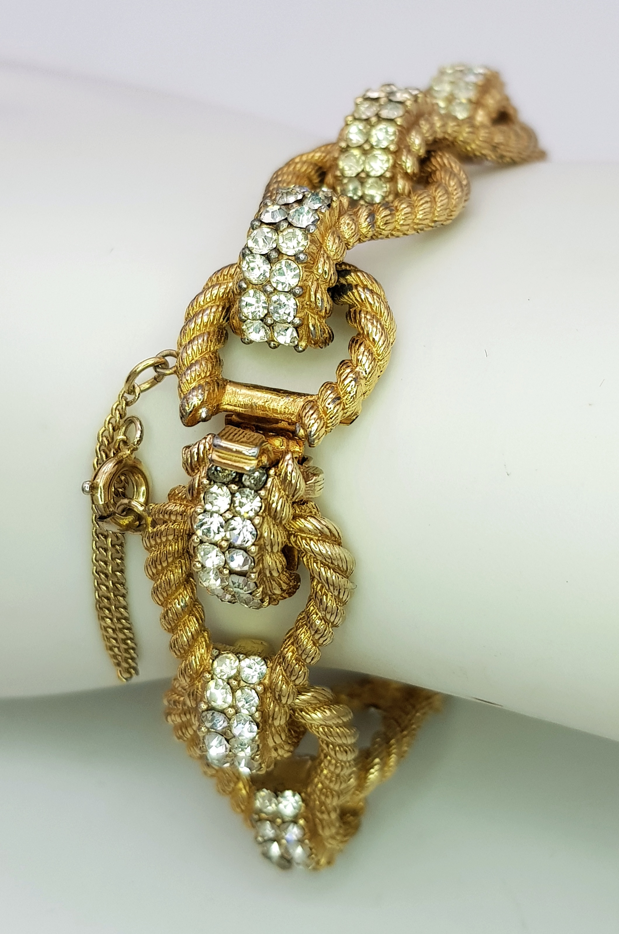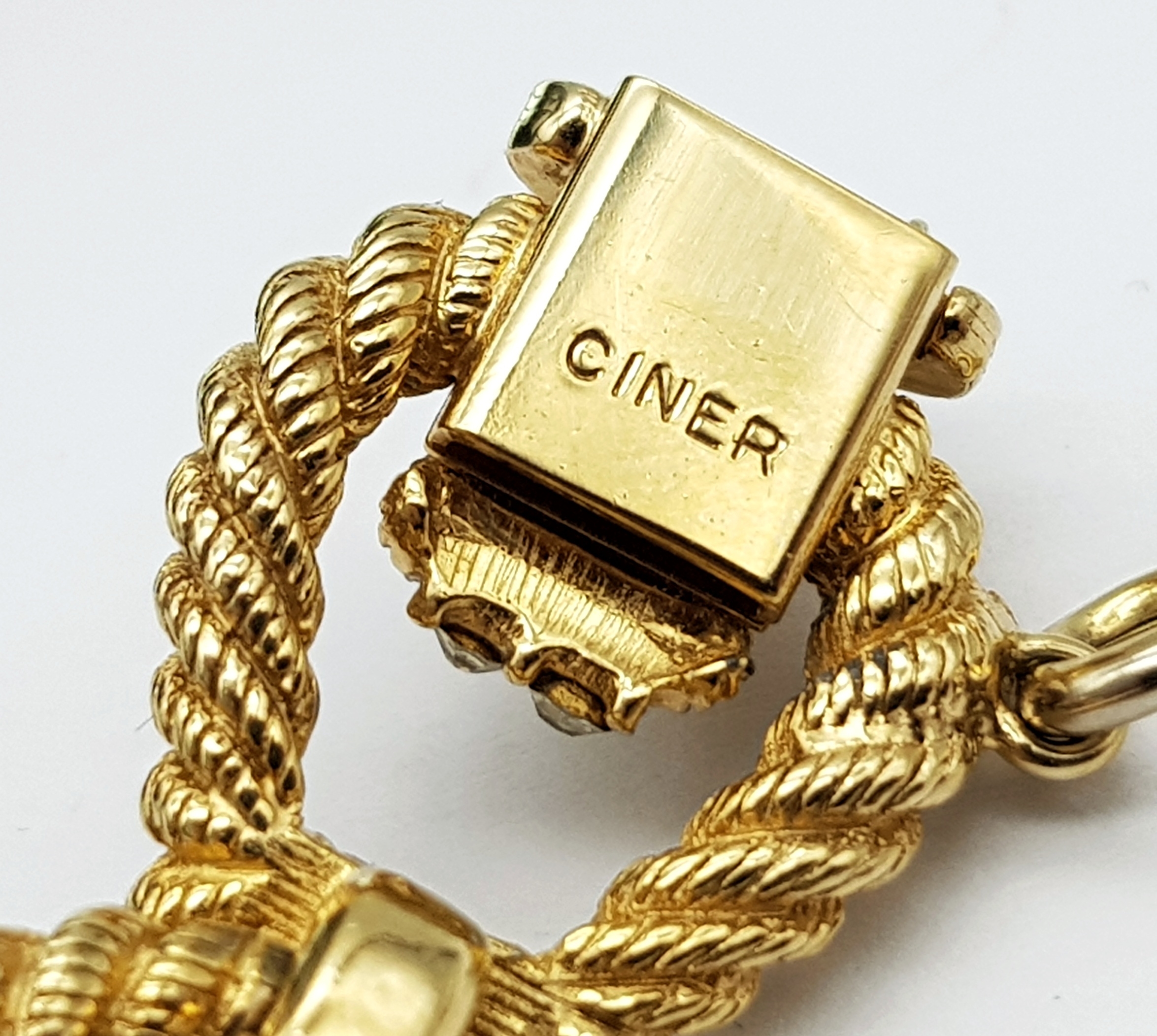 A Vintage 1950s Ciner 18K Gold Plated White Stone Set Bracelet. Complete with safety chain. 19cm length. Comes with presentation box.
