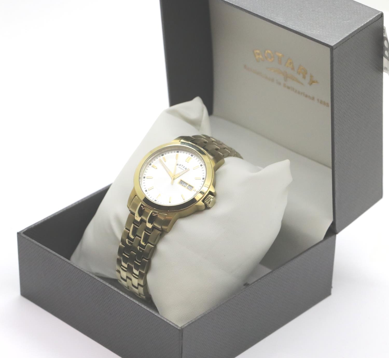 Boxed gents Rotary day/date wristwatch. P&P Group 1 (£14+VAT for the first lot and £1+VAT for subsequent lots)
