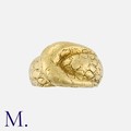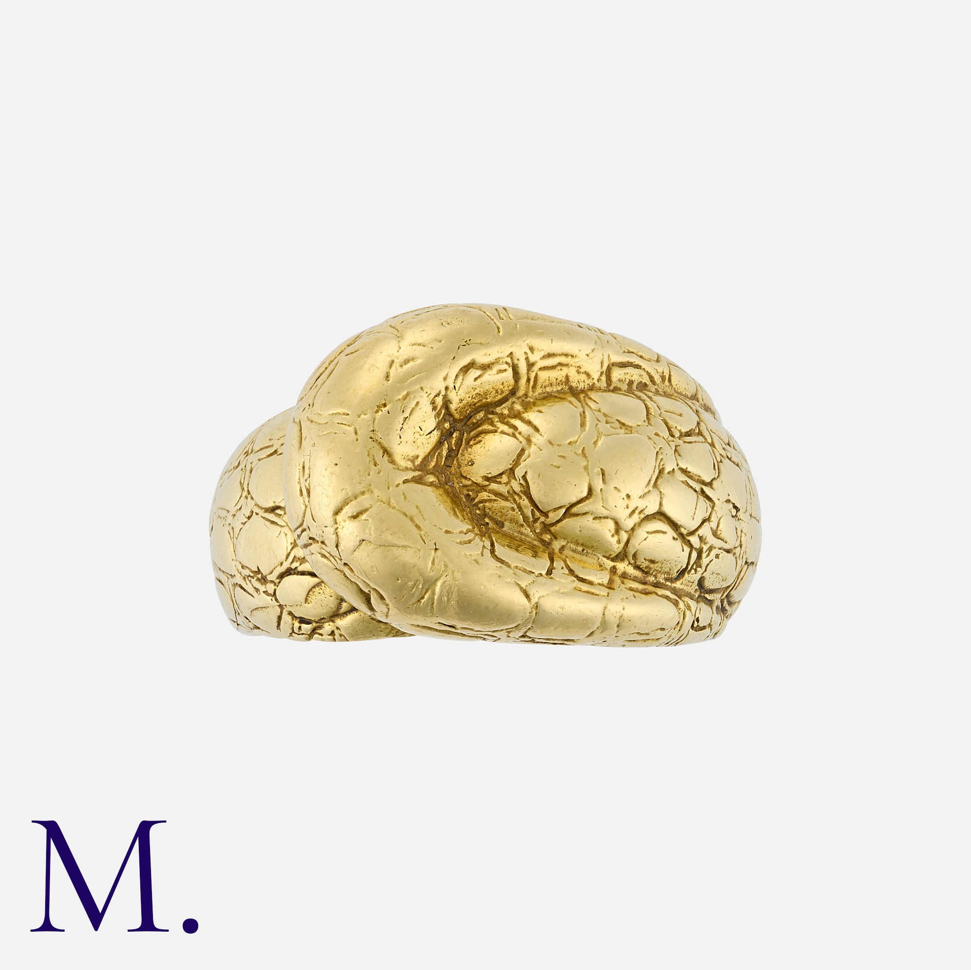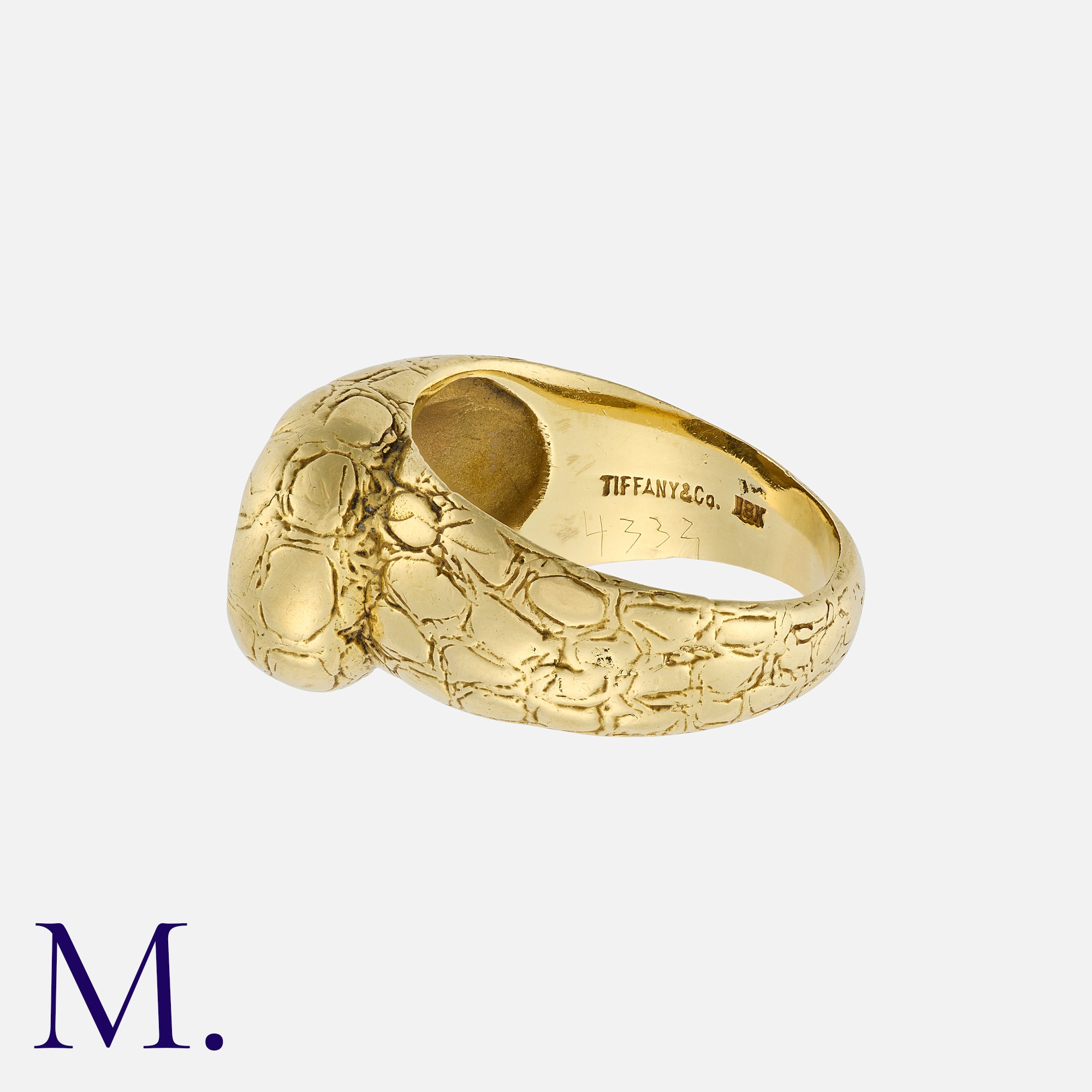 TIFFANY & Co, A Buckle Ring in 18k yellow gold, designed as an abstract, reptile skin textured buckle, Signed Tiffany & Co. and marked 18K.