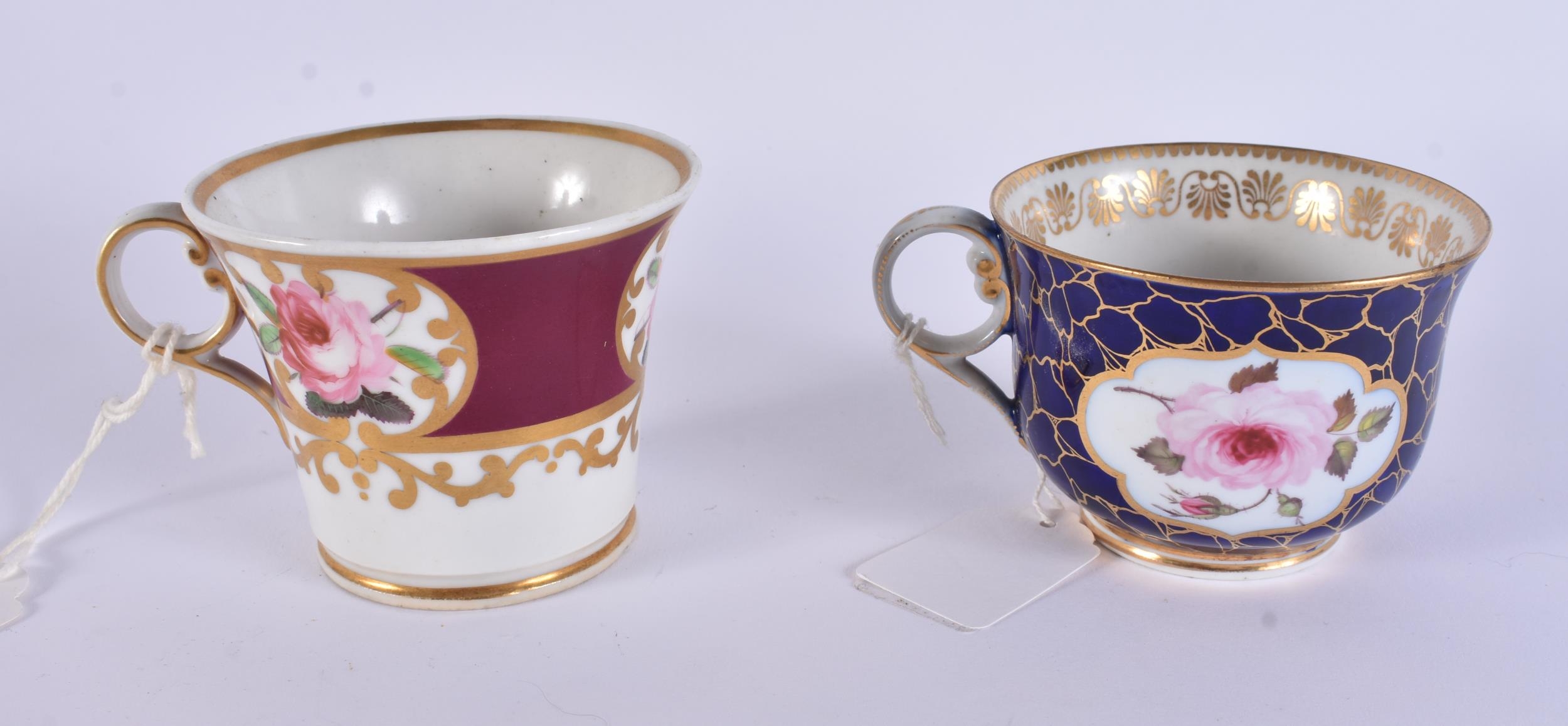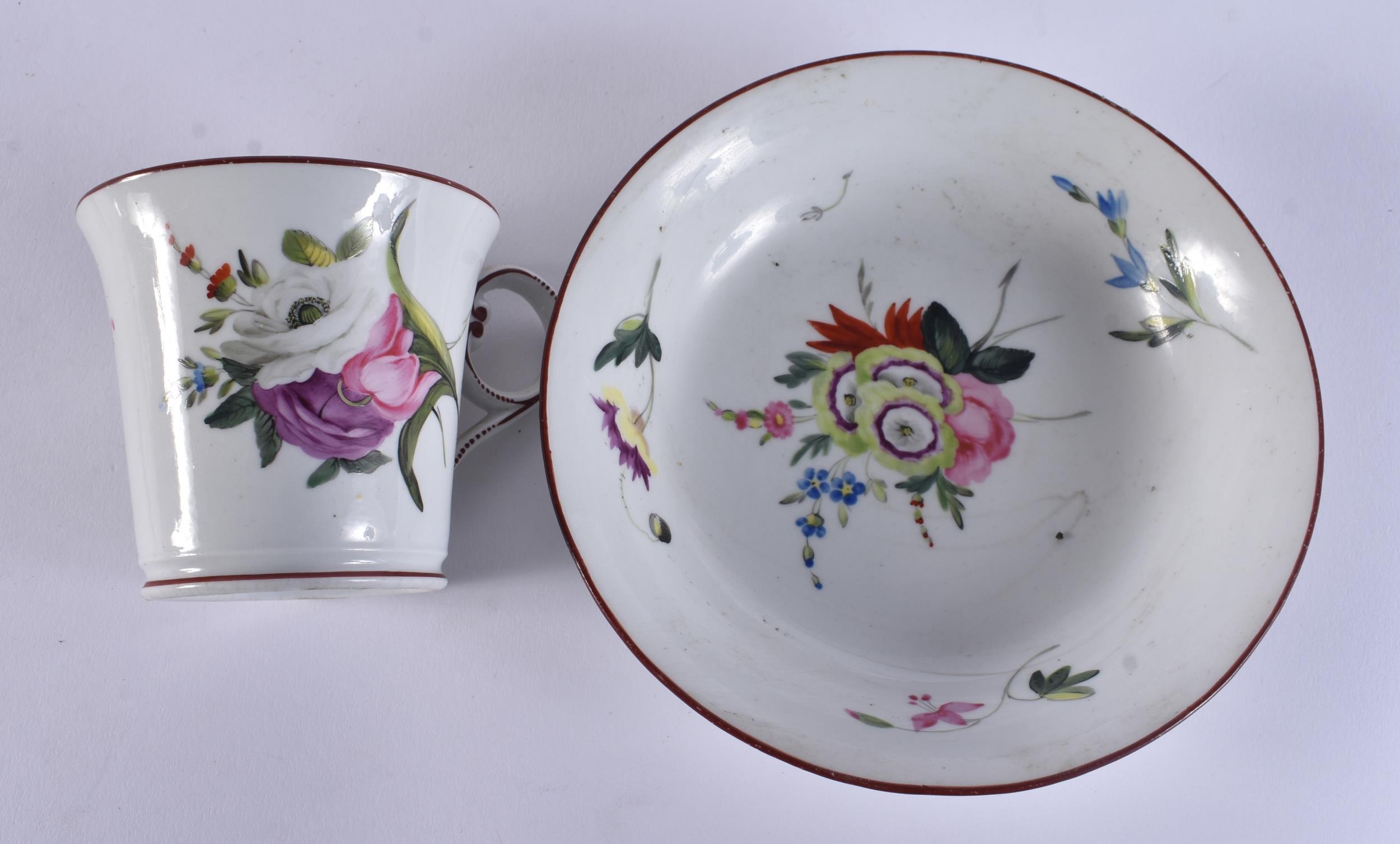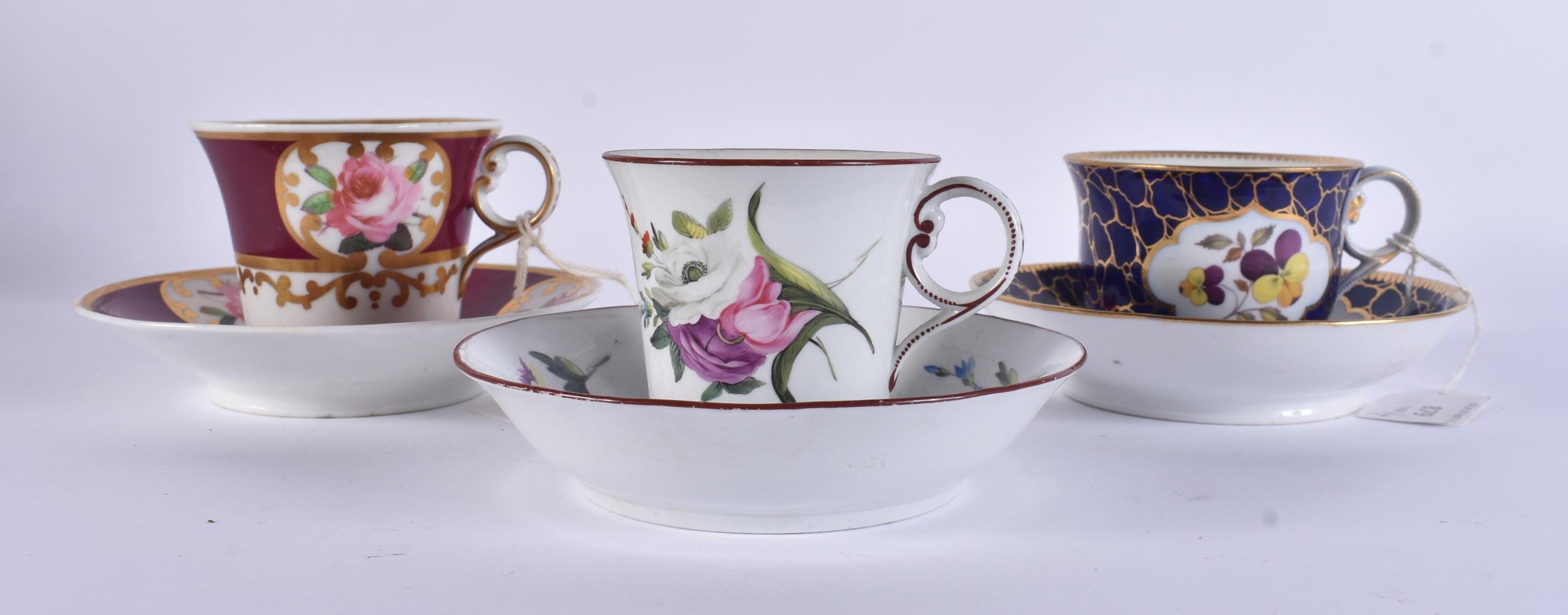 THREE EARLY 19TH CENTURY CHAMBERLAINS WORCESTER BOTANICAL CUPS AND SAUCER. (6)