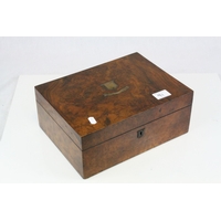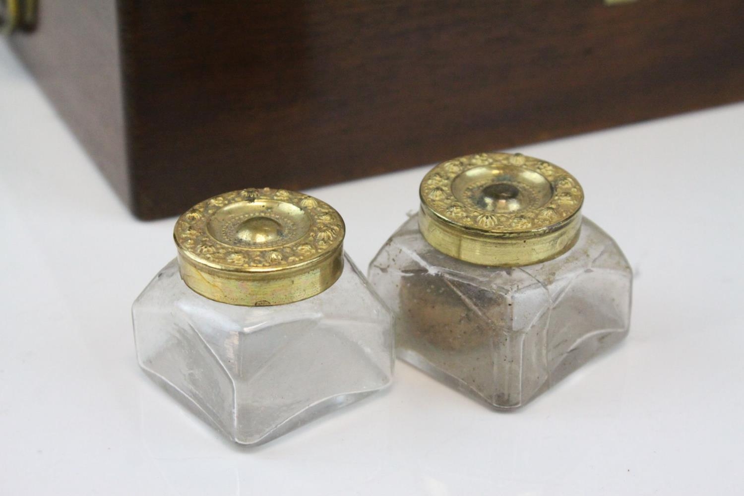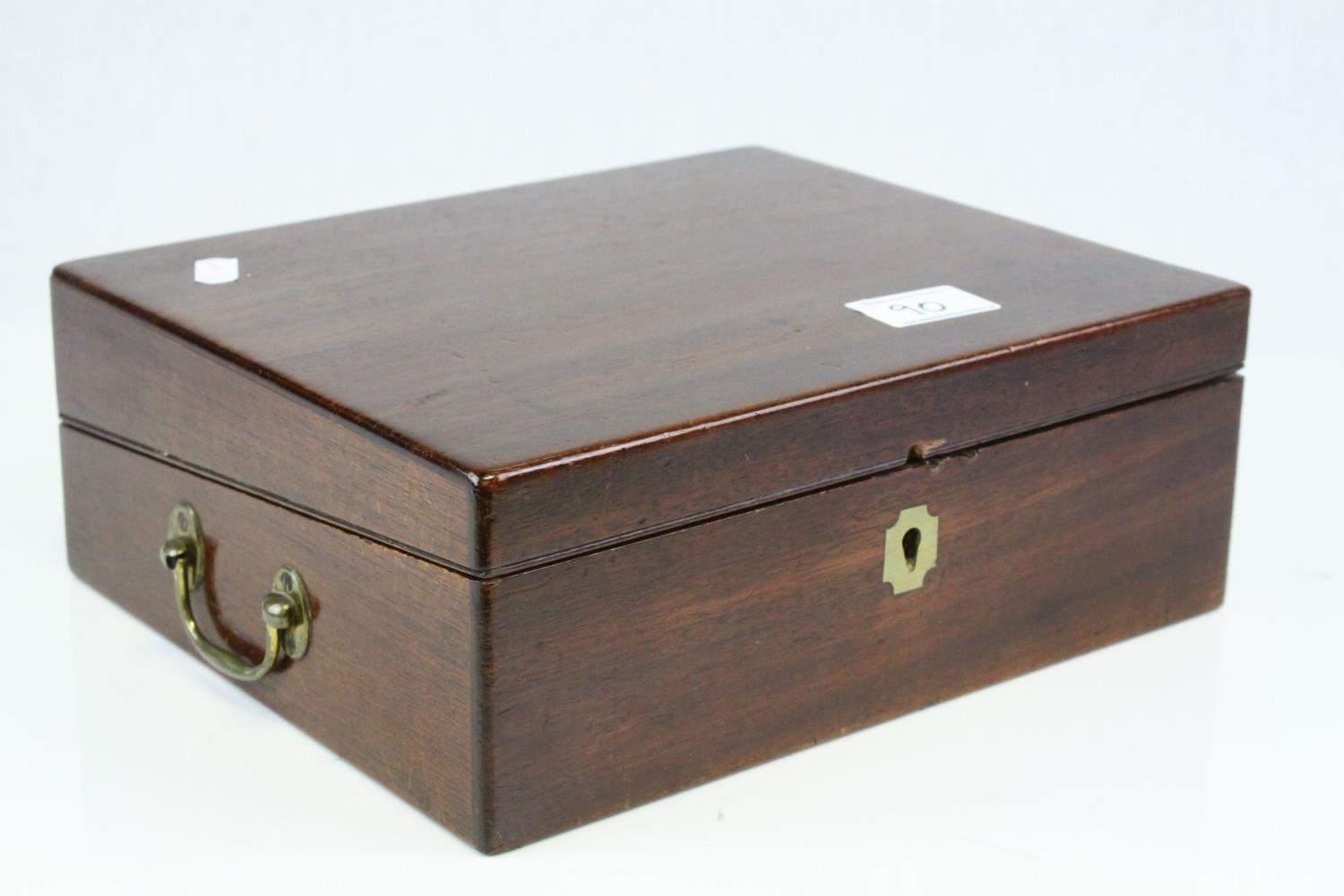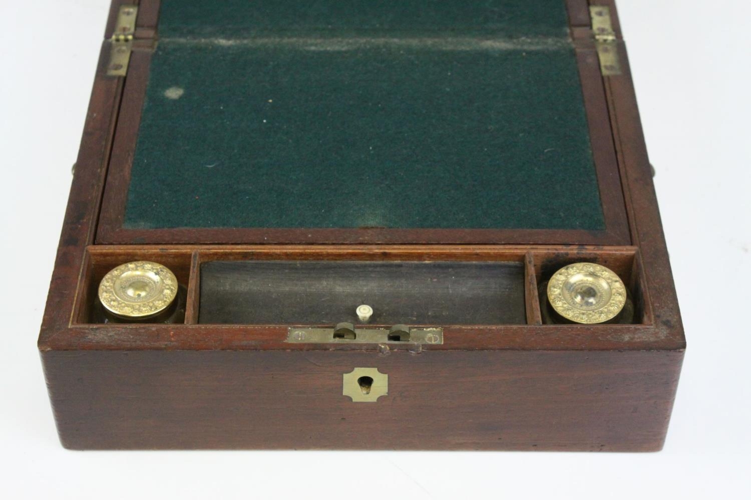 19th century Mahogany Writing Slope Box fitted with two glass inkwells, 27cms wide