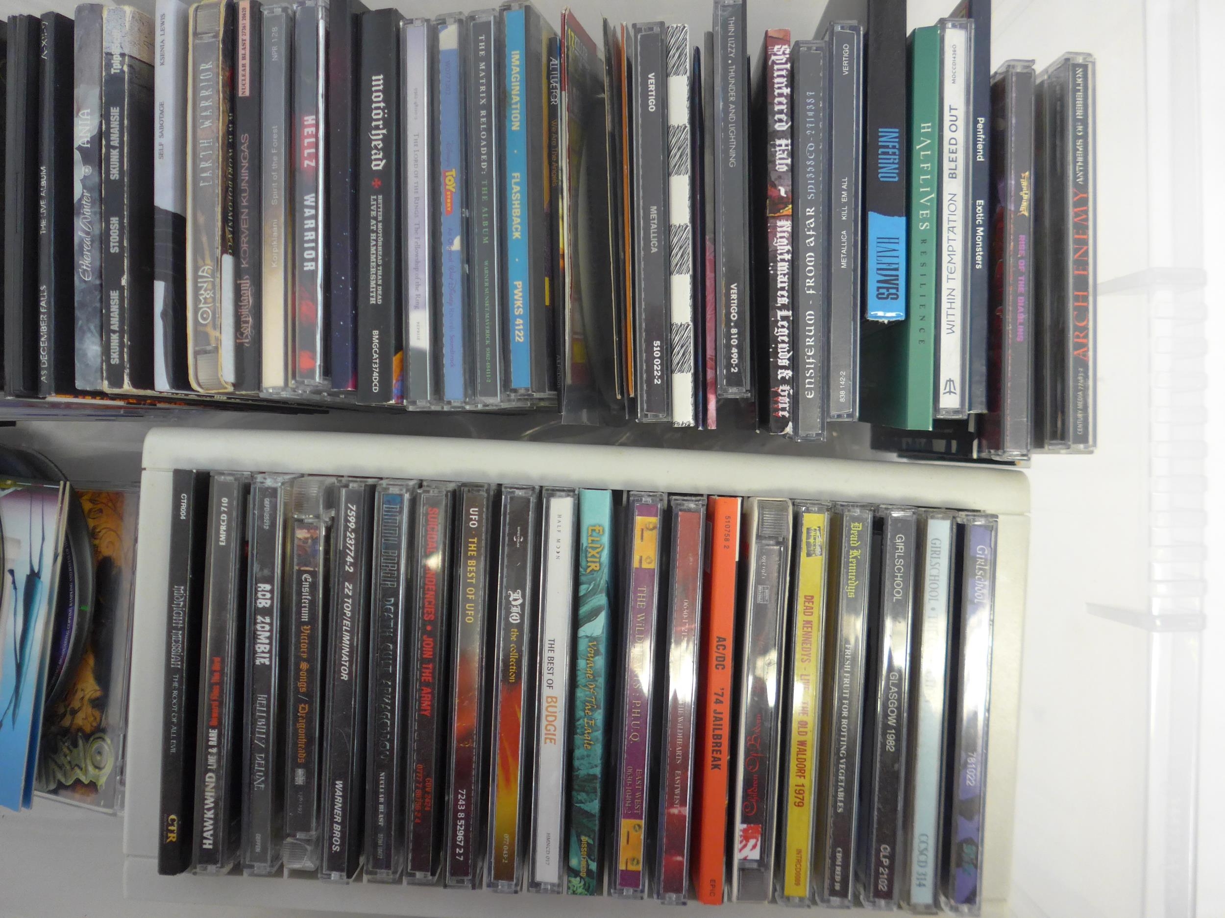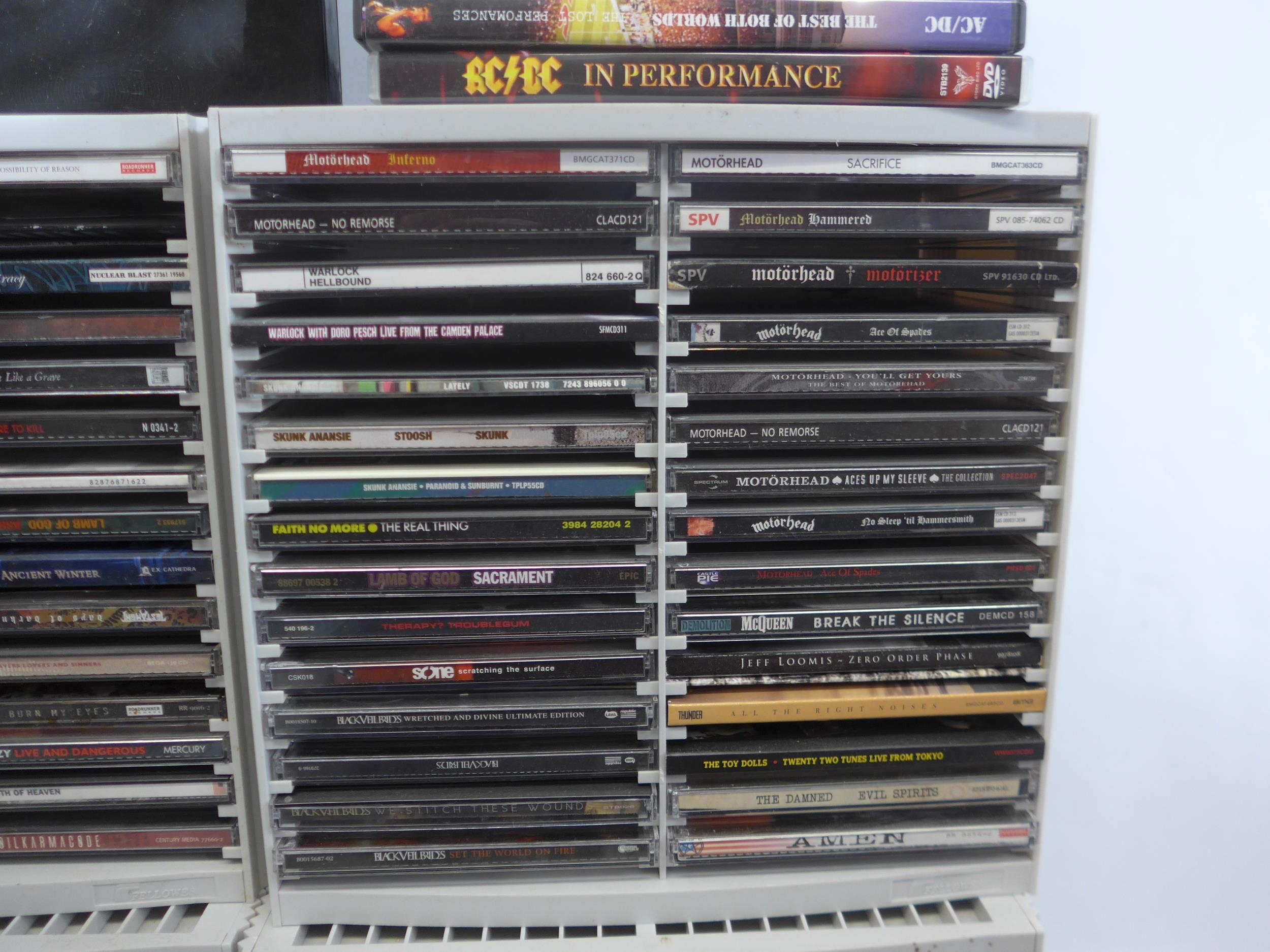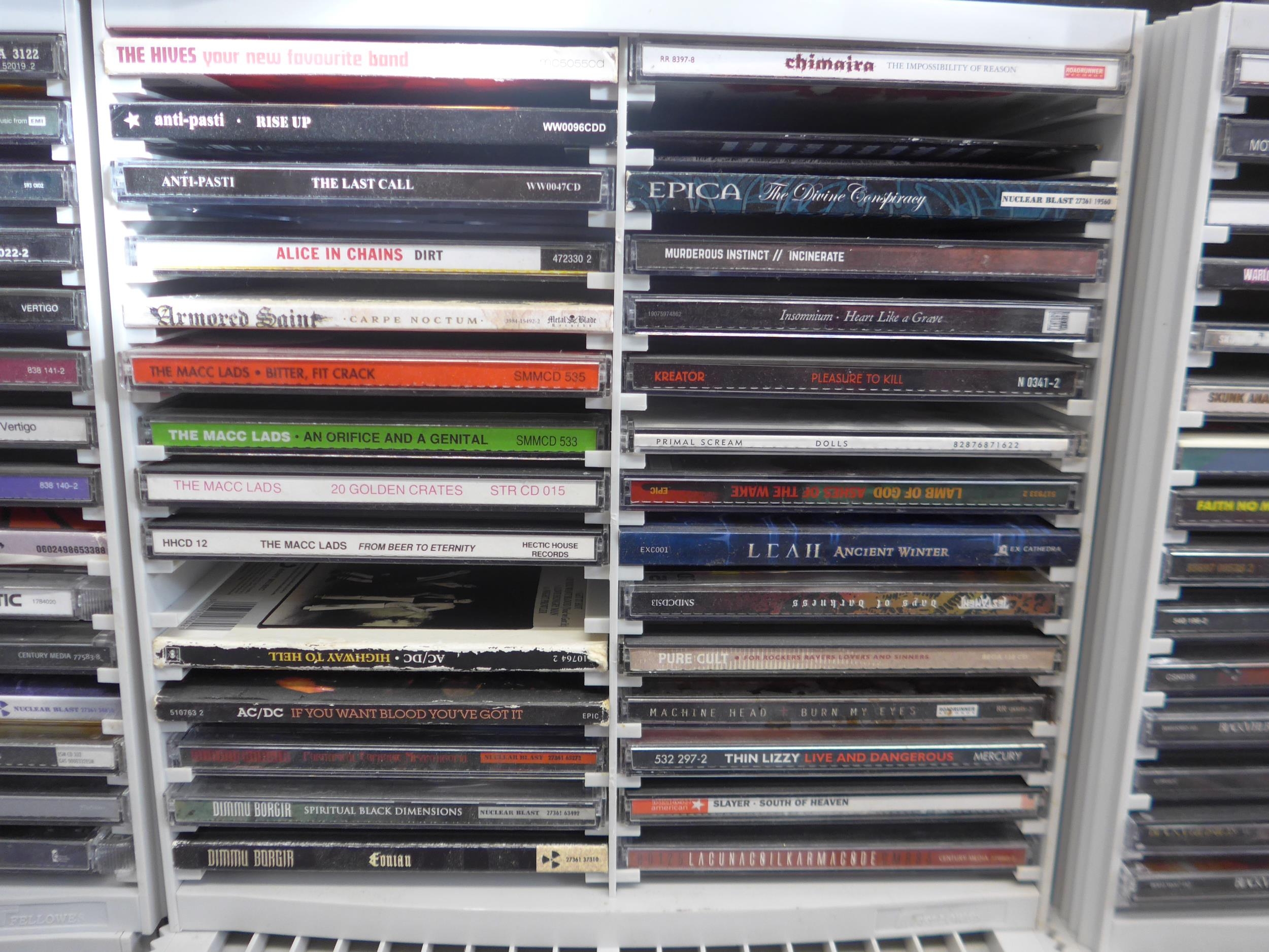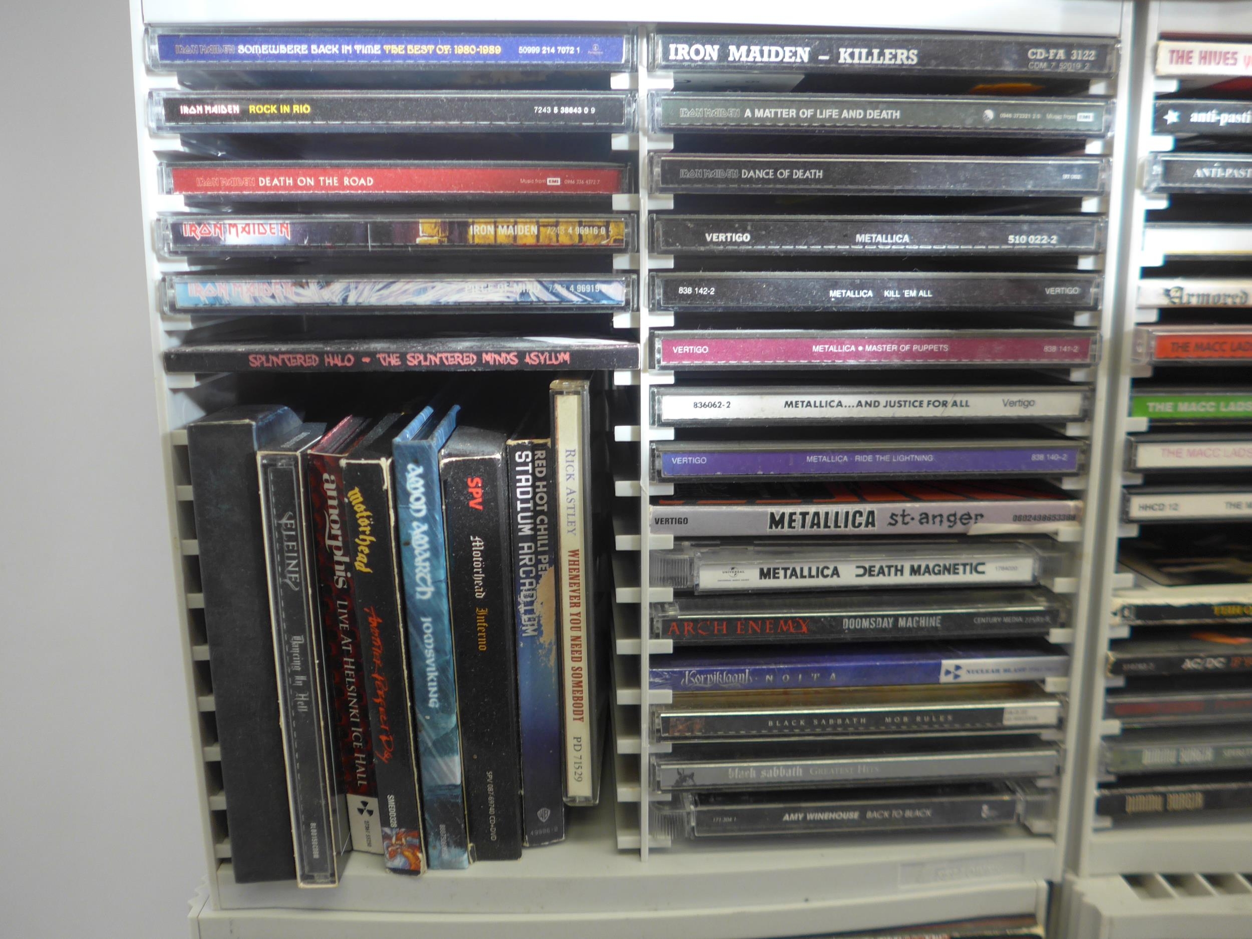 Heavy Metal / Hard Rock / Punk - CD collection - two hundred and sixty CDs, artists include Motorhead, Anthrax, Judas Priest, Megadeth, The Almighty, Sepultura, Sex Pistols, Black Sabbath, Nightwish, Arch Enemy, Iron Maiden, Amon Amarth, Metallica, Anti-Pasti, Dimmu Borgir, The Macc Lads, AC/DC, Testament, Thin Lizzy, Slayer, Warlock, Amen, The Damned, Papa Roach, Amorphis, Slipknot, Discharge, Def Leppord, Alestorm, System Of A Down, Suicidal Tendencies, Dead Kennedys, etc (approx. 260, contents unchecked). With a smaller number of loose CDs and a few DVDs