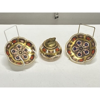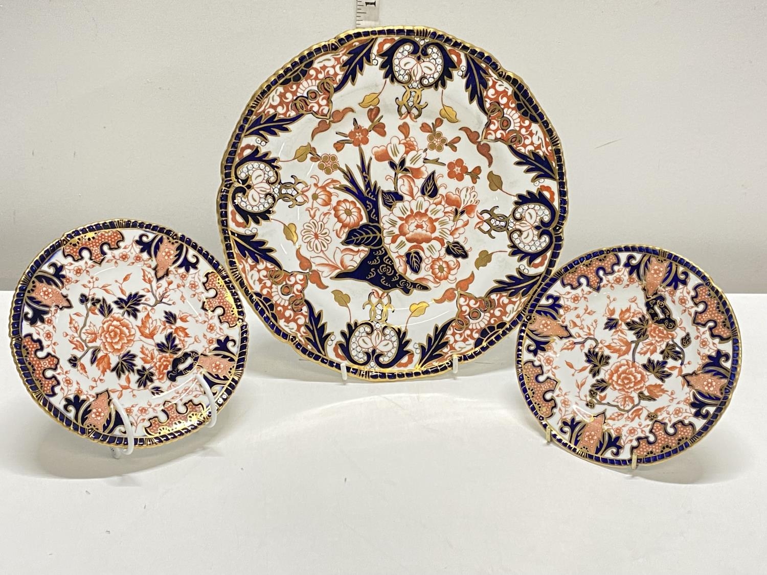 Two Royal Crown Derby side plates and one dinner plate 'Kings' pattern (largest d26cm)