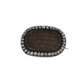 An early 19th century split pearl and gold mourning brooch, ovoid form with central glazed window of platted hair, 2.2cm long