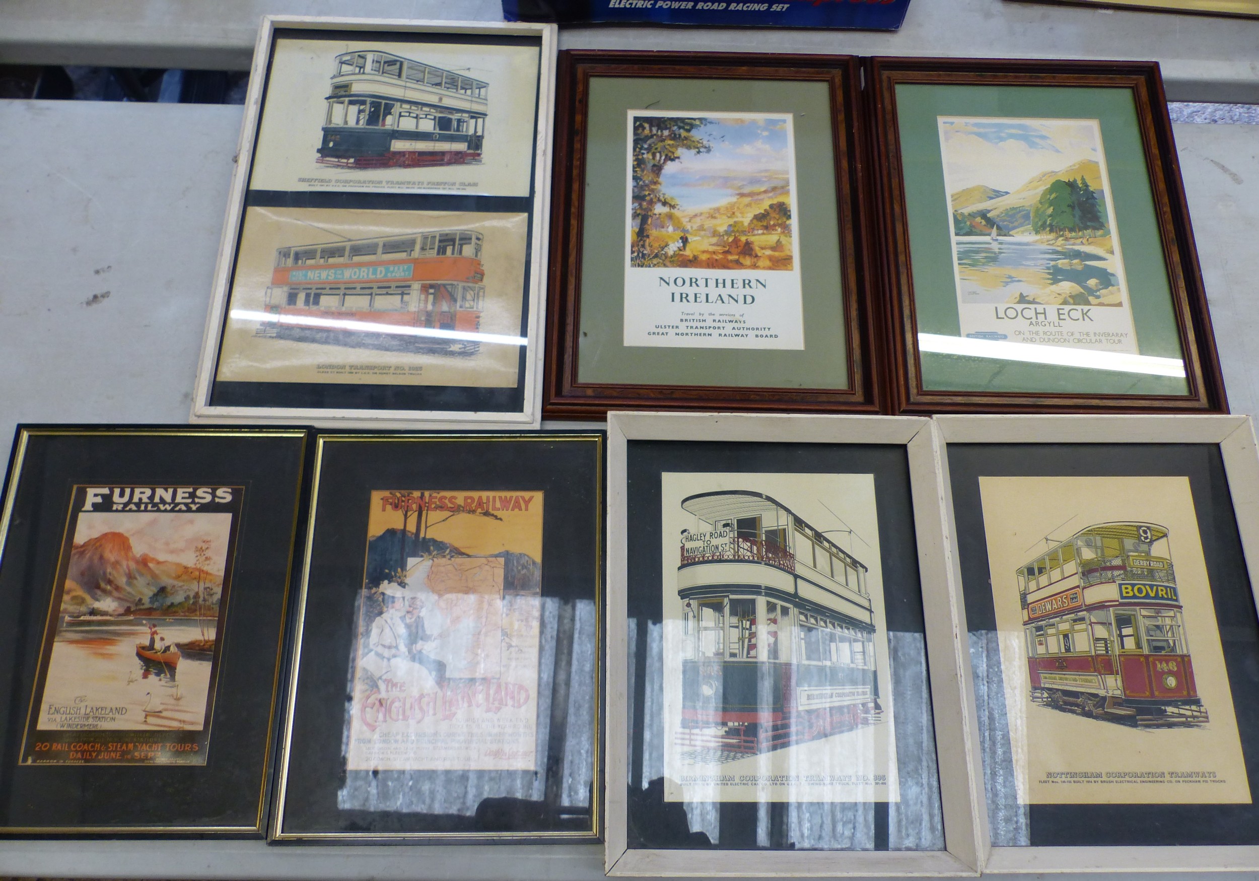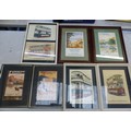 Transportation interest: 7 framed prints relating to trains/railways and trams, size of largest 47cm x 32cm (7).
