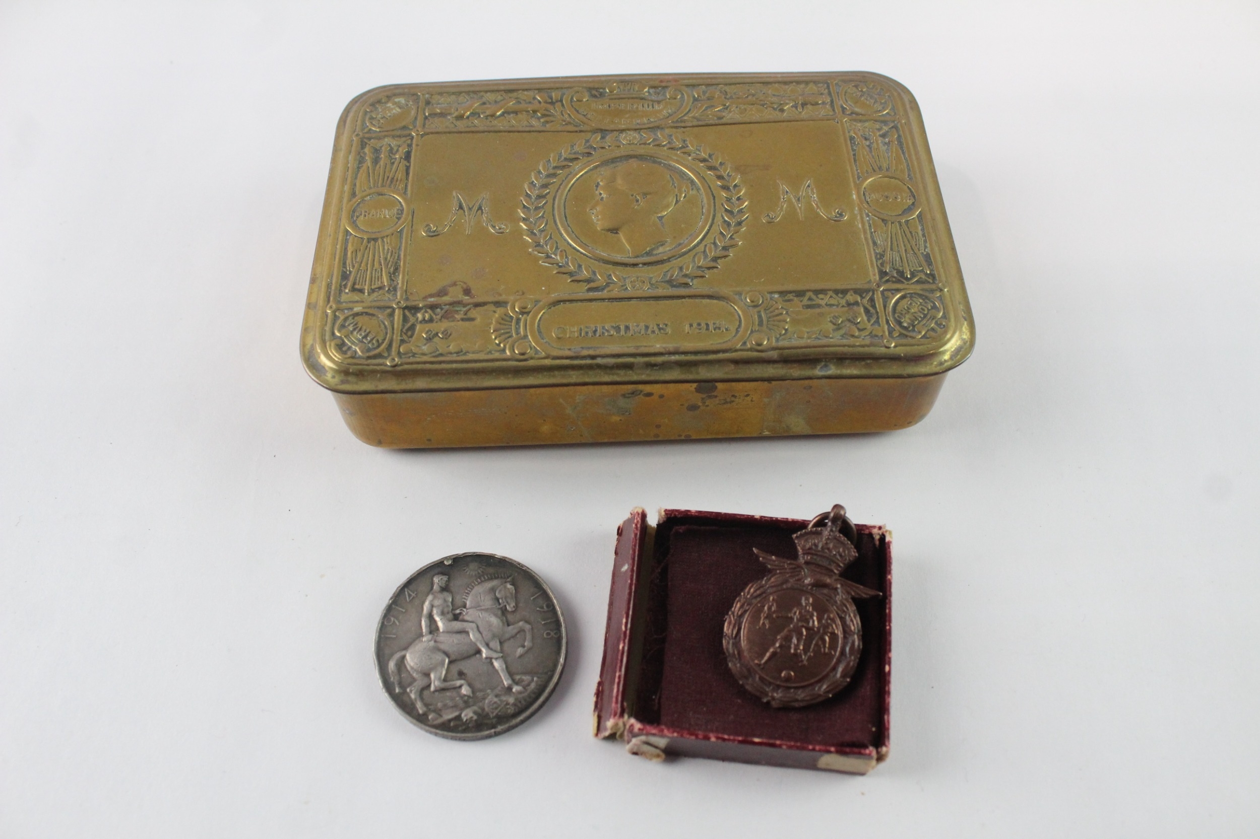 WW1 1914 Christmas Princess Mary Tin w/ War Time Sport Medal & War Medal