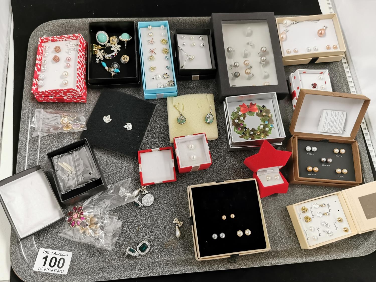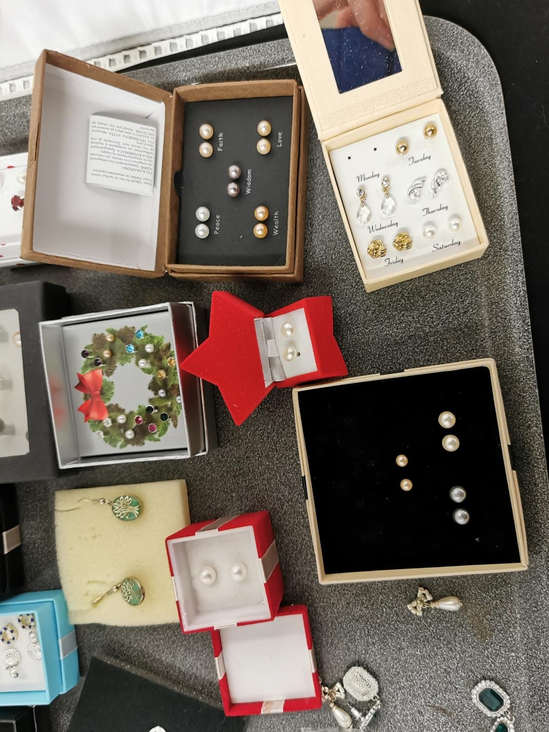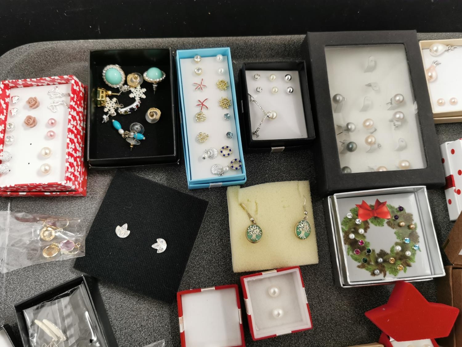 Tray Containing Large Quantity of Various Earrings