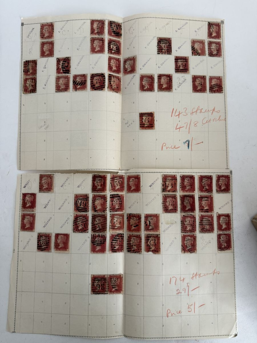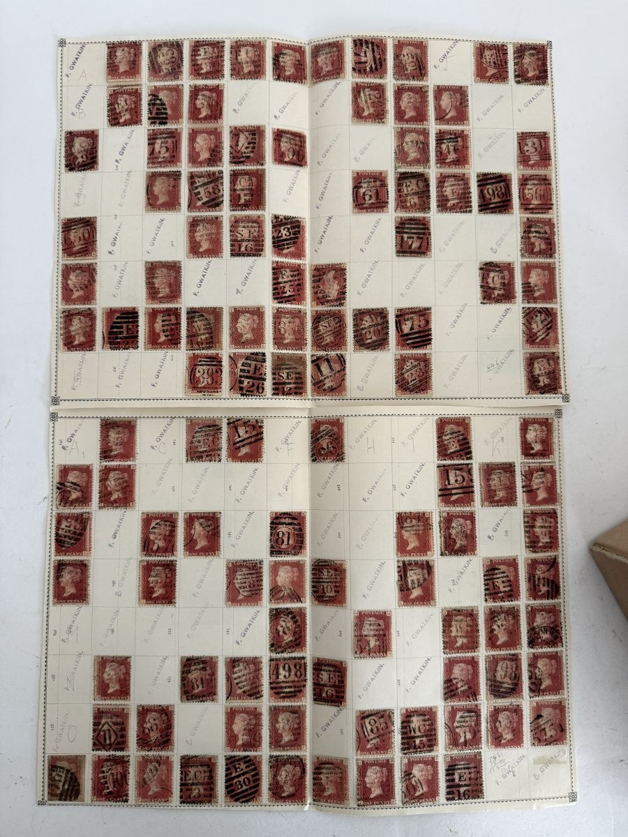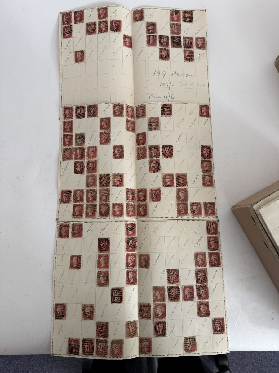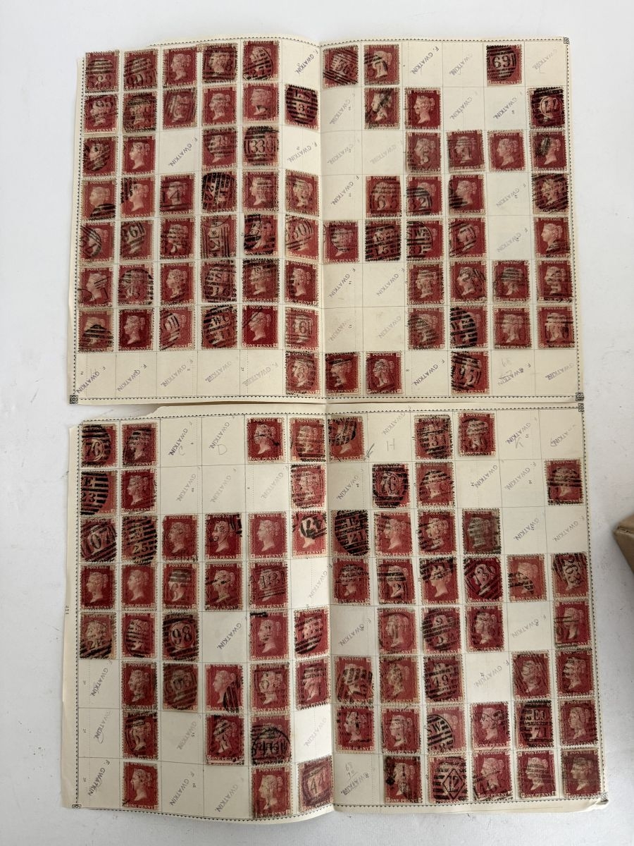 Great Britain. A box of 1d red plate numbers identified and on album pages, circa excess of 11,600 stamps.