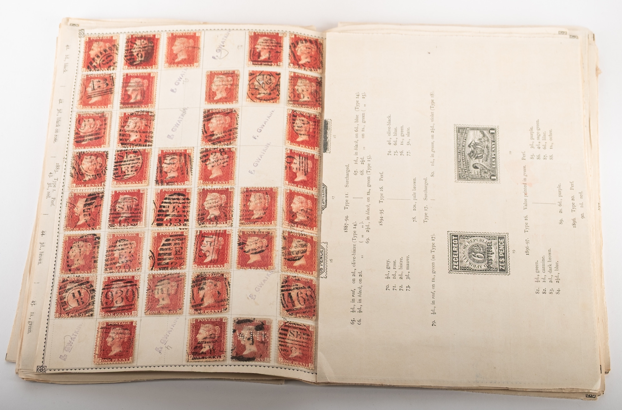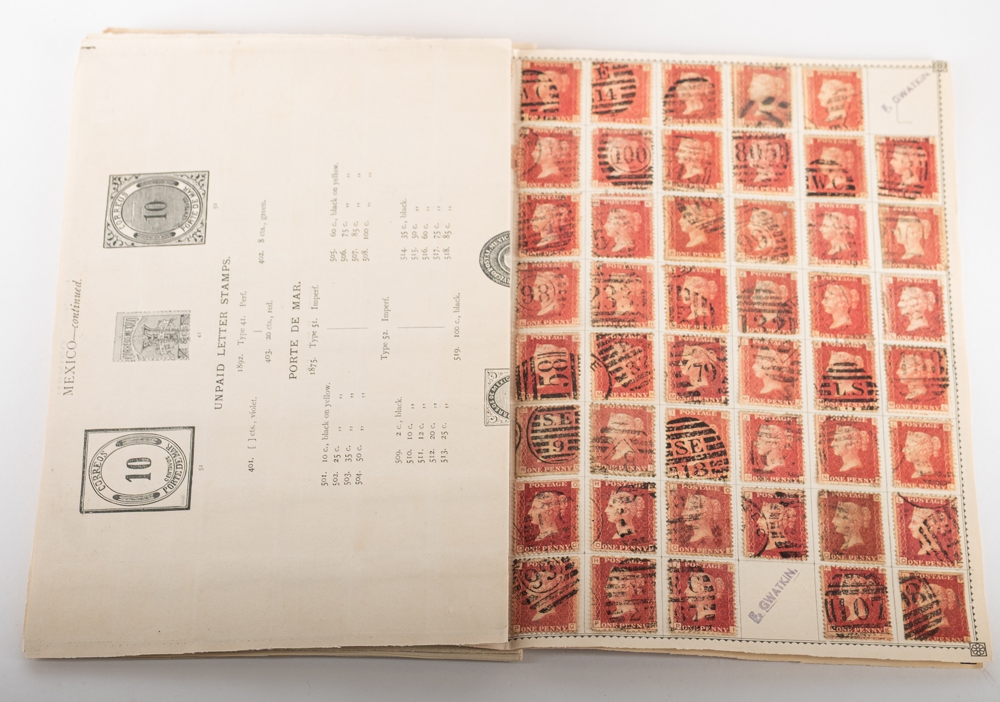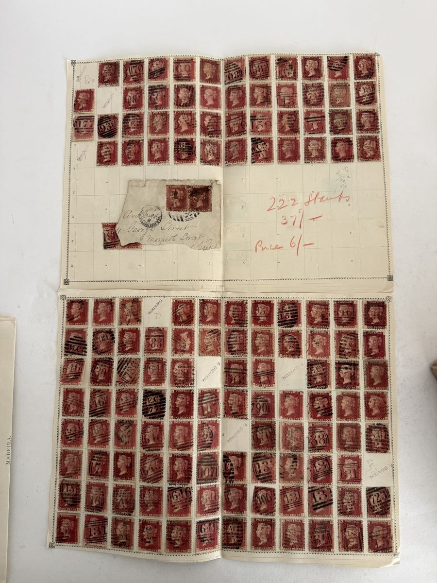 Great Britain. A box of 1d red plate numbers identified and on album pages, circa excess of 11,600 stamps.