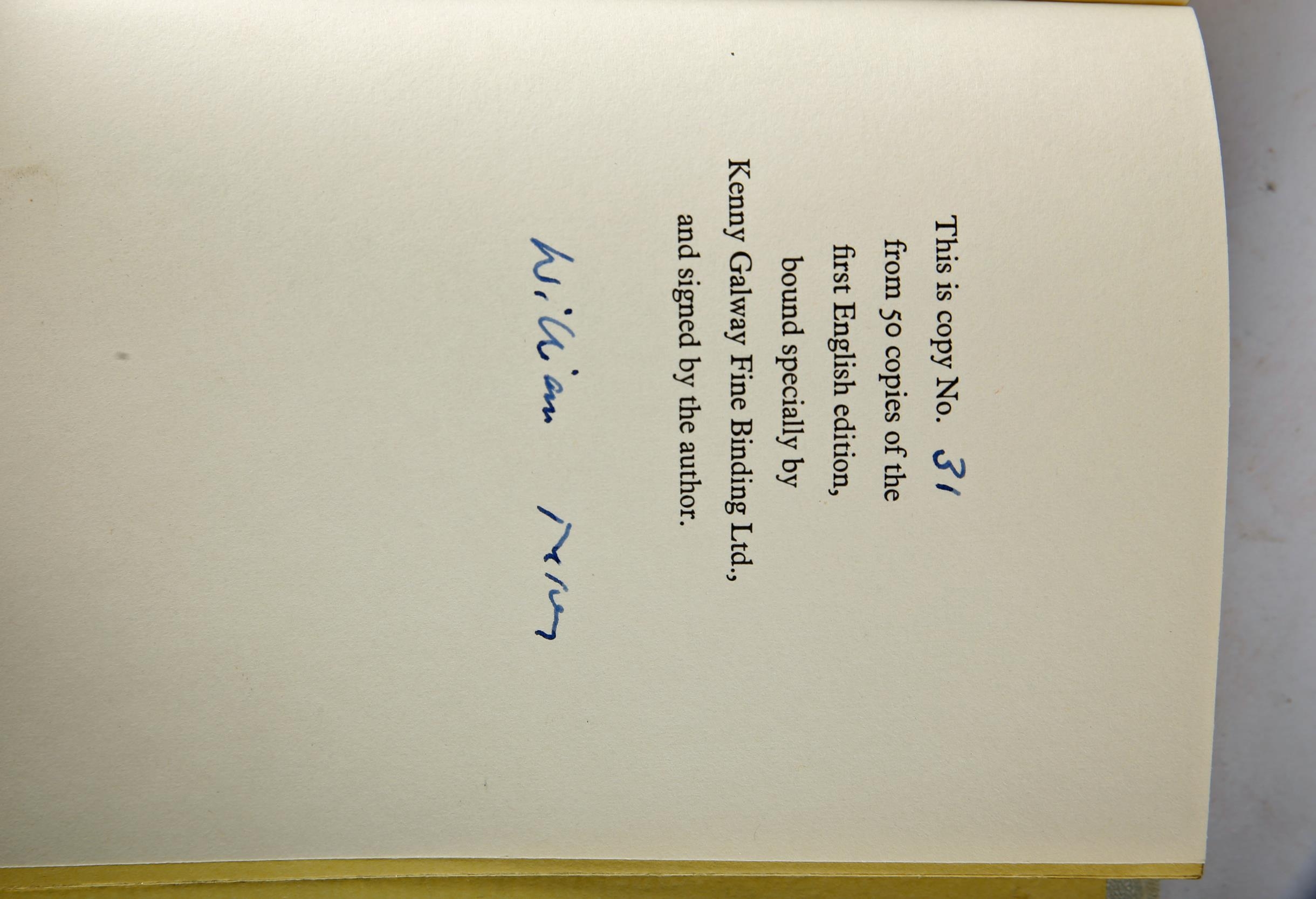 Trevor, William. Fools of Fortune, signed limited edition, Bodley Head, London, 1983, number 31 of a special limited edition of 50 copies specially bound by Kenny's Galway and signed by the author, quarter calf, very fine (VF).