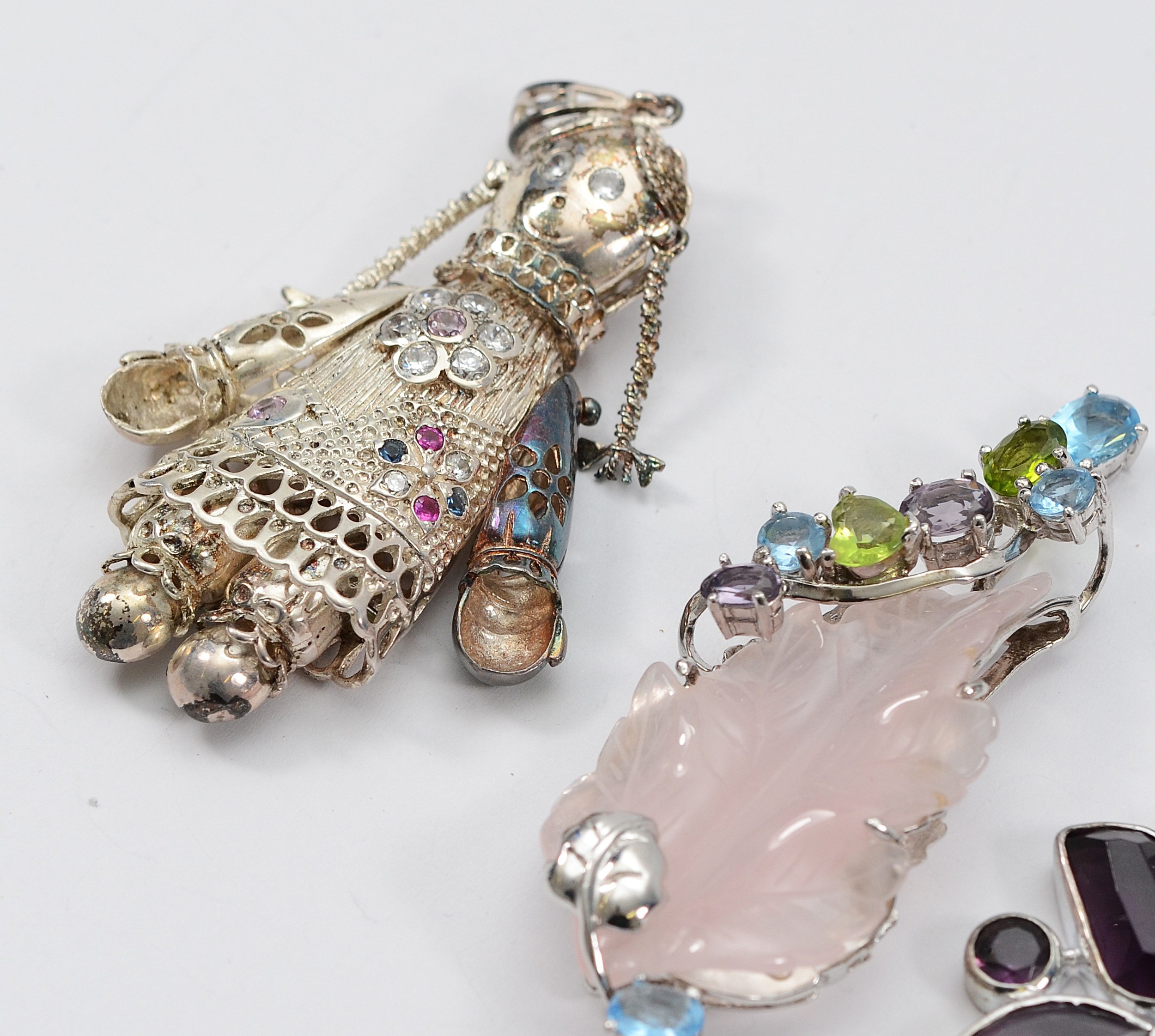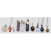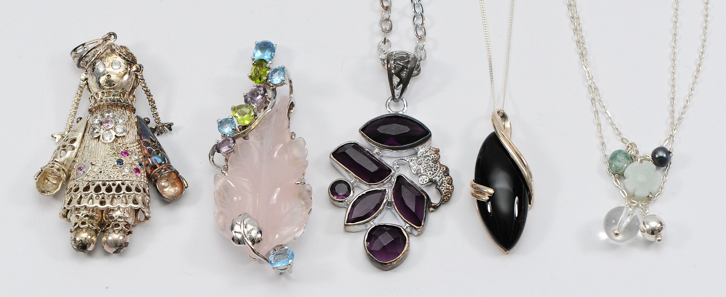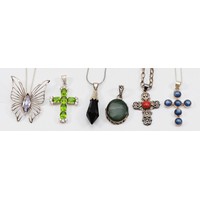 Five 925 silver gemset pendants, 84g