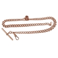 A 9ct gold watch chain, early 20th century, composed of graduated curb linking, to a trigger clasp and T-bar pendant, length 36cm, British hallmarks, gross weight approximately 41 grams