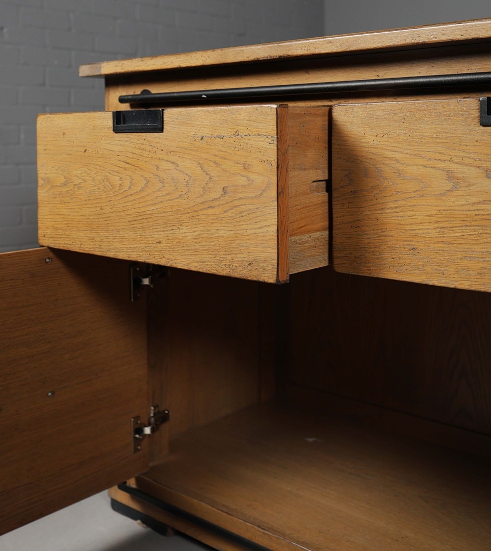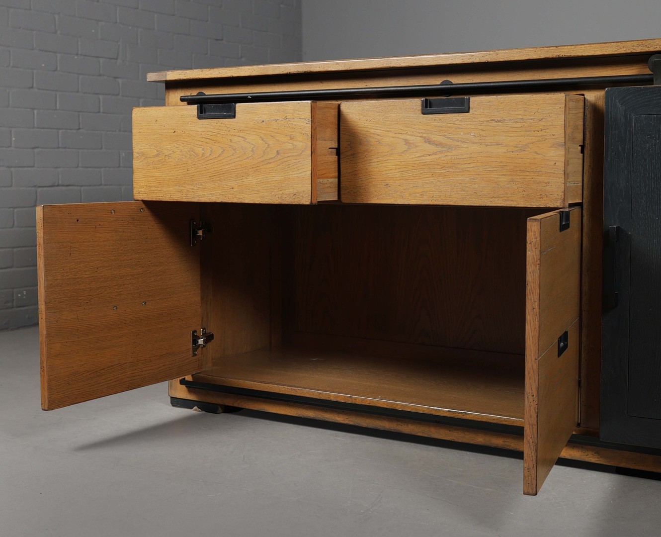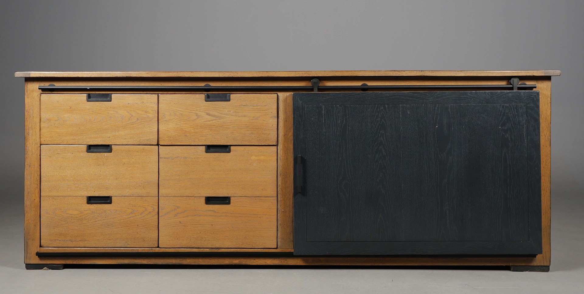 ROCHE BOBOIS MAXIME SIDEBOARD. with six drawers and a sliding black door 88cm t x 233cm w x 54cm d.