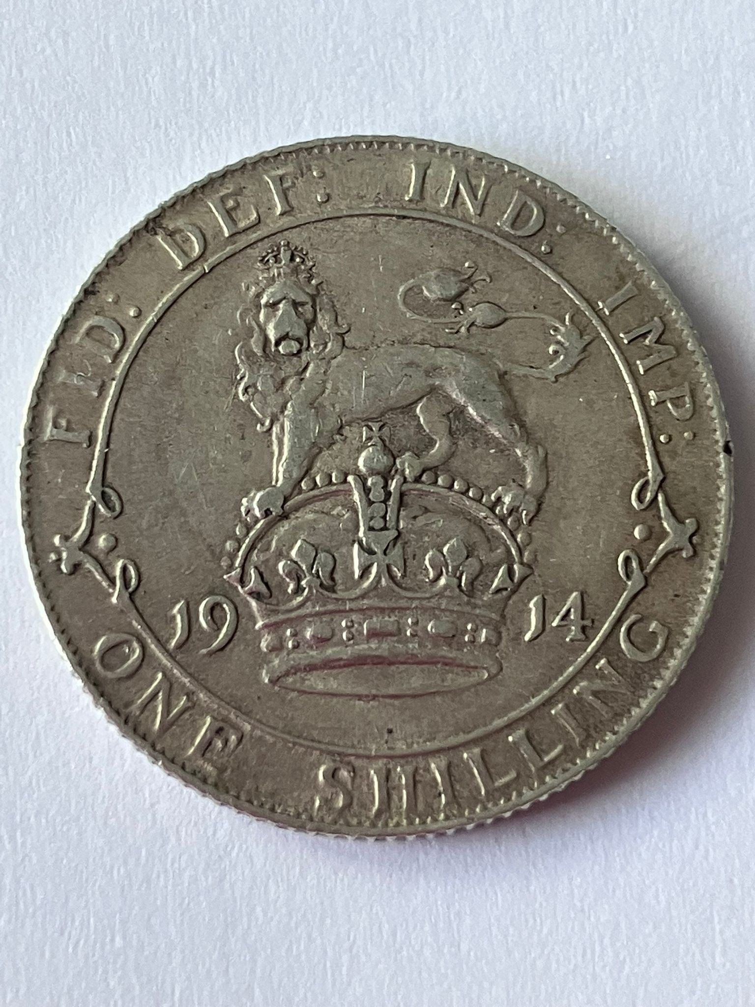 1914 SILVER SHILLING coin. Fine/very fine Condition.