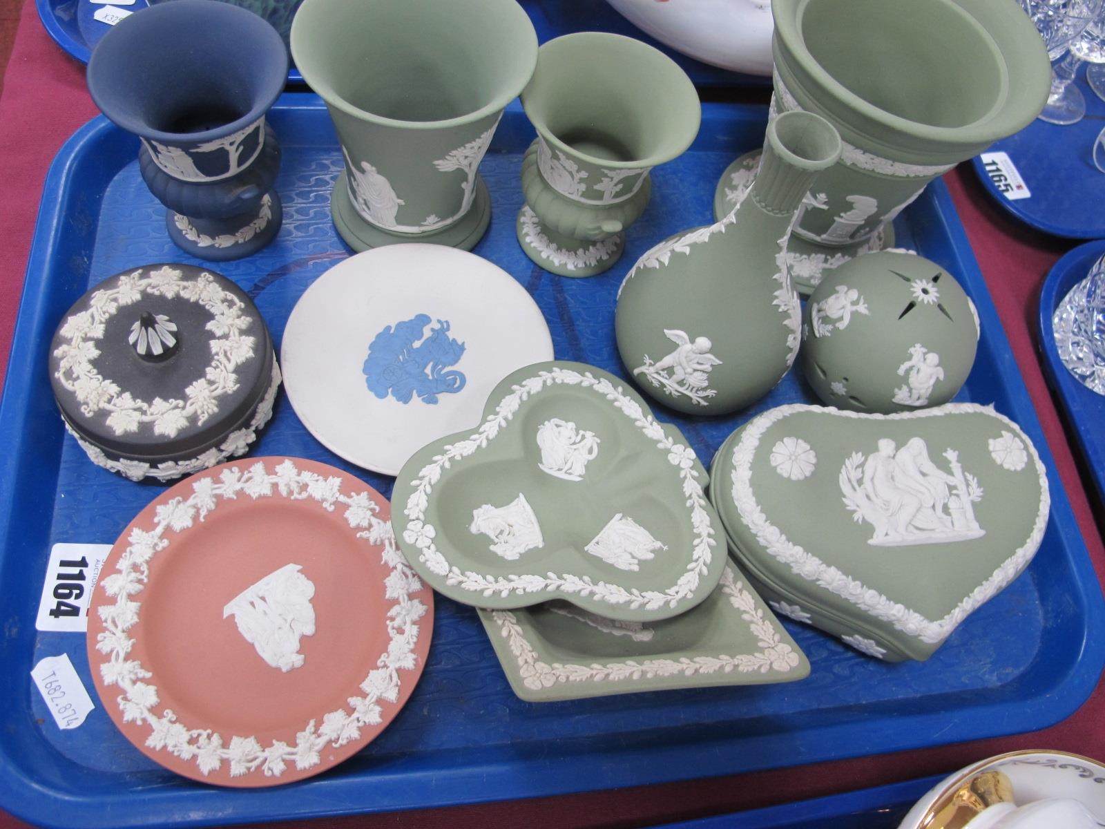 Wedgwood Jasperware Trinkets, in varying colours (12):- One Tray.
