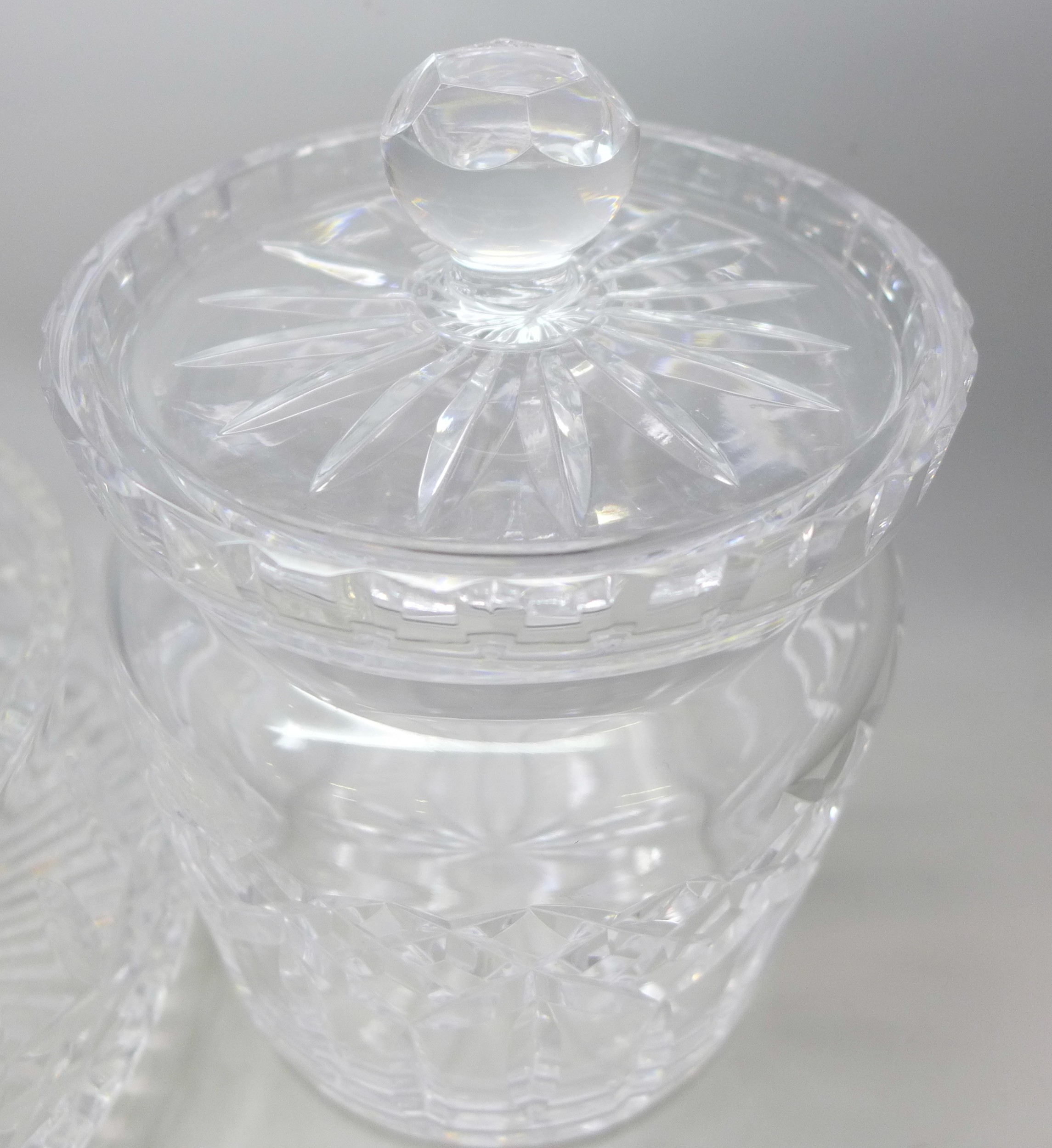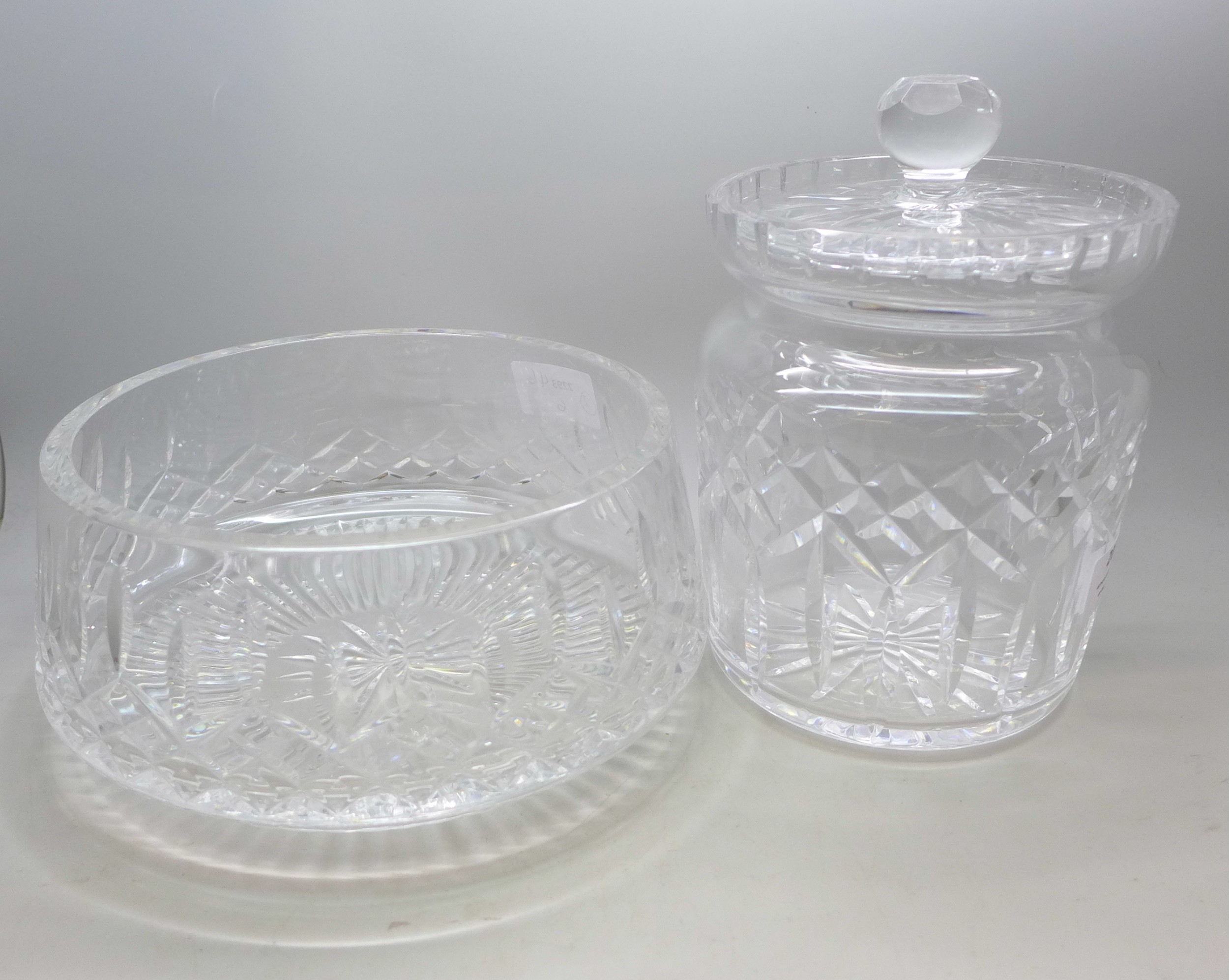 Waterford Crystal, a large fruit bowl and biscuit barrel