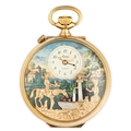 ARNEX REUGE, POCKET WATCH WITH AUTOMATOS AND MUSICAL MUSIC BOX, WITH CASE AND KEY, SWITZERLAND 1985