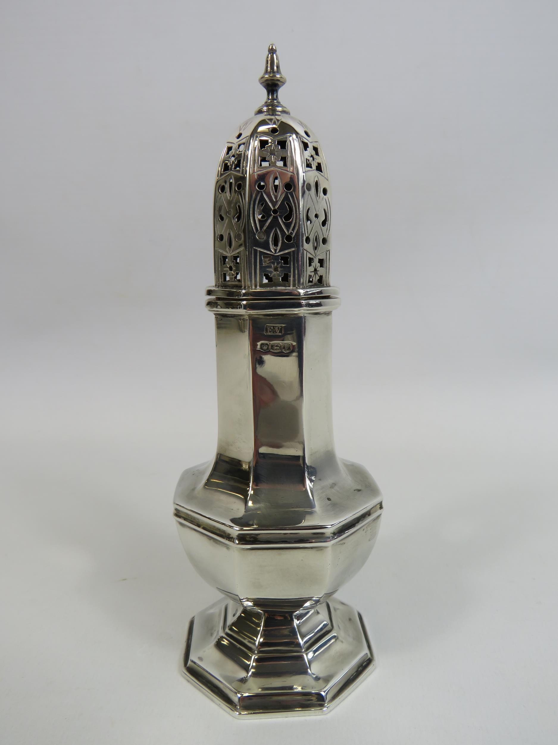 Sheffield sterling silver sugar sifter by Emile Viner 1932, 142.3 grams.