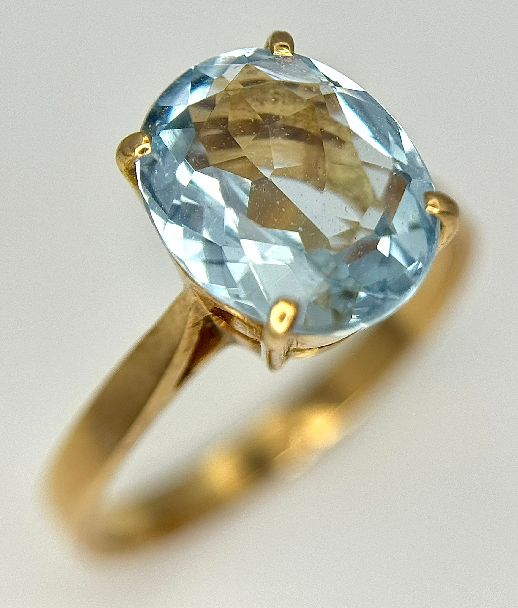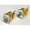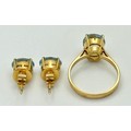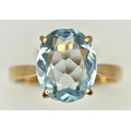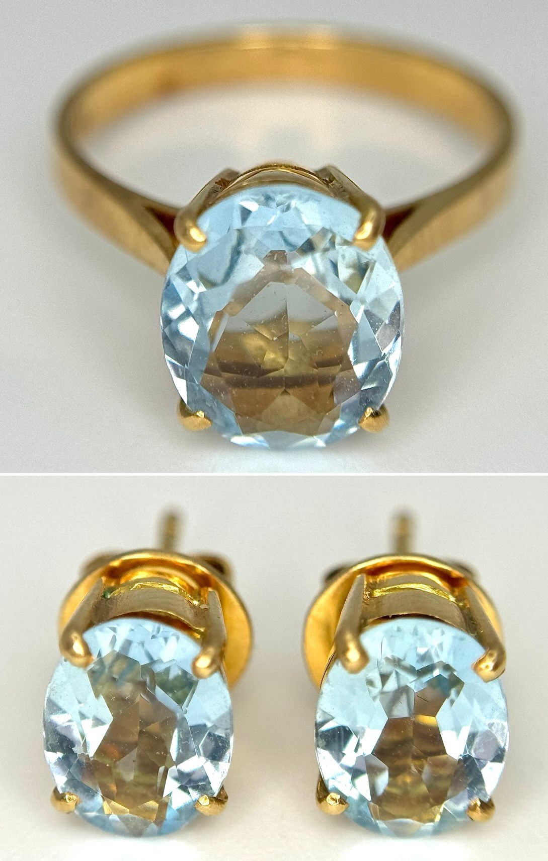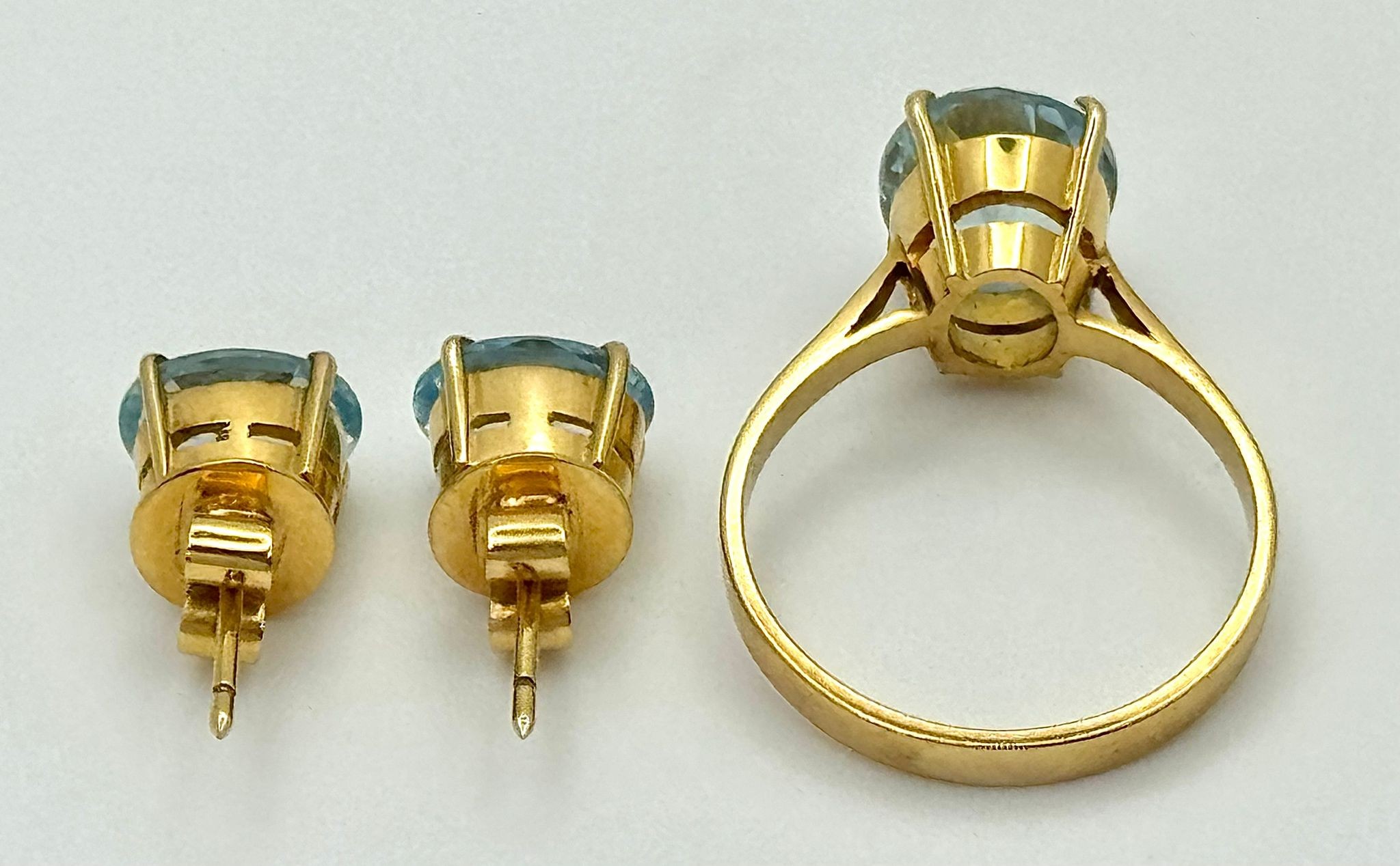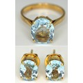 An 18K Yellow Gold, Aquamarine Ring and Earring Set. Ring - 2ct oval cut, size L 1/2. Earrings - 2.5ctw. 5.5g total weight. NG/52005.