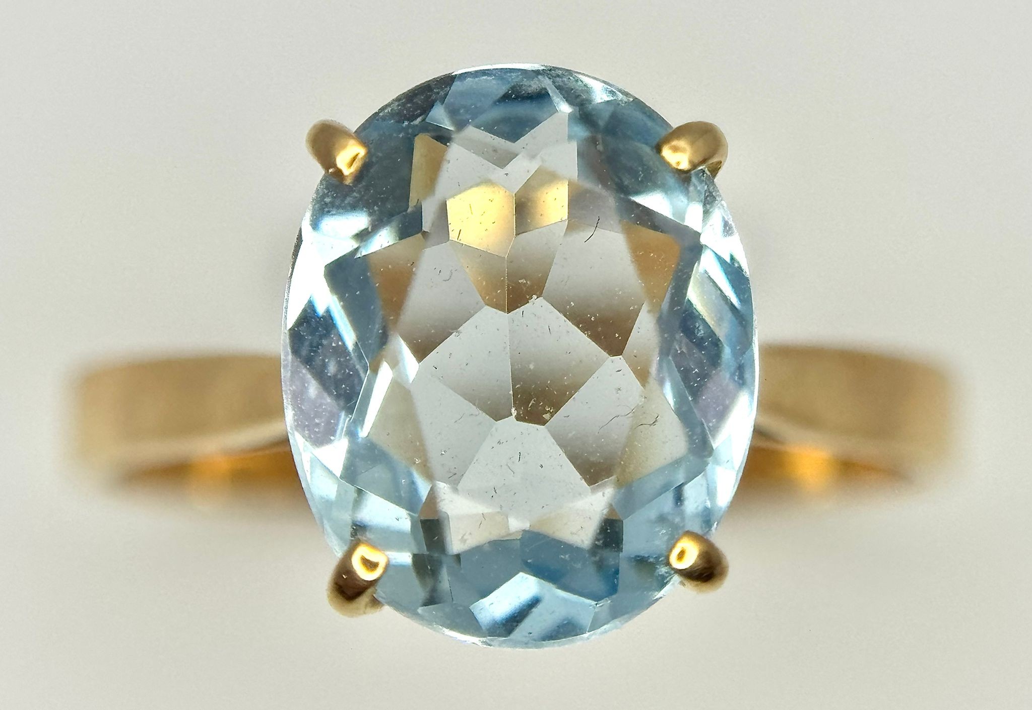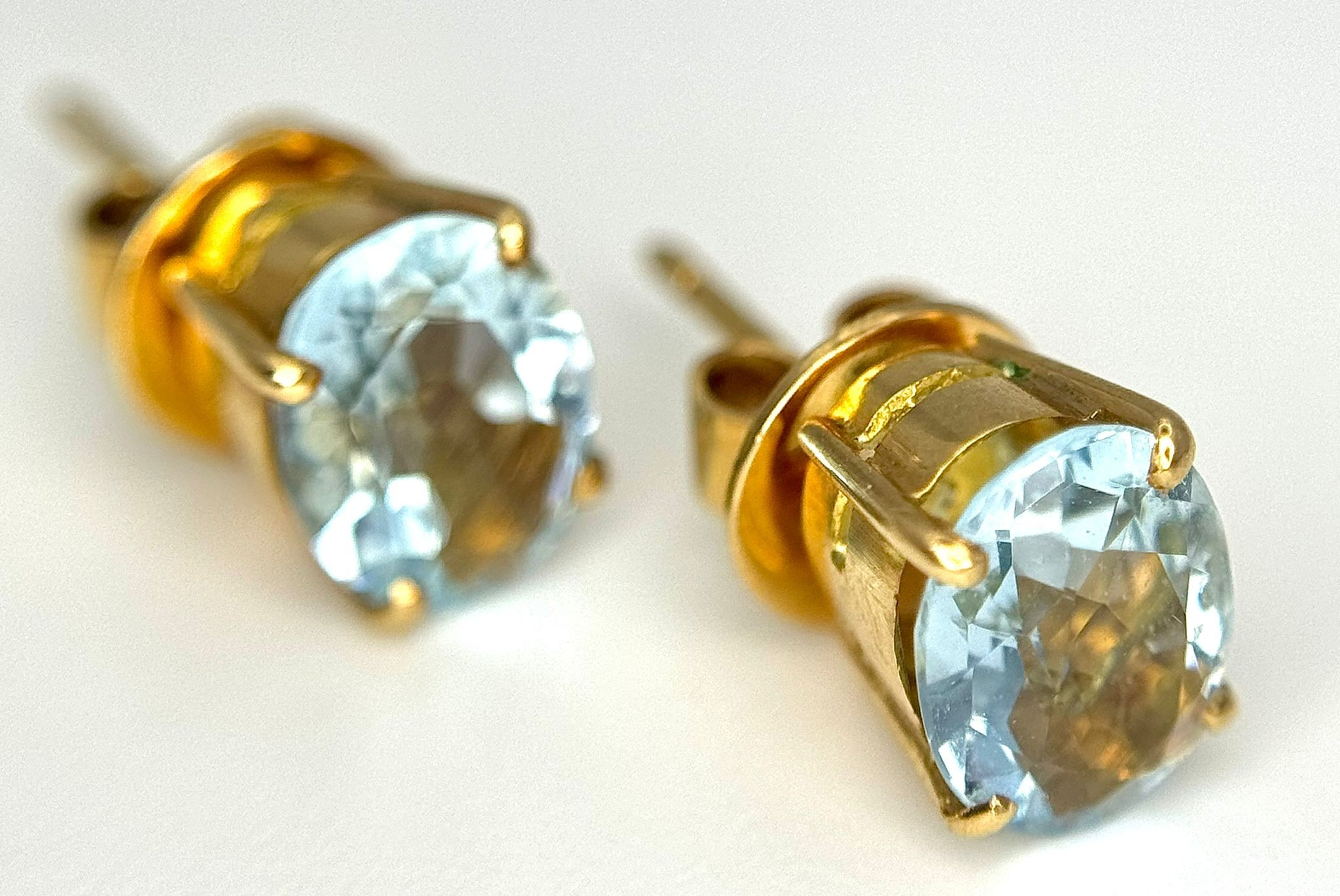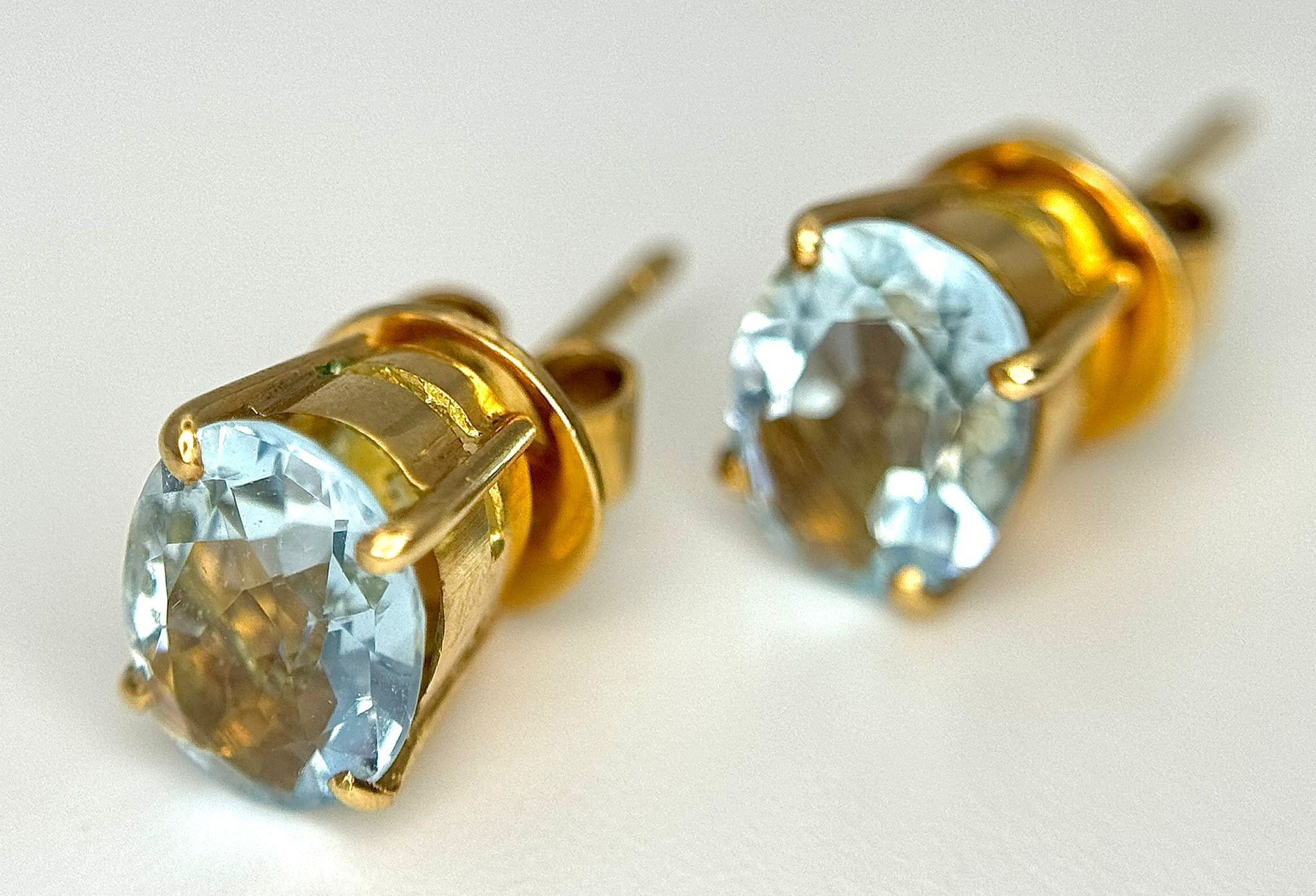 An 18K Yellow Gold, Aquamarine Ring and Earring Set. Ring - 2ct oval cut, size L 1/2. Earrings - 2.5ctw. 5.5g total weight. NG/52005.