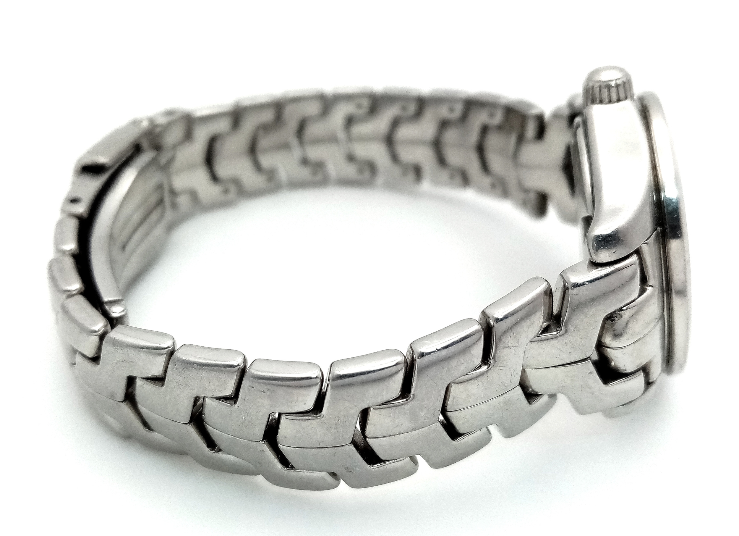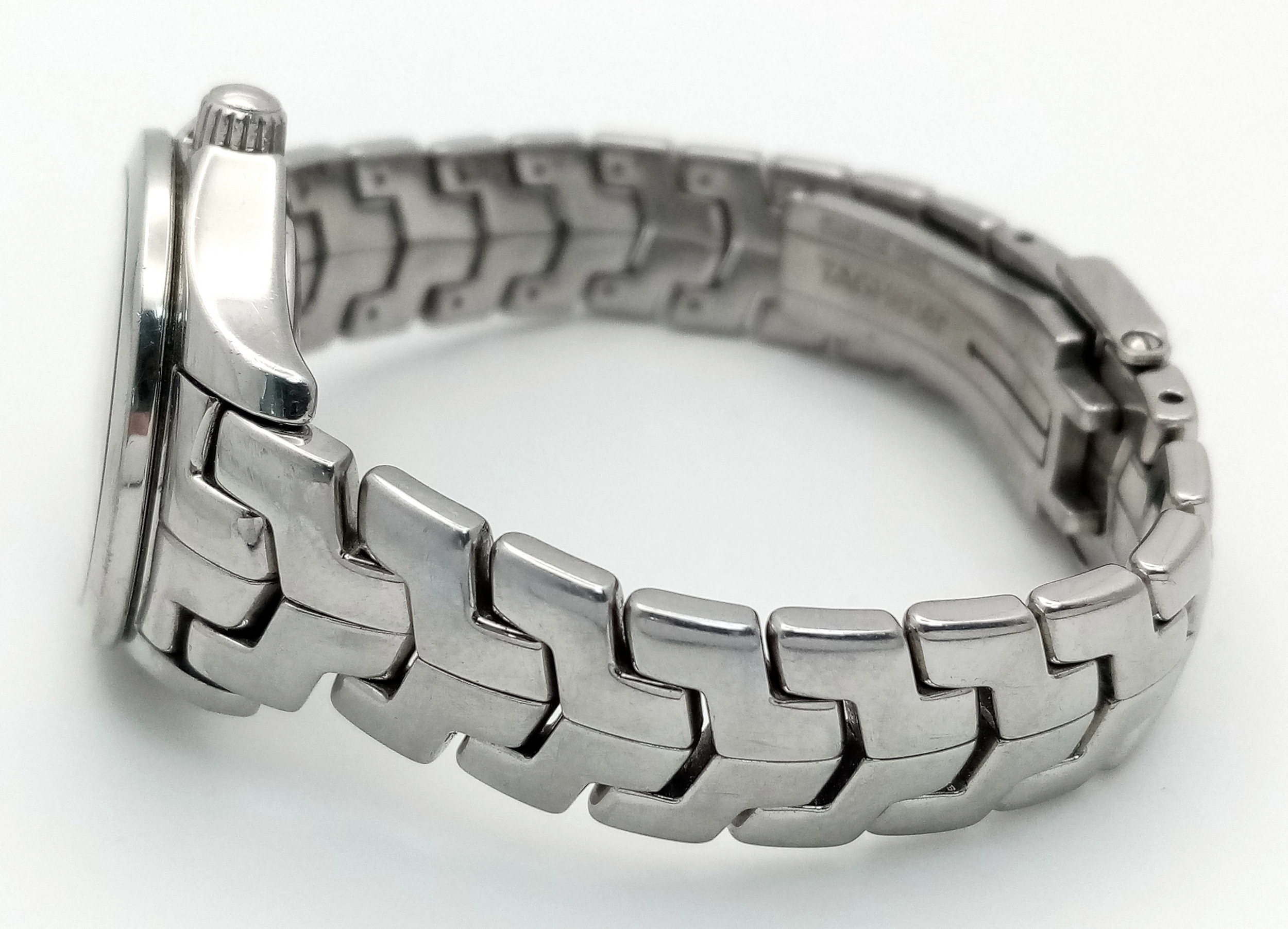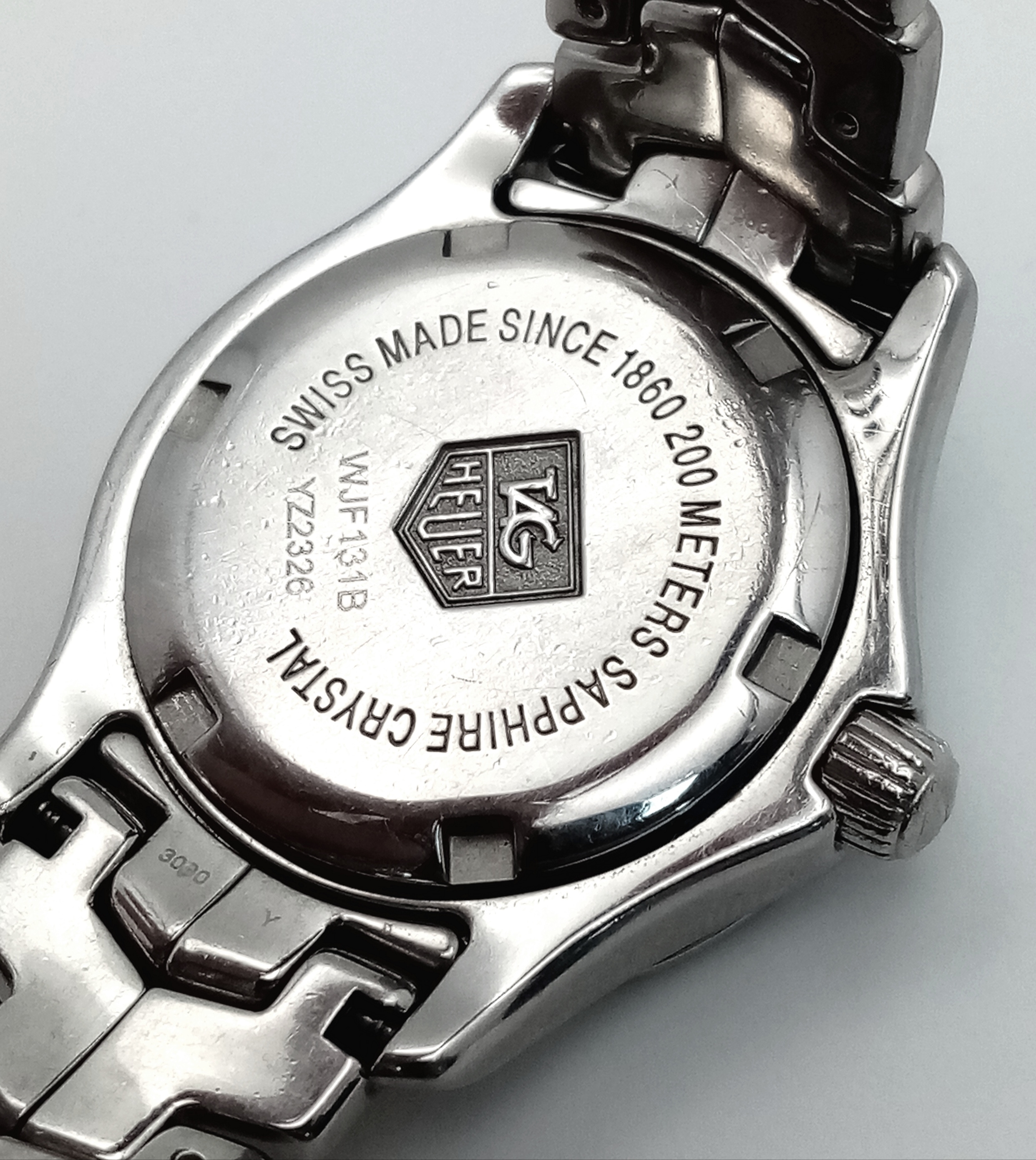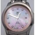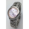 A Tag Heuer Link Mother of Pearl Ladies Quartz Watch. Model - WJFT31B. Stainless steel bracelet and case - 28mm. Pink dial with diamond markers. In working order. Comes with a WCSA report. STK025389